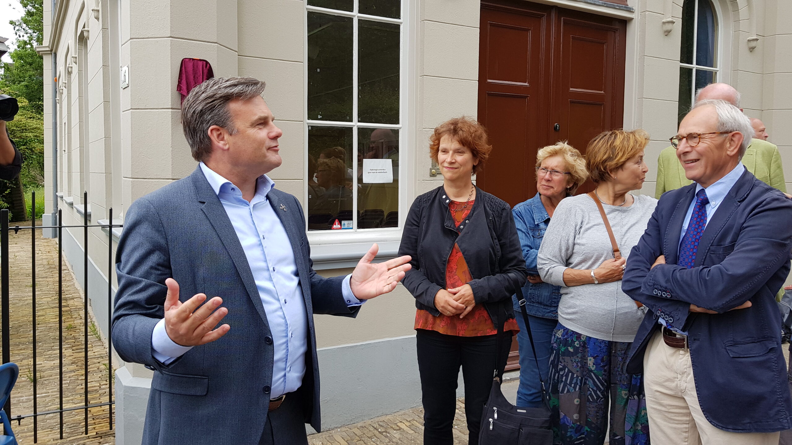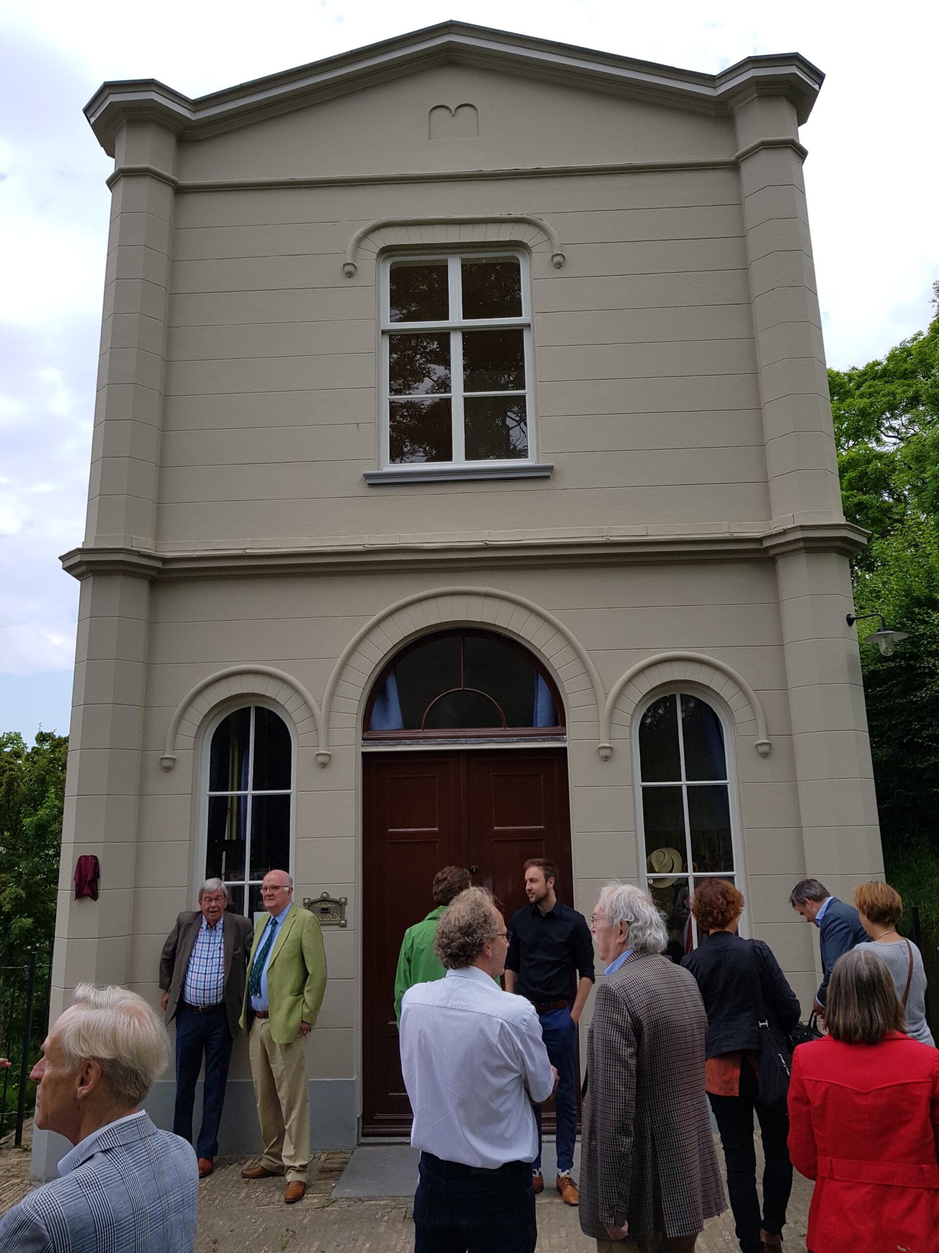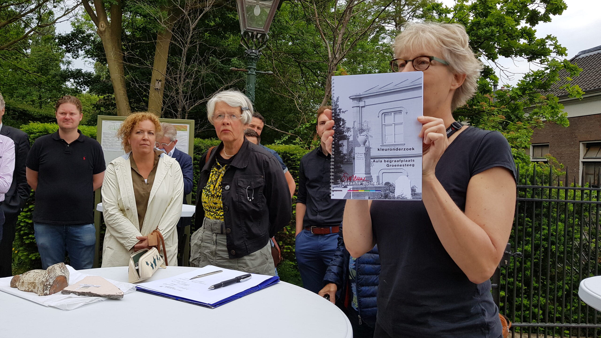 De afgelopen maanden is de aula van de historische begraafplaats Groenesteeg helemaal opgeknapt en voorzien van een verflaag in de oorspronkelijke kleuren. Ook het interieur werd aangepakt. Gisteren was de feestelijke opening. Wethouder Dirkse onthulde het schildje waarop is te zien dat het hier om een rijksmonument gaat. Al veertig jaar. Ook daar werd gisteren kort bij stilgestaan.