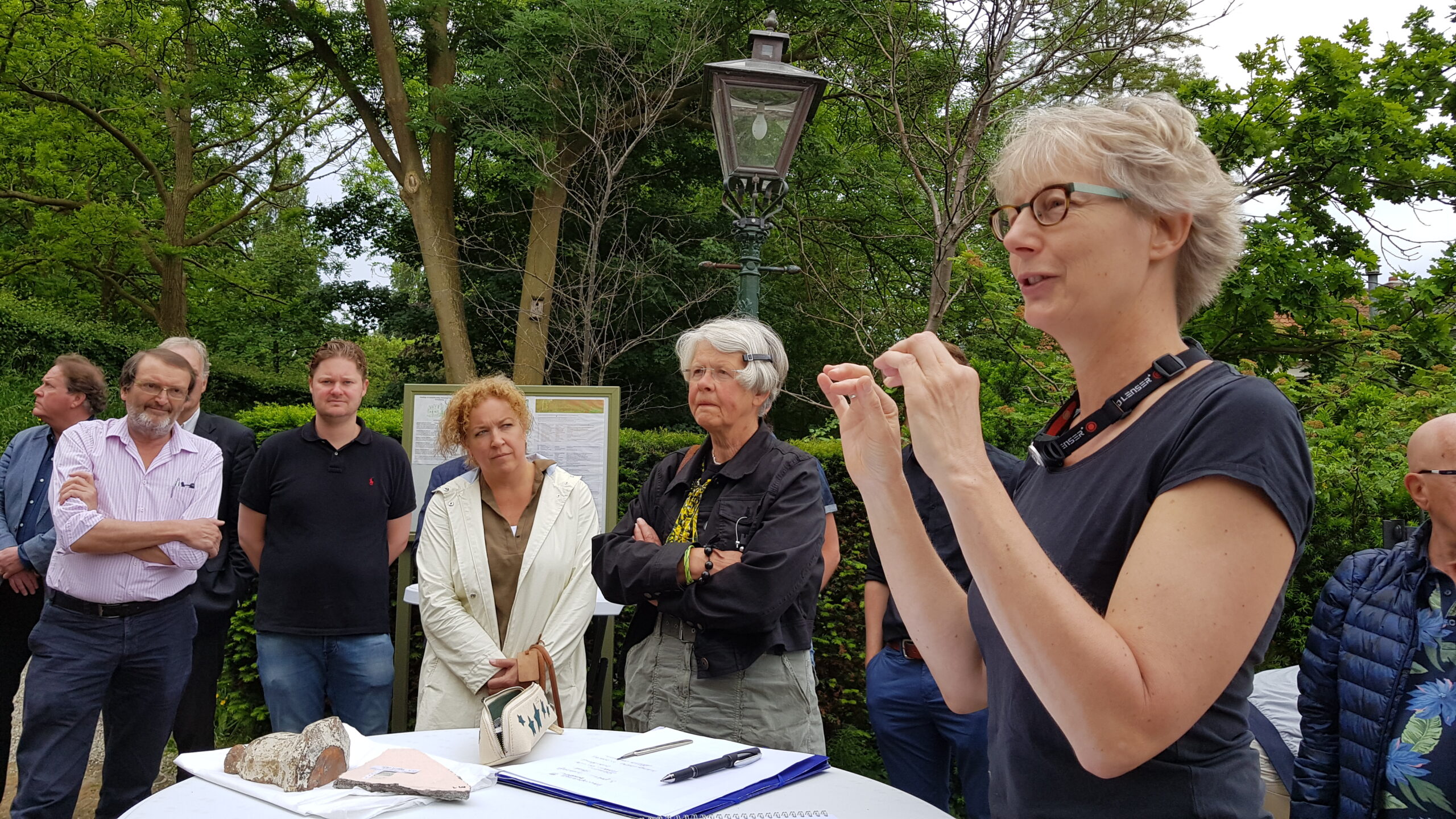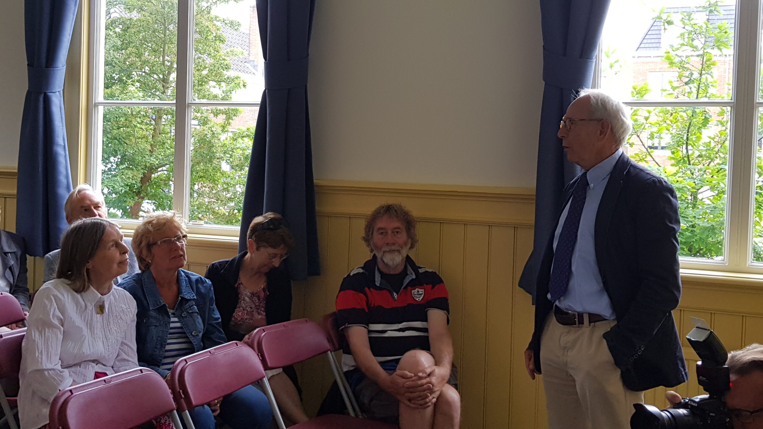 Na de officiële openingshandeling gaf bestuurslid Lodewijk Kallenberg van de Stichting tot instandhouding van de begraafplaats Groenesteeg Leiden een korte voordracht over de aula en haar bewoners. Dat waren met name grafdelvers.