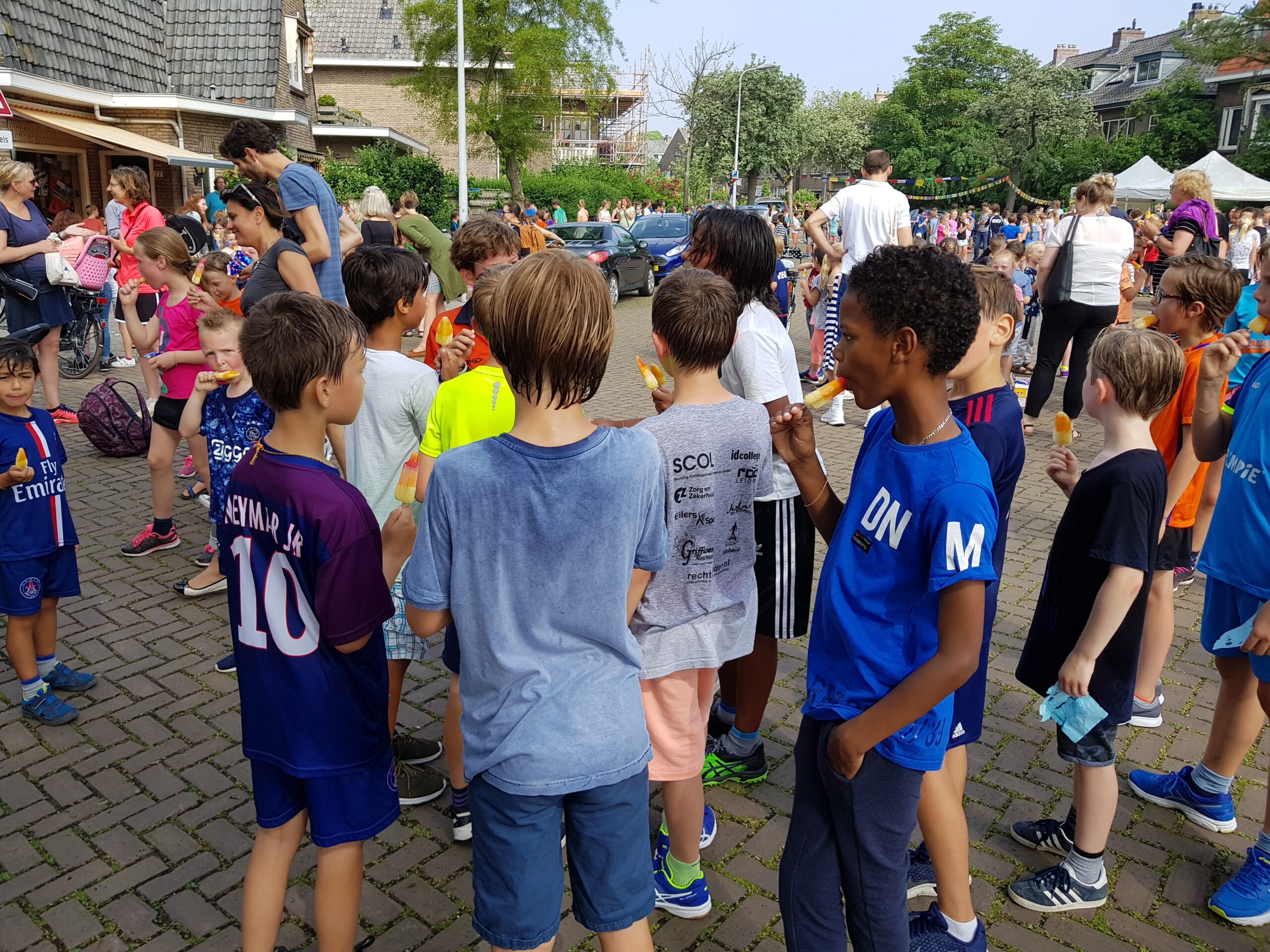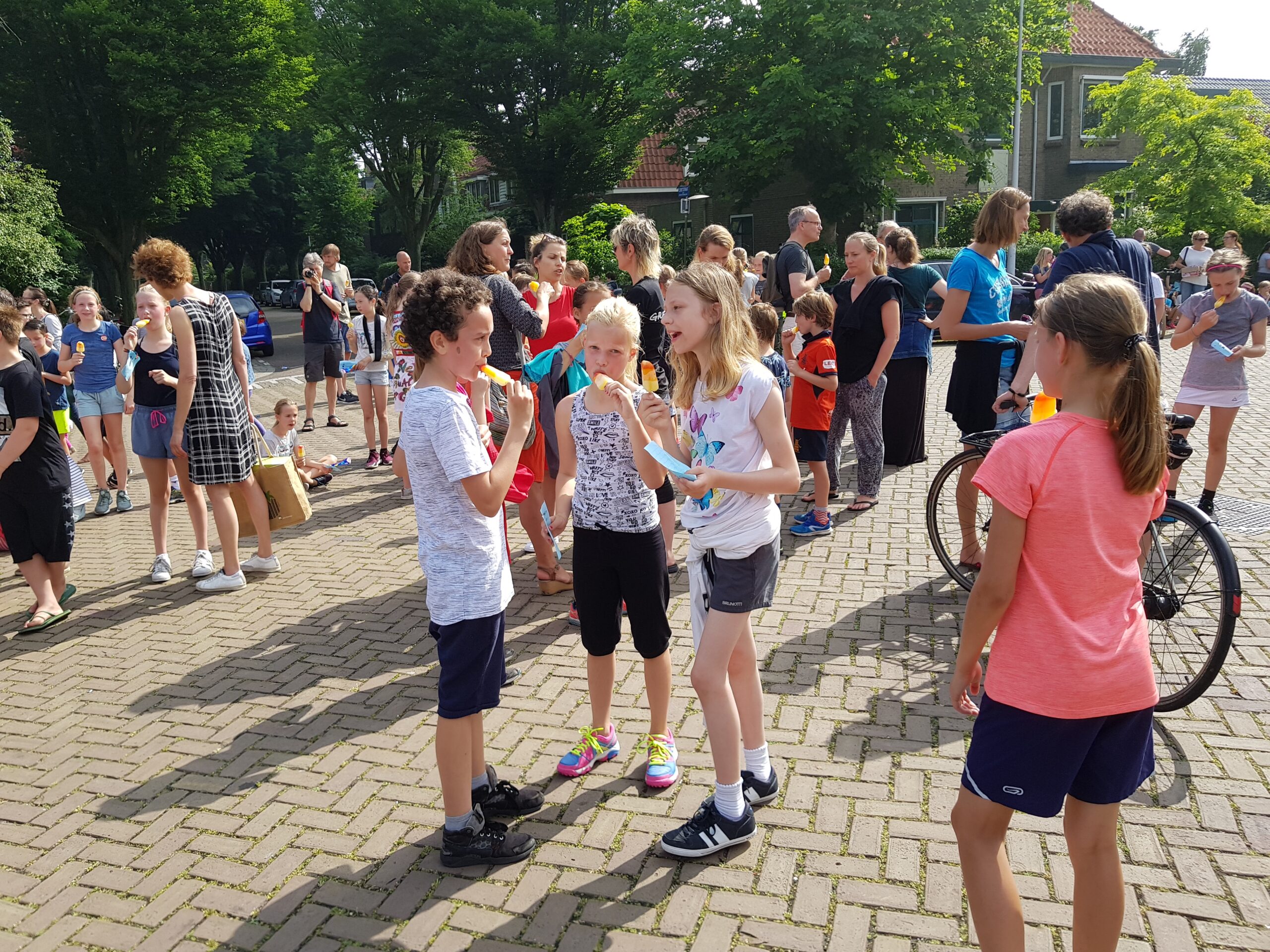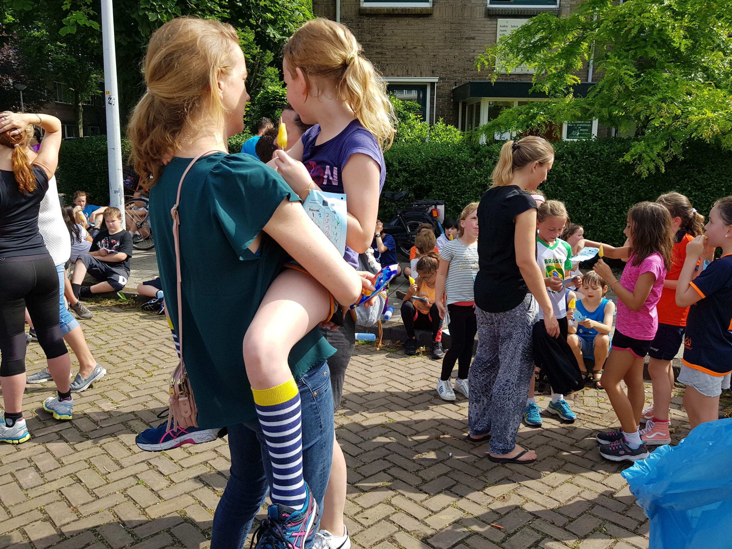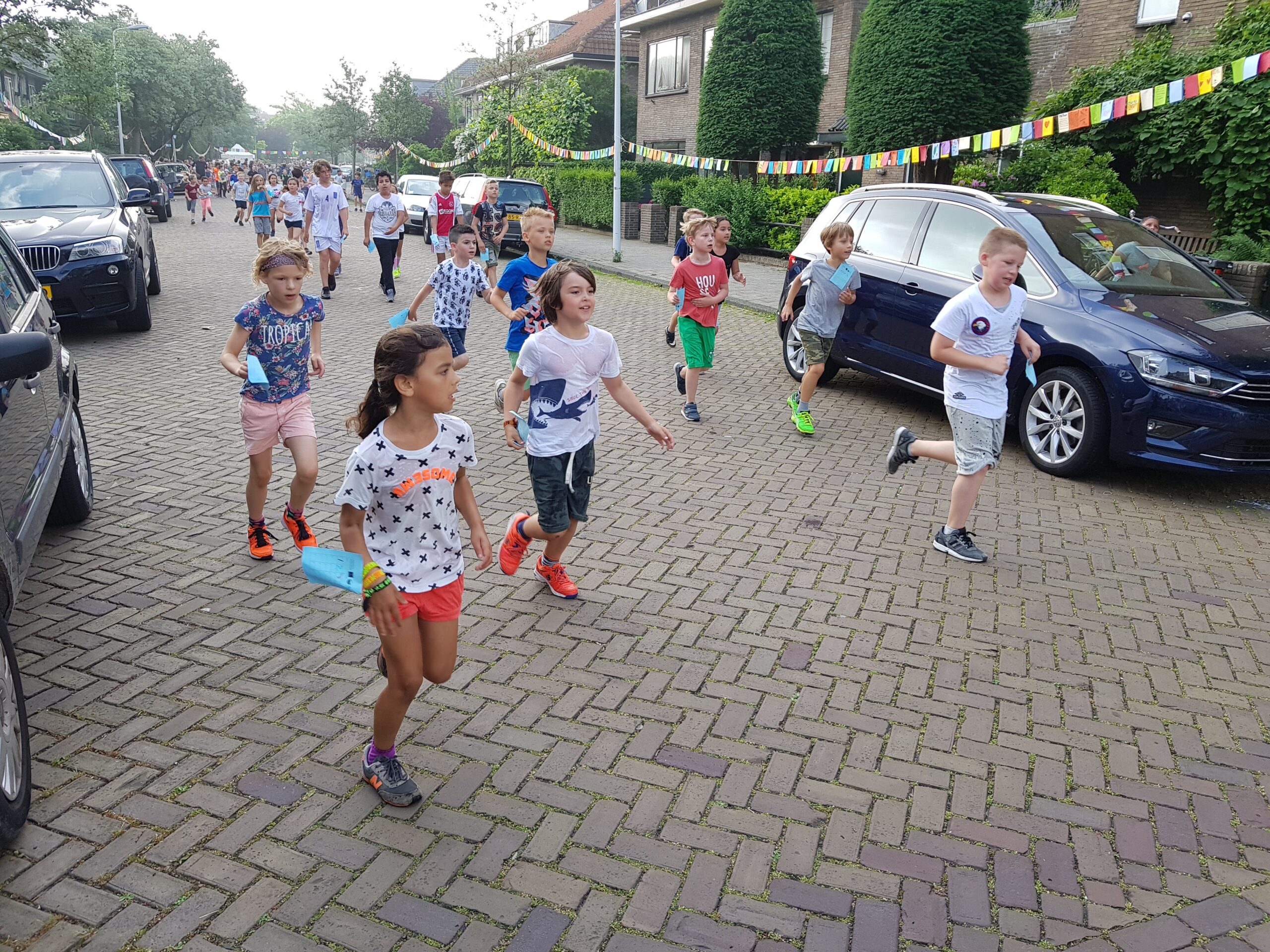 Start en finish van de sponsorloop waren zoals ieder jaar bij het plein van de De Laat de Kanterstraat. De kinderen renden rondjes en lieten zich door familie en buren sponsoren. Voor een vast bedrag of een bedrag per rondje. Normaal wordt er ongeveer een uur hard gelopen, maar omdat het ook vandaag weer erg warm was, werd dat ingekort tot drie kwartier.
