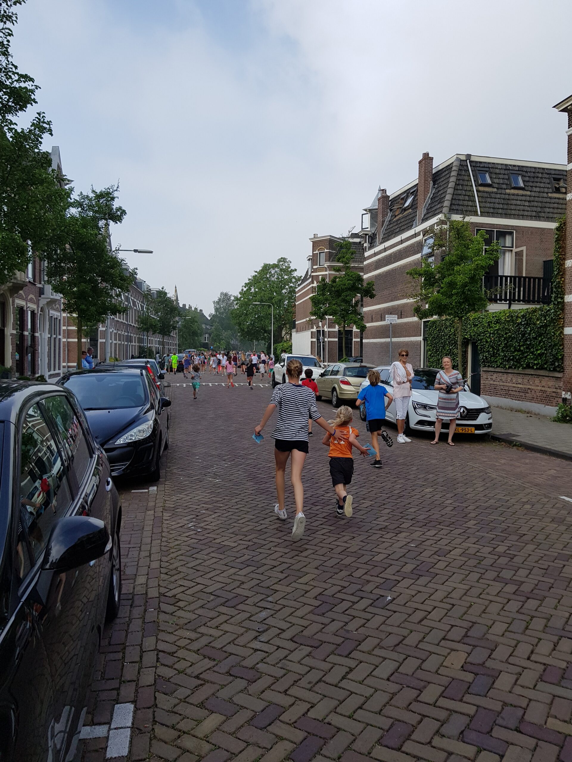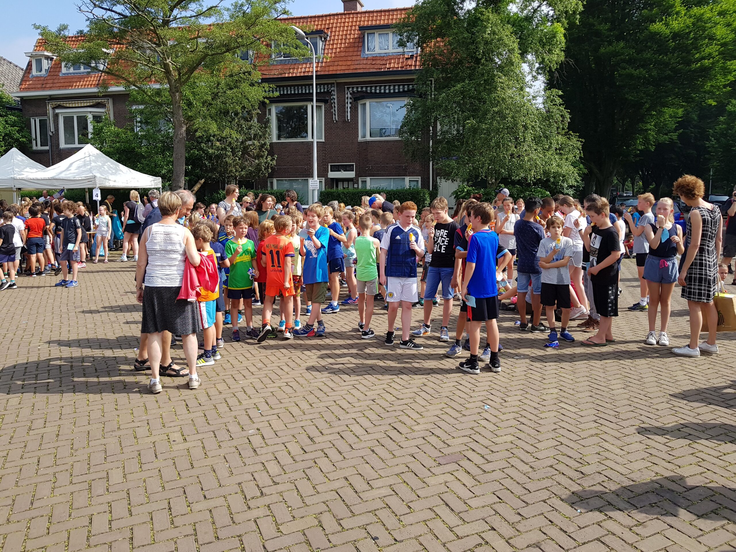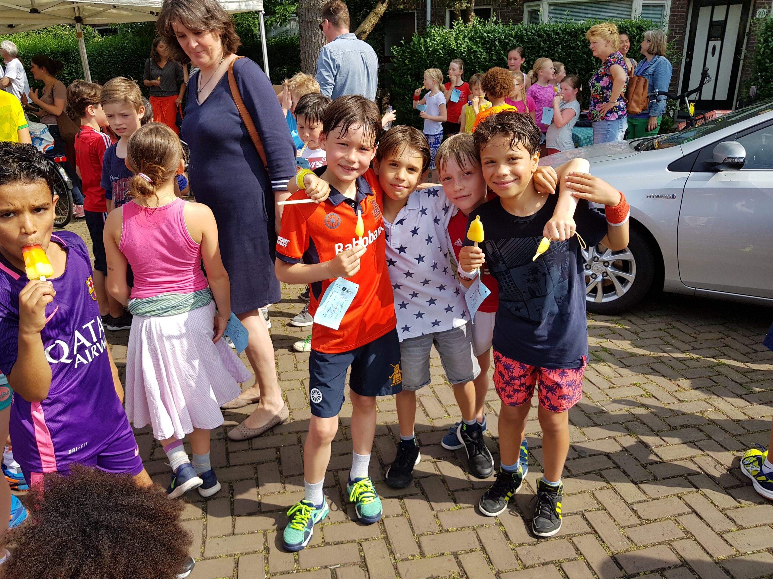 Start en finish van de sponsorloop waren zoals ieder jaar bij het plein van de De Laat de Kanterstraat. De kinderen renden rondjes en lieten zich door familie en buren sponsoren. Voor een vast bedrag of een bedrag per rondje. Normaal wordt er ongeveer een uur hard gelopen, maar omdat het ook vandaag weer erg warm was, werd dat ingekort tot drie kwartier.