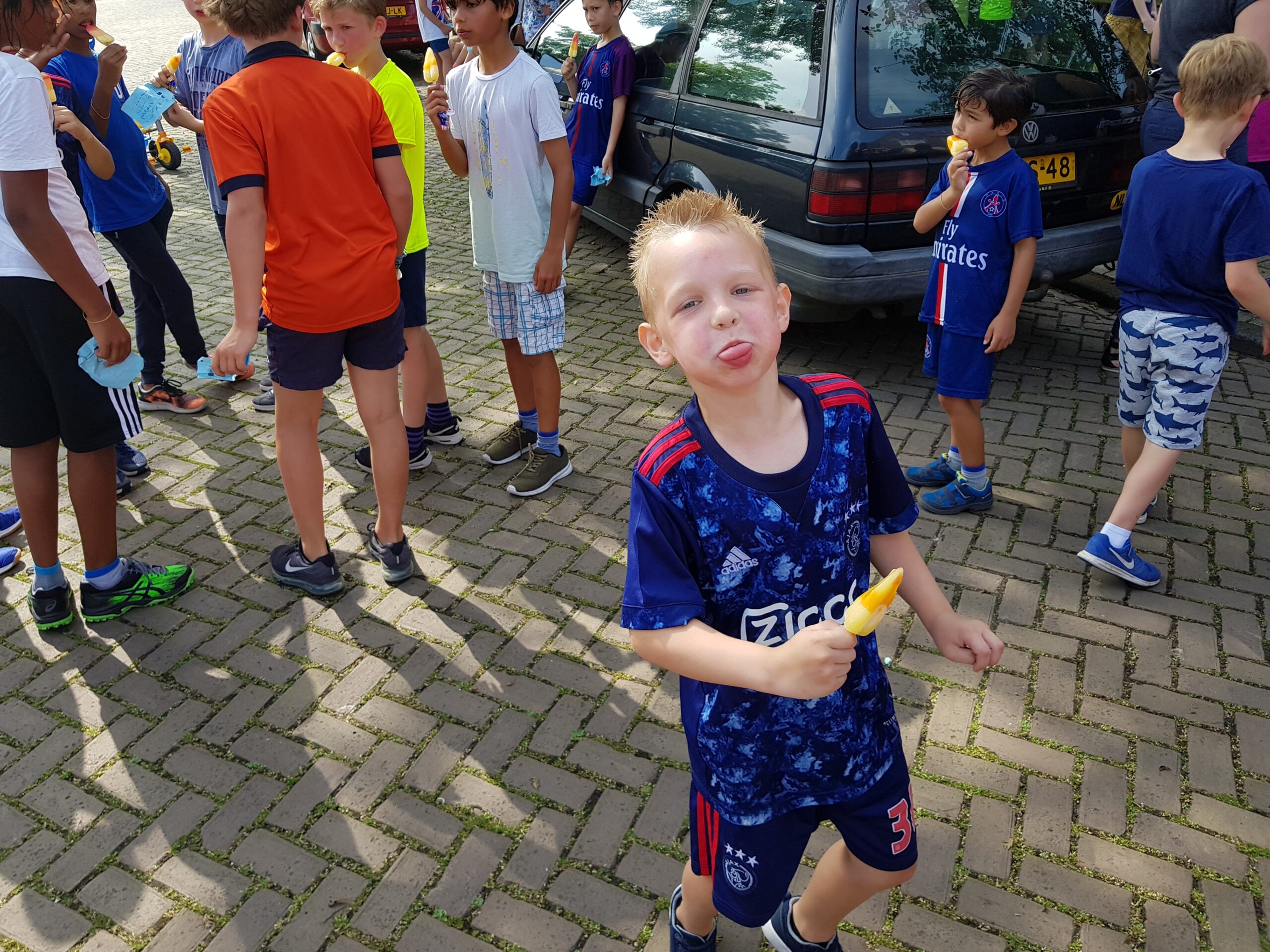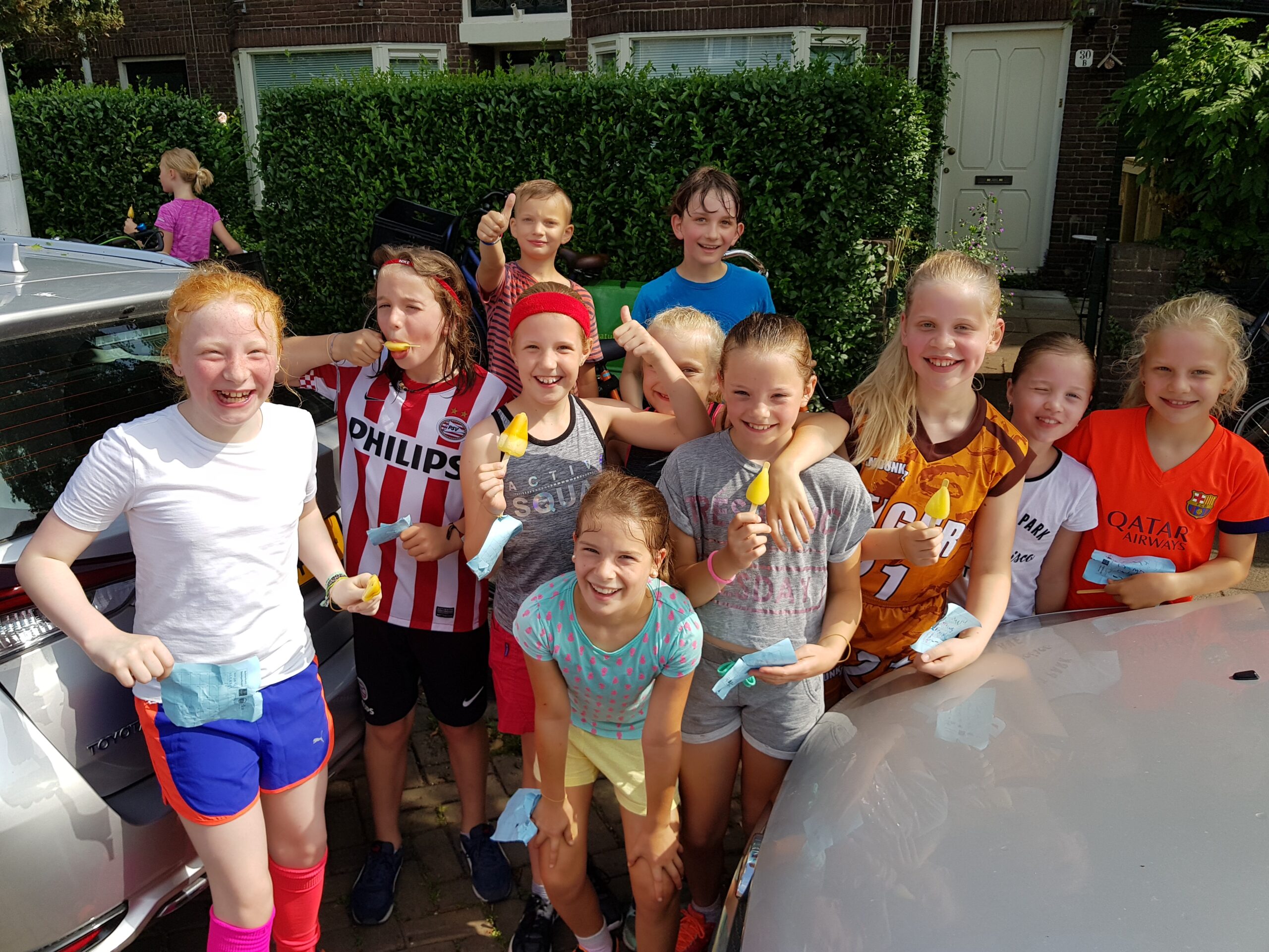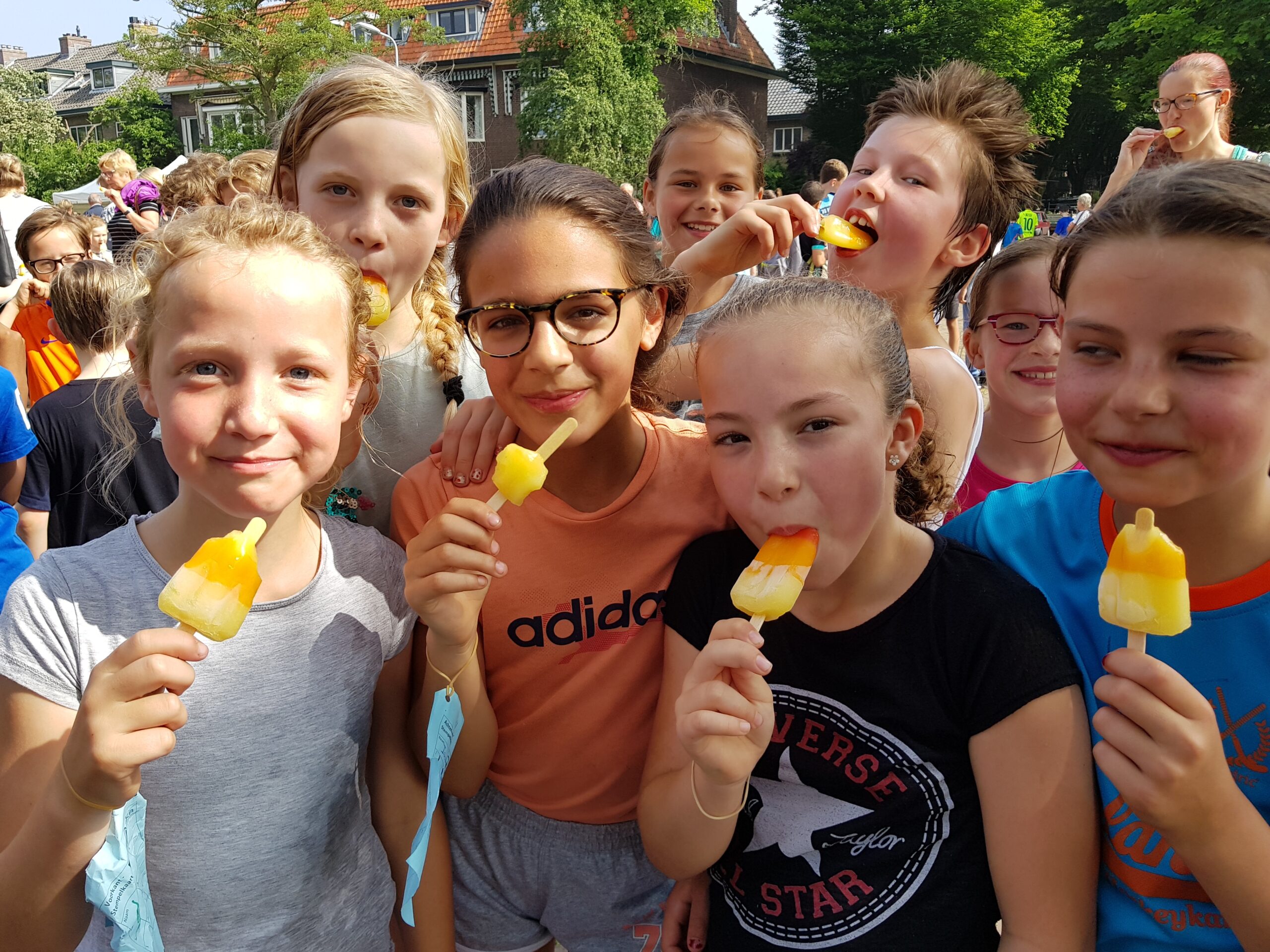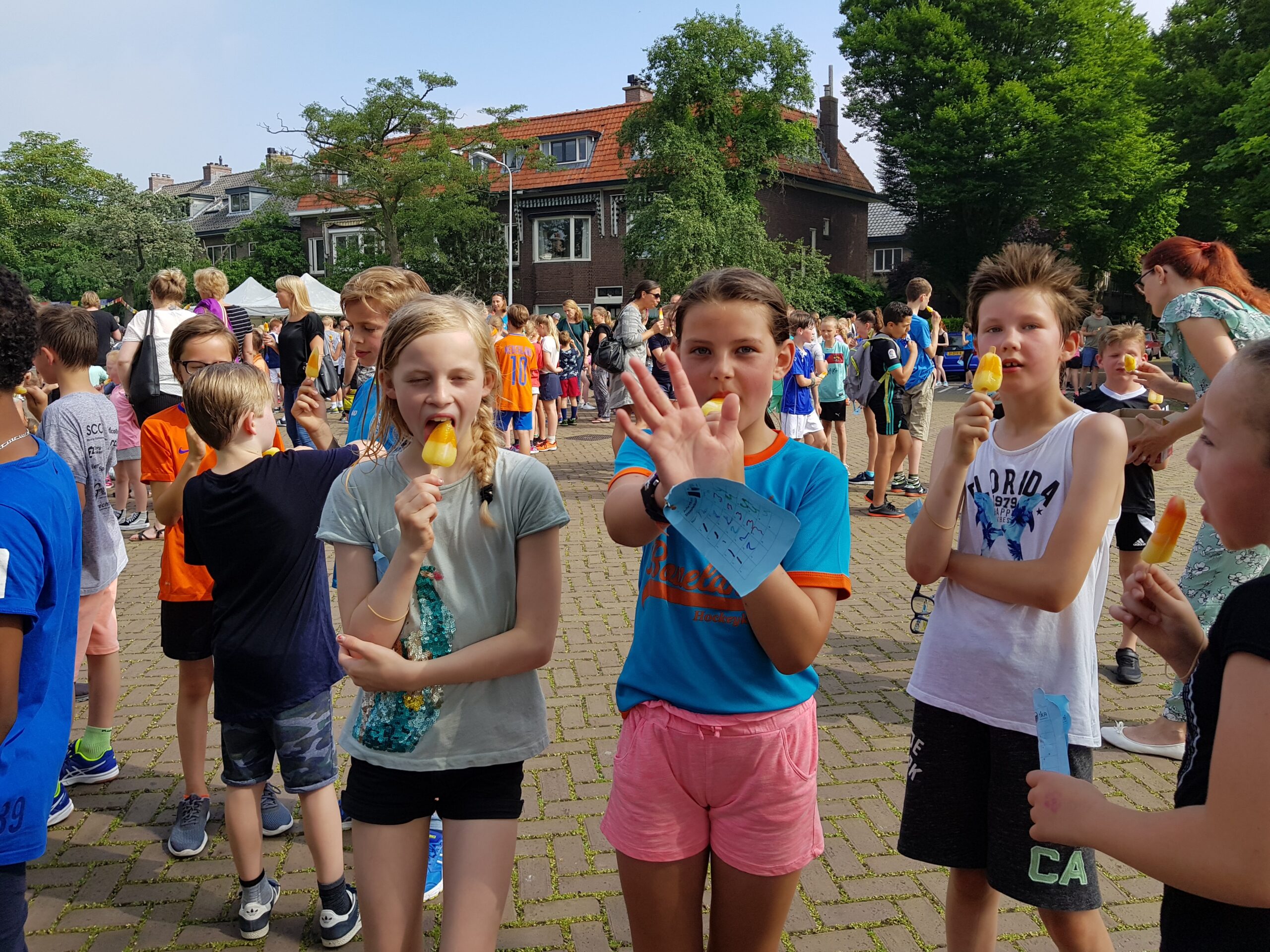 Start en finish van de sponsorloop waren zoals ieder jaar bij het plein van de De Laat de Kanterstraat. De kinderen renden rondjes en lieten zich door familie en buren sponsoren. Voor een vast bedrag of een bedrag per rondje. Normaal wordt er ongeveer een uur hard gelopen, maar omdat het ook vandaag weer erg warm was, werd dat ingekort tot drie kwartier.