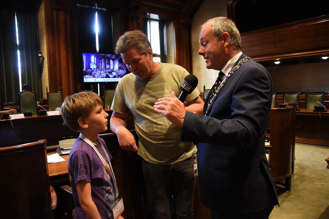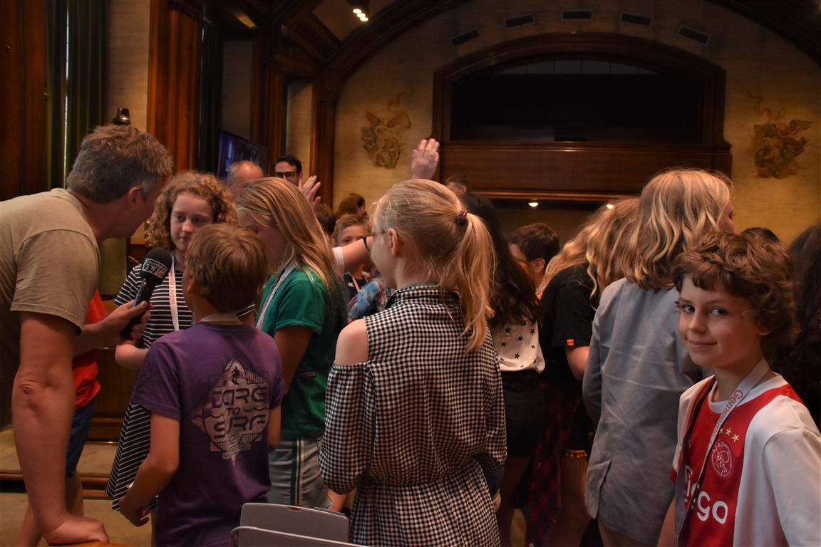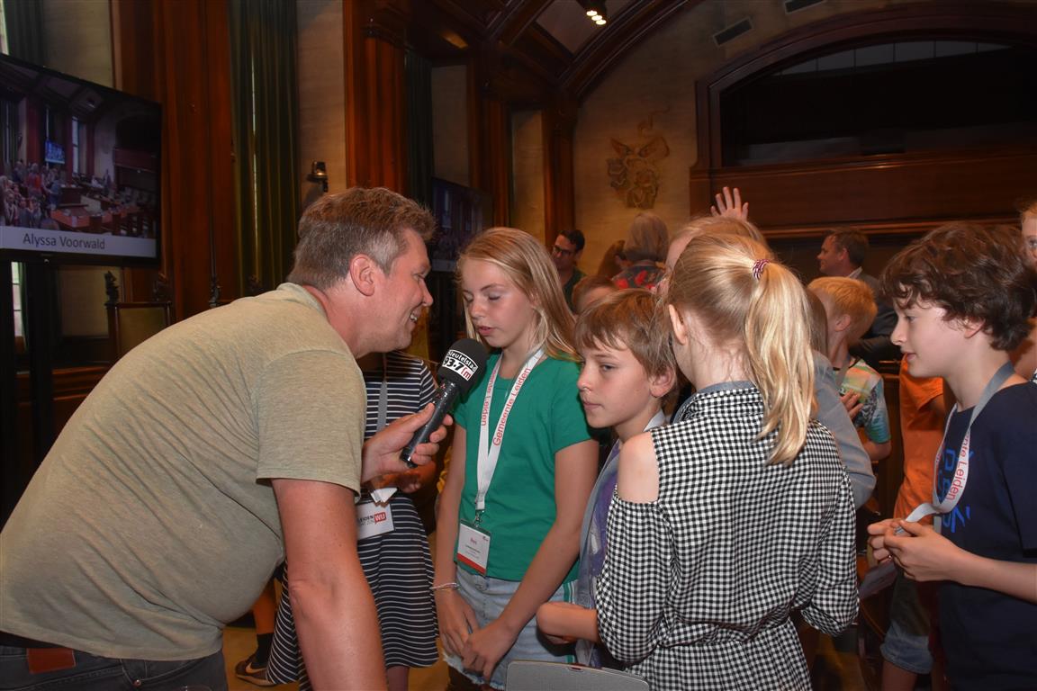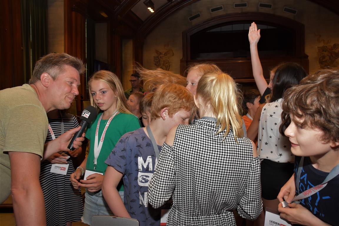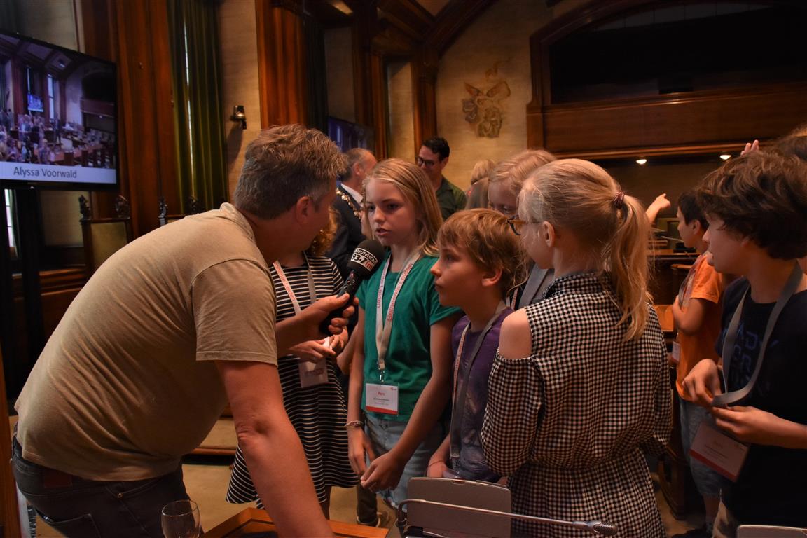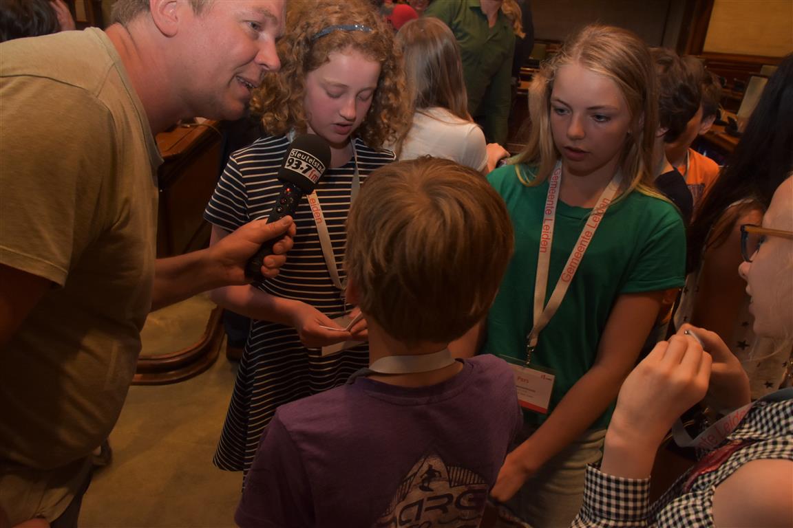 Chris de Waard was bij de kinderpersconferentie en sprak daar met juf Farida, enkele kinderen, oud-raadslid Marije van den Berg die de kinderen had geholpen bij de voorbereiding en met burgemeester Lenferink.