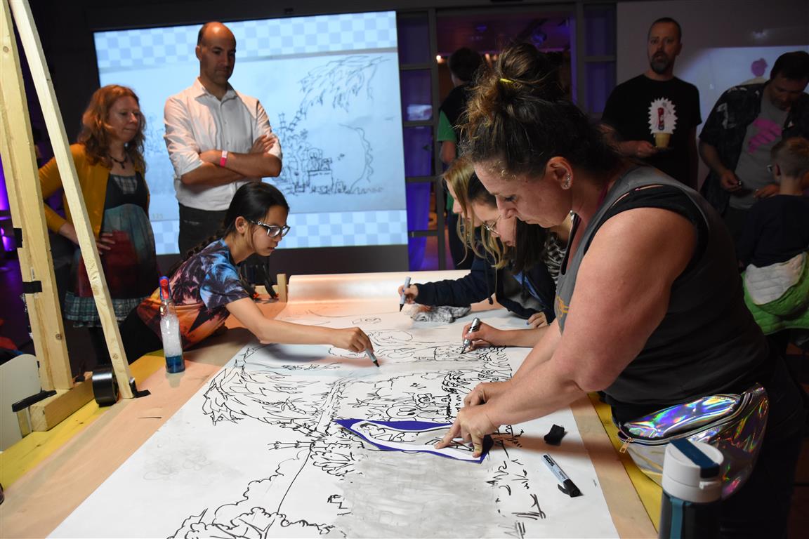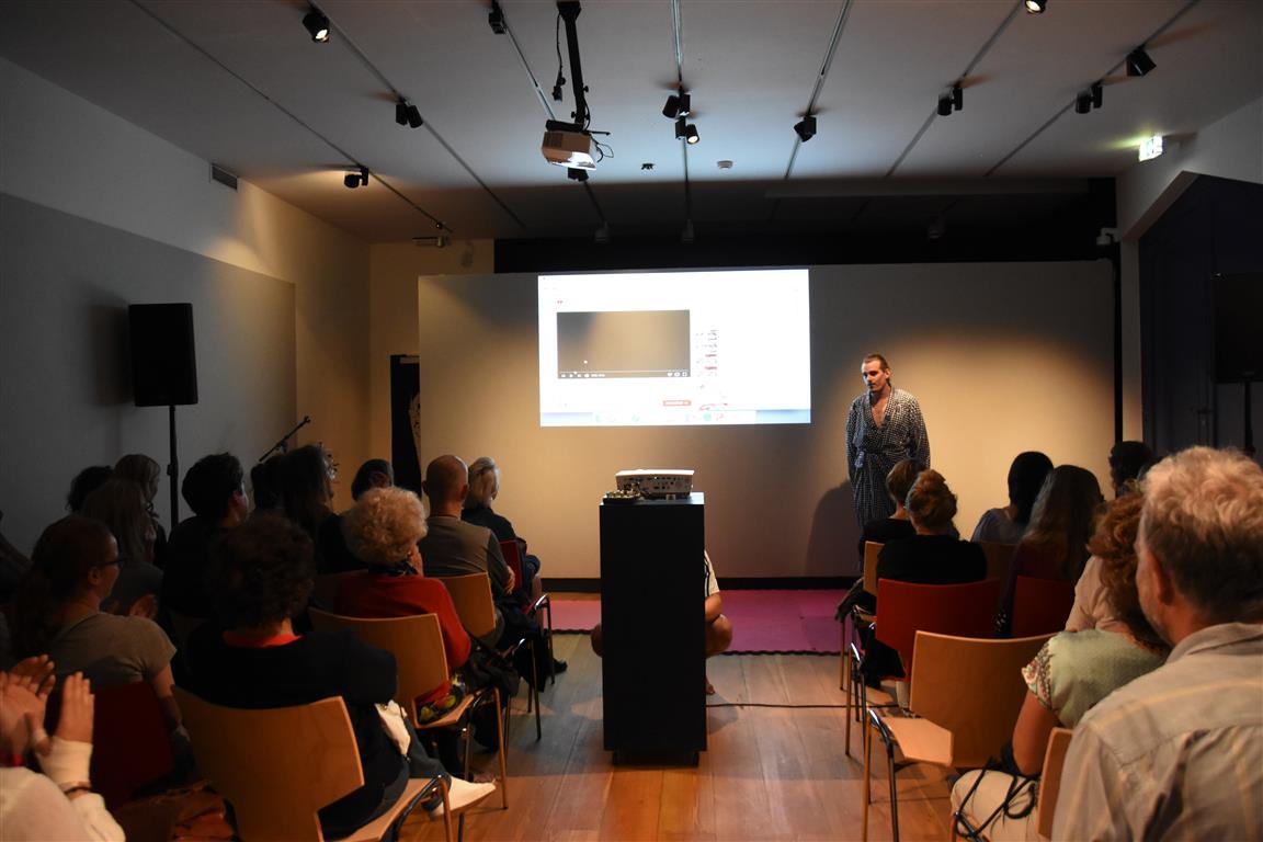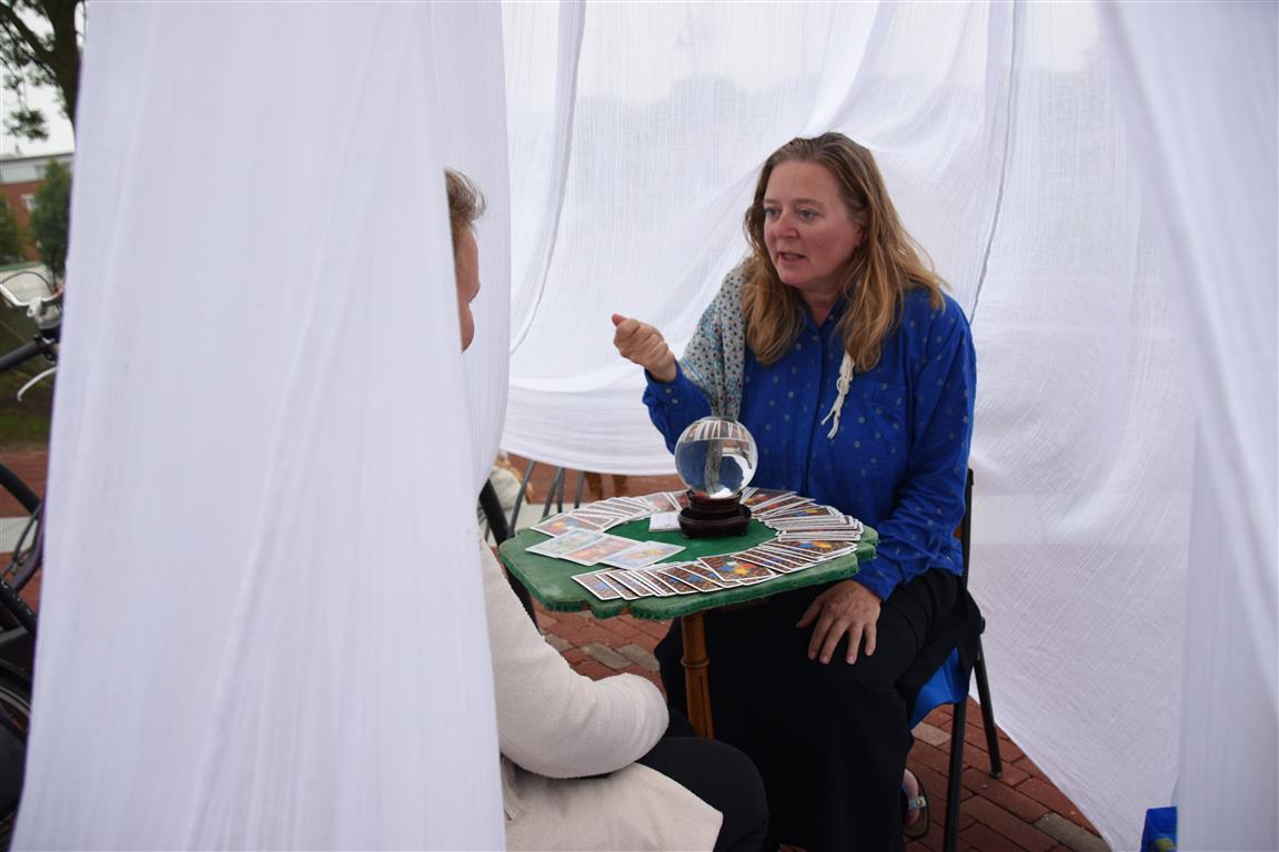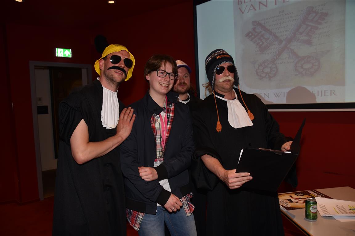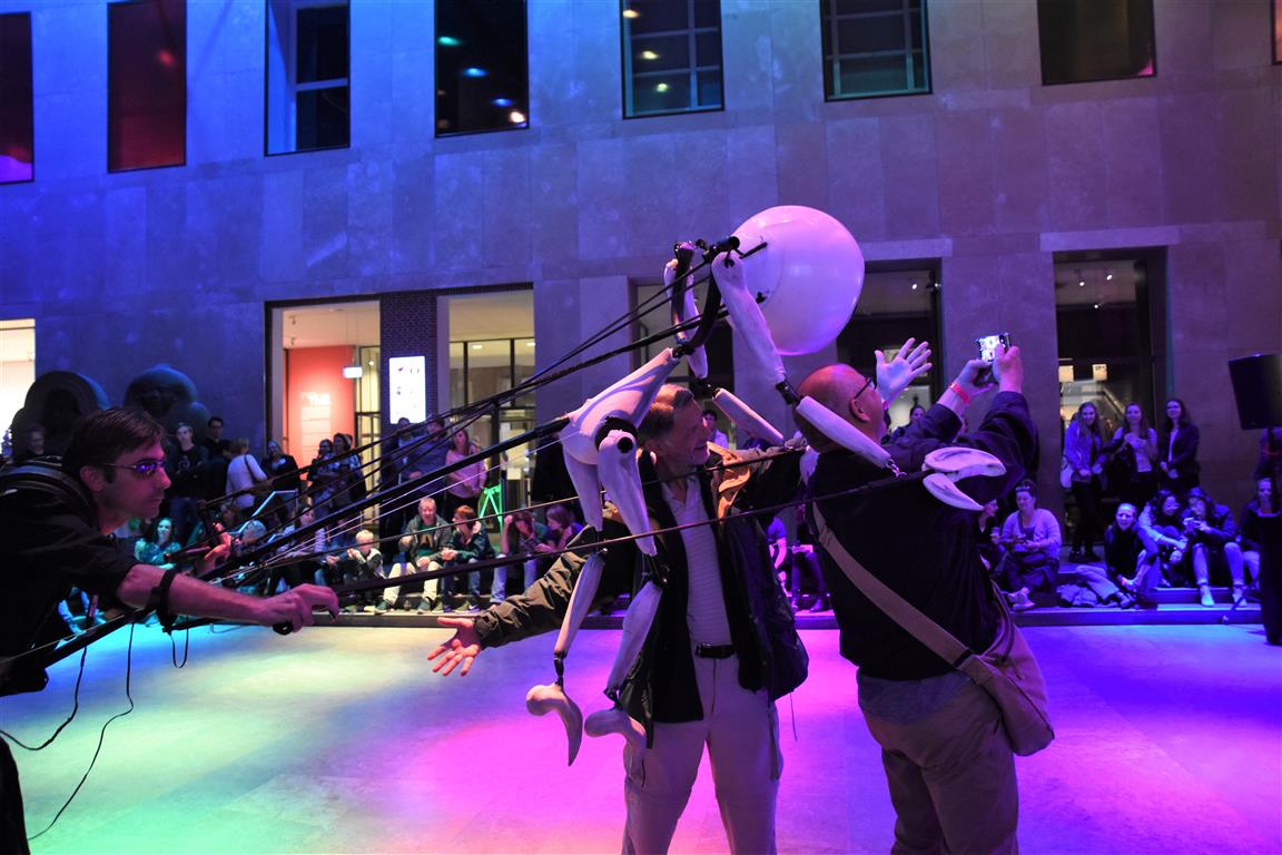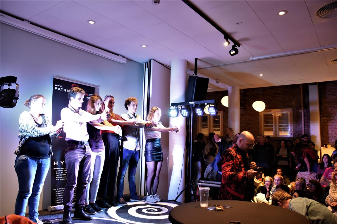 Lang geleden hebben we de hoop opgegeven bij festivals het tijdschema te kunnen volgen. Altijd overkomt je wel íets. In het blokkenschema kun je wel wat ‘ankerpunten’ vinden. Hypnotiseur Patrick Pickart in Museum Boerhaave zagen we wel; nét aan, want het was druk met lange mensen. ‘Mind over body’, zoiets , want “als je vooraf al denkt dat iets niet gaat lukken, dan lukt het ook niet. En andersom….” Hij liet het zien met publiek: dan kun je dingen doen die niet kunnen. Maar om dan nog even aan te wippen bij ‘Aan tafel met Frankenstein’, waar met Kim Holland werd gesproken over high tech seks(speeltjes), bleek nóg lastiger vanwege de drukte. Wél zagen we in Boerhaave het exoskelet uitgeprobeerd worden. En dat veel mensen de autonome robot SAM voorbijliepen. Terwijl SAM al in staat is z’n eigen geld te verdienen. Maar misschien dat dát verhaal onderbelicht bleef.