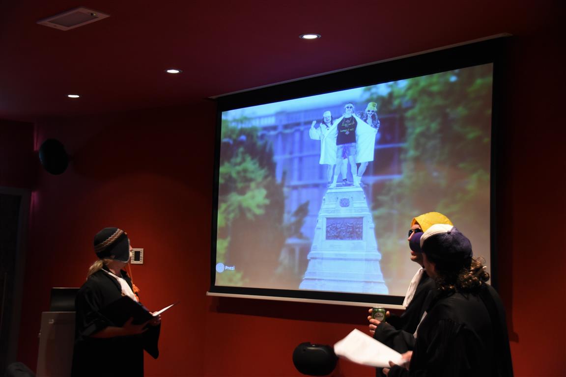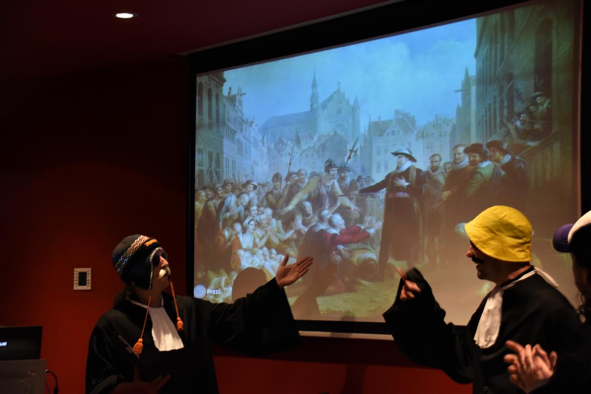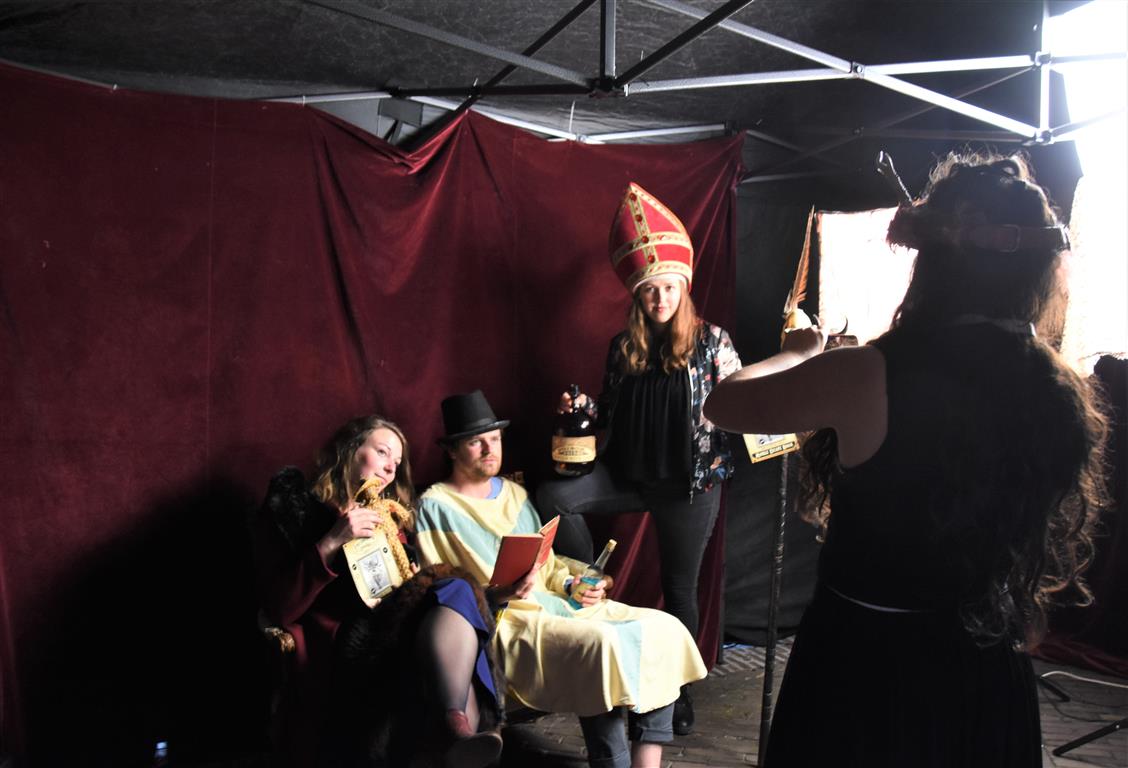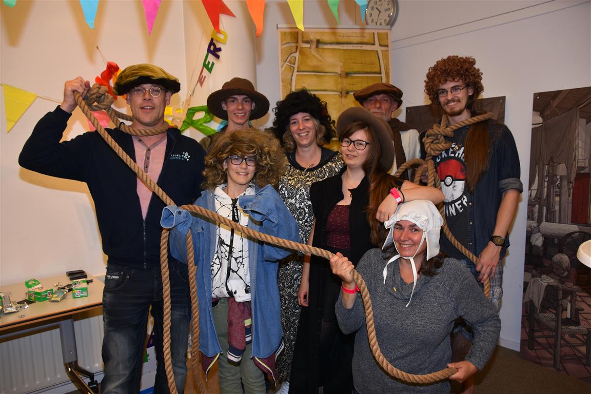 Het zijn misschien juist de kleine, onverwachte ontmoetingen die de Museumnacht aantrekkelijk maken. De ‘verkleedcabine’ van Cabinet of Curiosities bijvoorbeeld, waar je verkleed op de foto kon “Een vrouwendingetje? Nee, dat zie je verkeerd. Ook mannen doen mee, hoor”. Het had wel iets van de jaren twintig, dertig van de vorige eeuw, daar op straat voor het Museum van Oudheden. Of, in de Hortus, het Piepklein Mega Museum van Catoo Lustig, met een voorstelling over “onzekerheid en identiteit” zoals één van haar collega’s dat omschreef. Hij overreedde ons te komen kijken – slechts enkele plaatsen per voorstelling, want piepklein ís ook piepklein – waarna we verstrikt raakten in gesprekken, de tijd uit het oog verloren en de voorstelling misten.