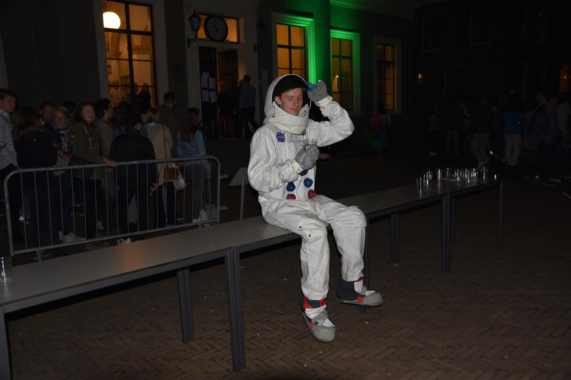 Zo rond 23.00/24.00 uur slaat de honger toe, viel vast te stellen bij de snackkramen in de Hortus en bij Volkenkunde. Karels Biofriet trok een rij hongerigen aan (en riep de vraag op hoe je de sanitaire stop regelt als je alleen staat te bakken en verkopen). Overigens was de rij “tien minuten wachttijd” voor de rondleidingen door de Oude Sterrewacht langer en permanenter. De ruimte, het heelal, de kosmos, het fascineert.