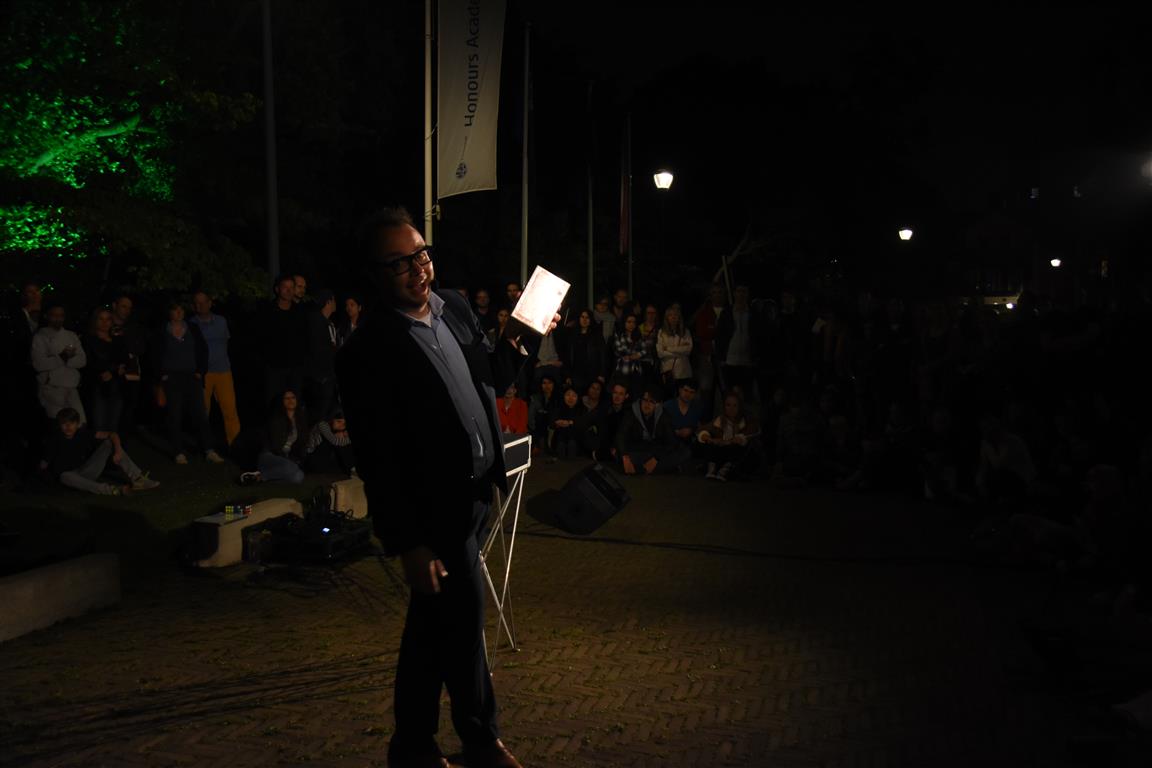 Museumnacht is een best lastig te duiden feestje. Voor een deel van de bezoekers is het een buitenkans, want voor max €15 kun je bijna álle Leidse musea in. Voor een ander deel zijn de lezingen, workshops en demonstraties het aantrekkelijke element. En dan is er een groep die ‘gewoon voor de sfeer komt’, die rondwandelt en in museumtuinen en -binnenplaatsen ontspant met een hapje en een drankje. En Leiden zou Leiden niet zijn, als je op zo’n avond niet ook (oude) bekenden tegen het lijf loopt.