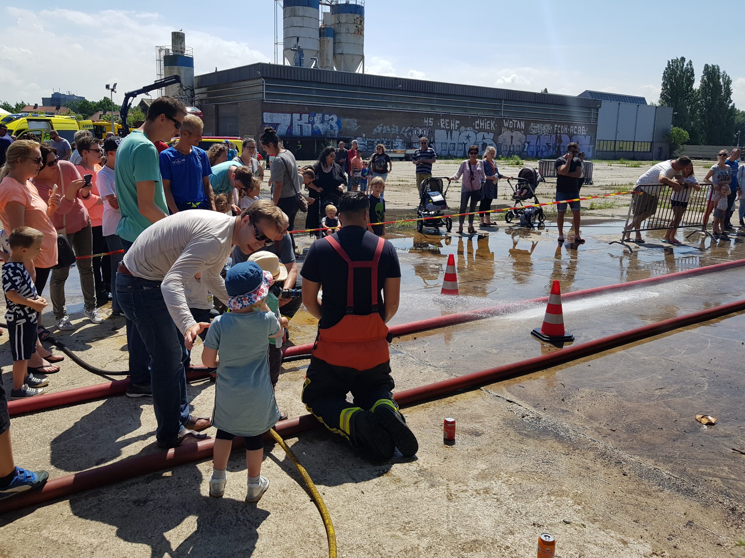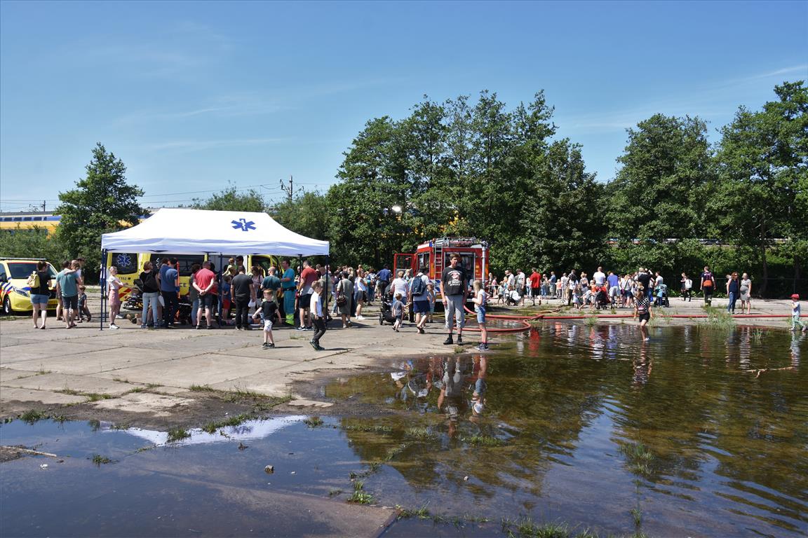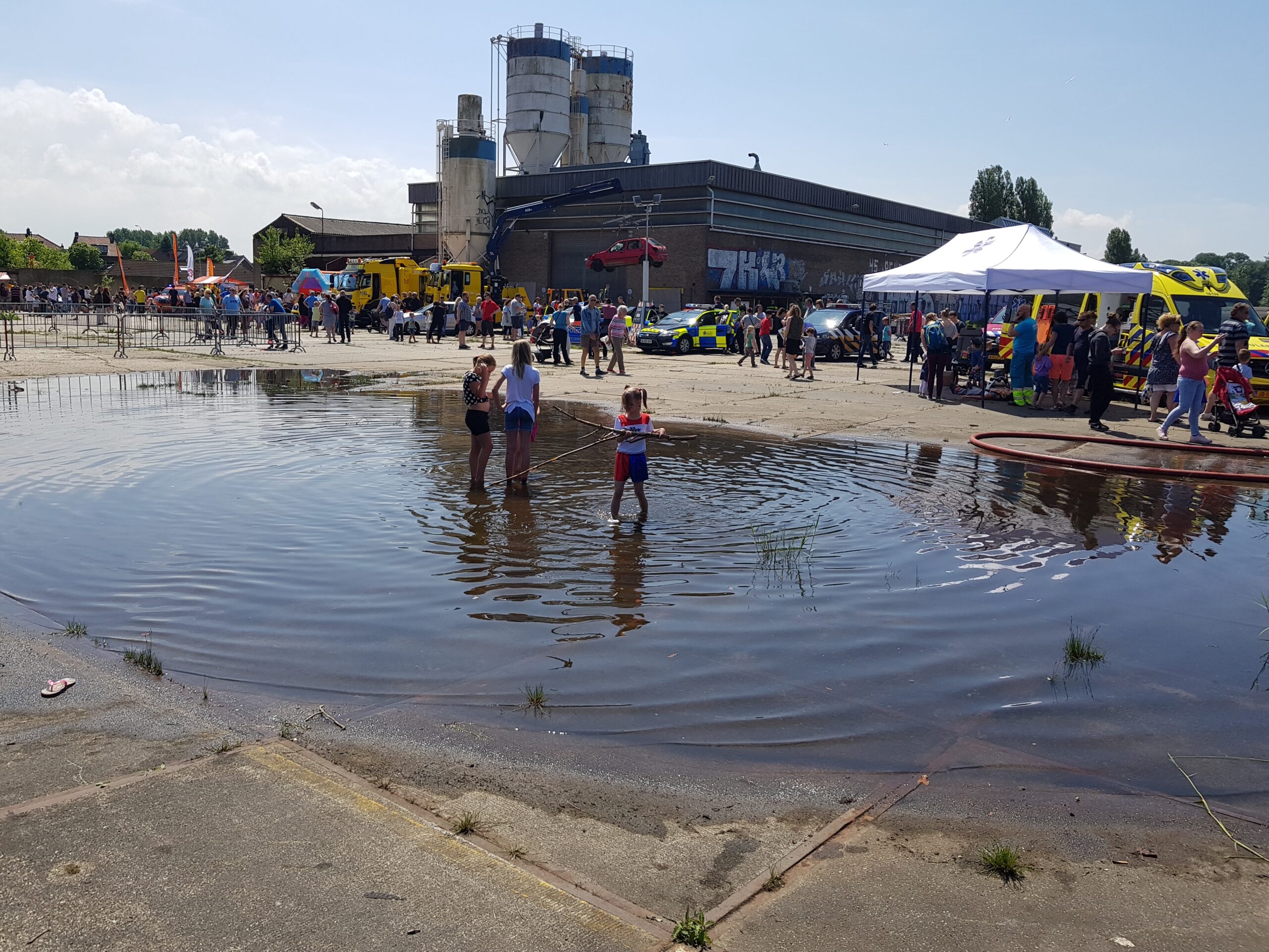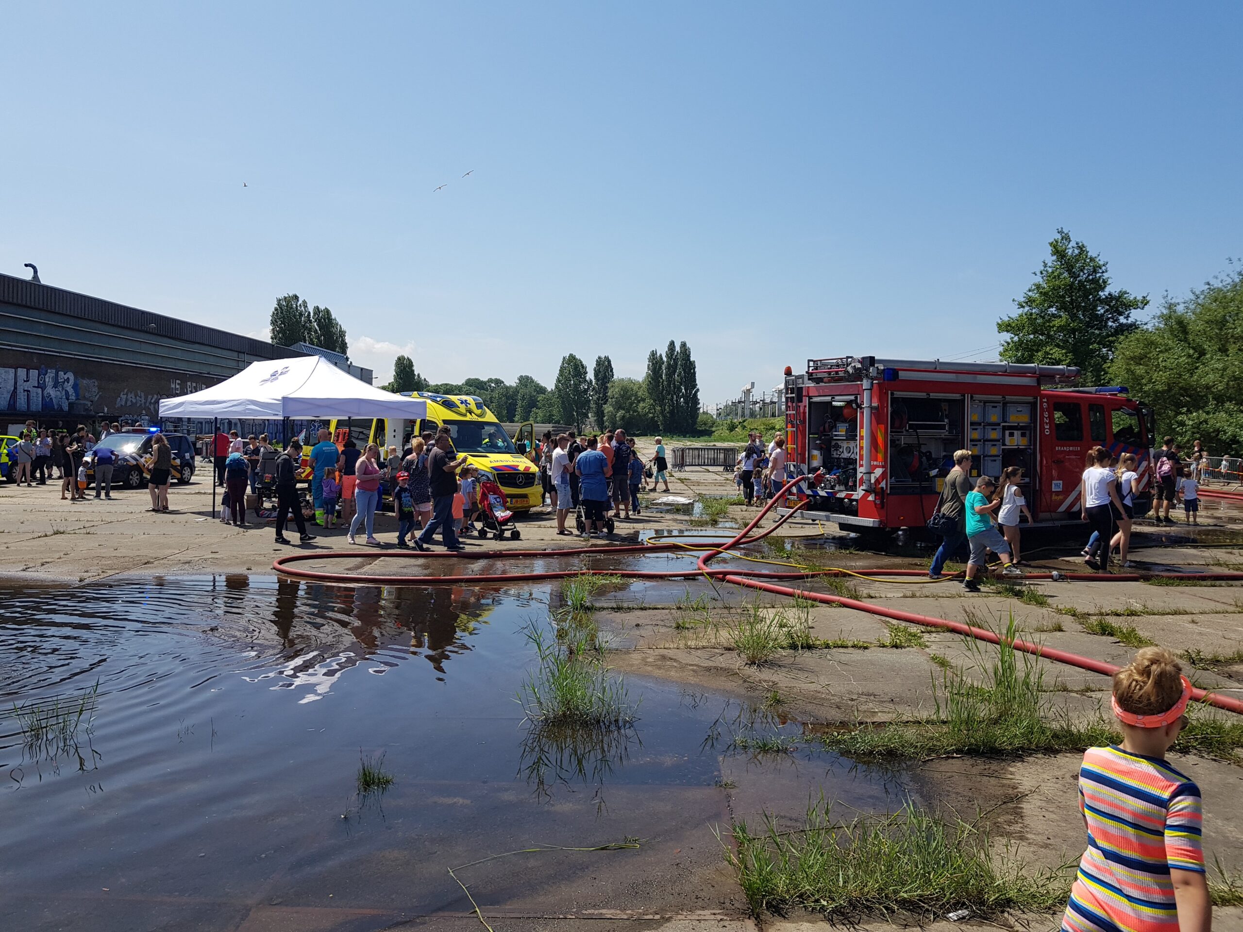 De open dag die de gezamenlijke Leidse hulpdiensten zondag hielden op het terrein van Wernink Beton aan de Amphoraweg volgens een schatting van de politie zo’n 7.500 bezoekers getrokken. In de stralende zon genoten de bezoekers van allerlei demonstraties. Onder andere een reddingsactie van de Leidse Reddingsbrigade waarbij een ‘drenkeling’ uit de Rijn werd gered.