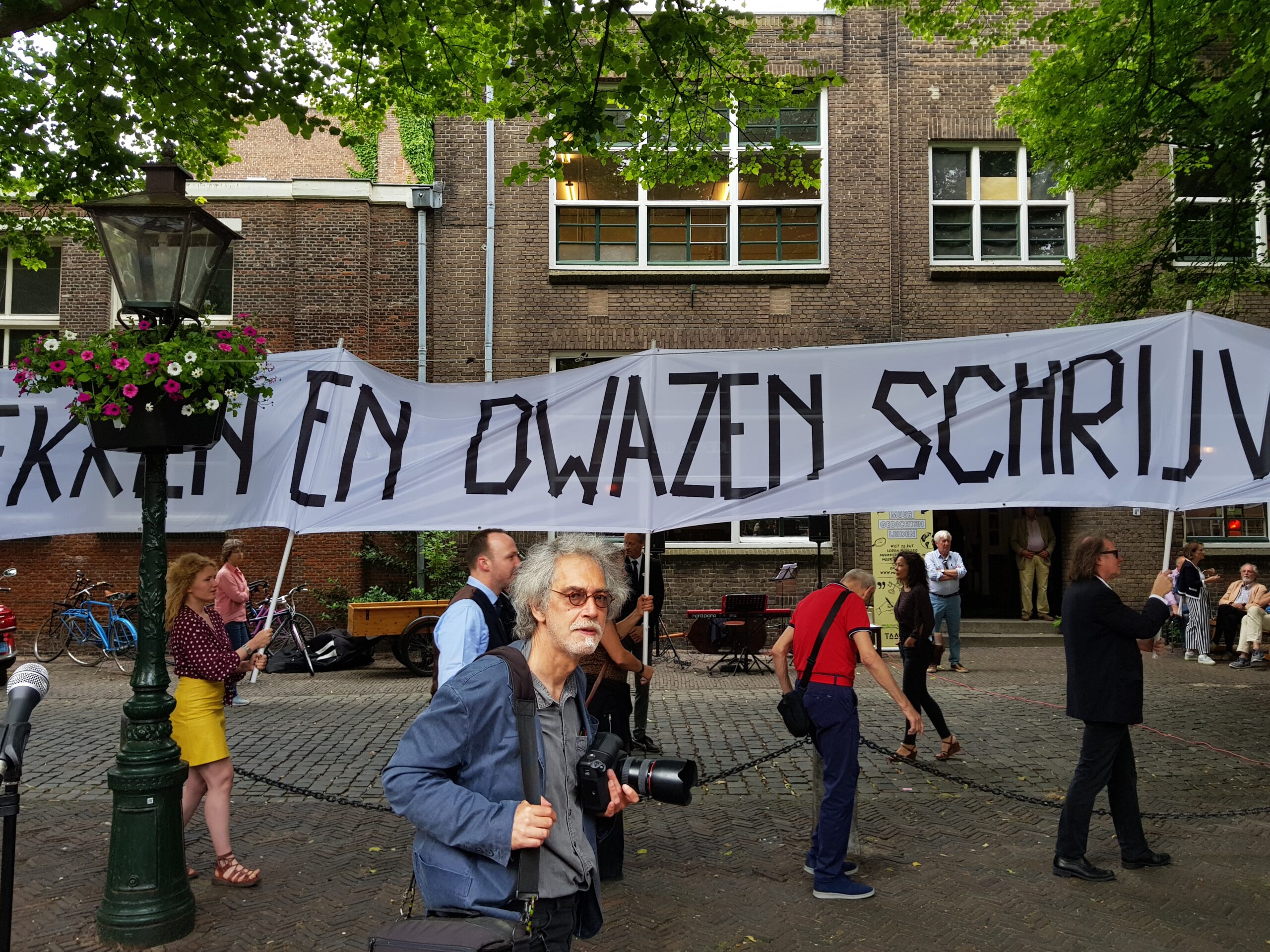Chris de Waard sprak vanmorgen met locoburgemeester Fleur Spijker, voorzitter Ben Walenkamp van de Stichting Tegen-Beeld en met directeur Pepijn Reeser van het Taalmuseum Leiden.