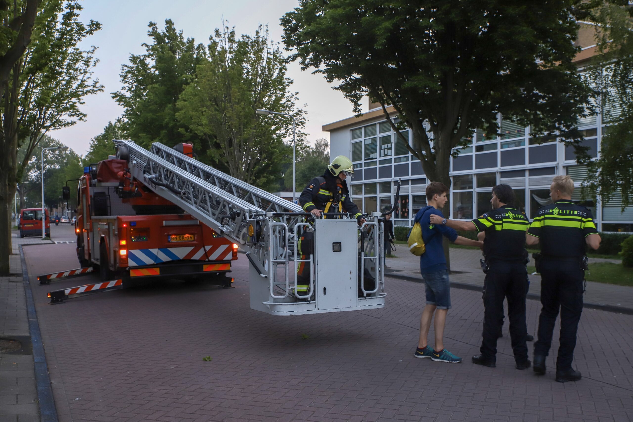Zaterdagavond heeft de politie met behulp van de brandweer een aantal jongeren van het dak van Het Waterland gehaald. De jongens waren op het dak van de school in de Boerhaavelaan geklommen wilden toen dde politie kwam niet uit zichzelf naar beneden komen.