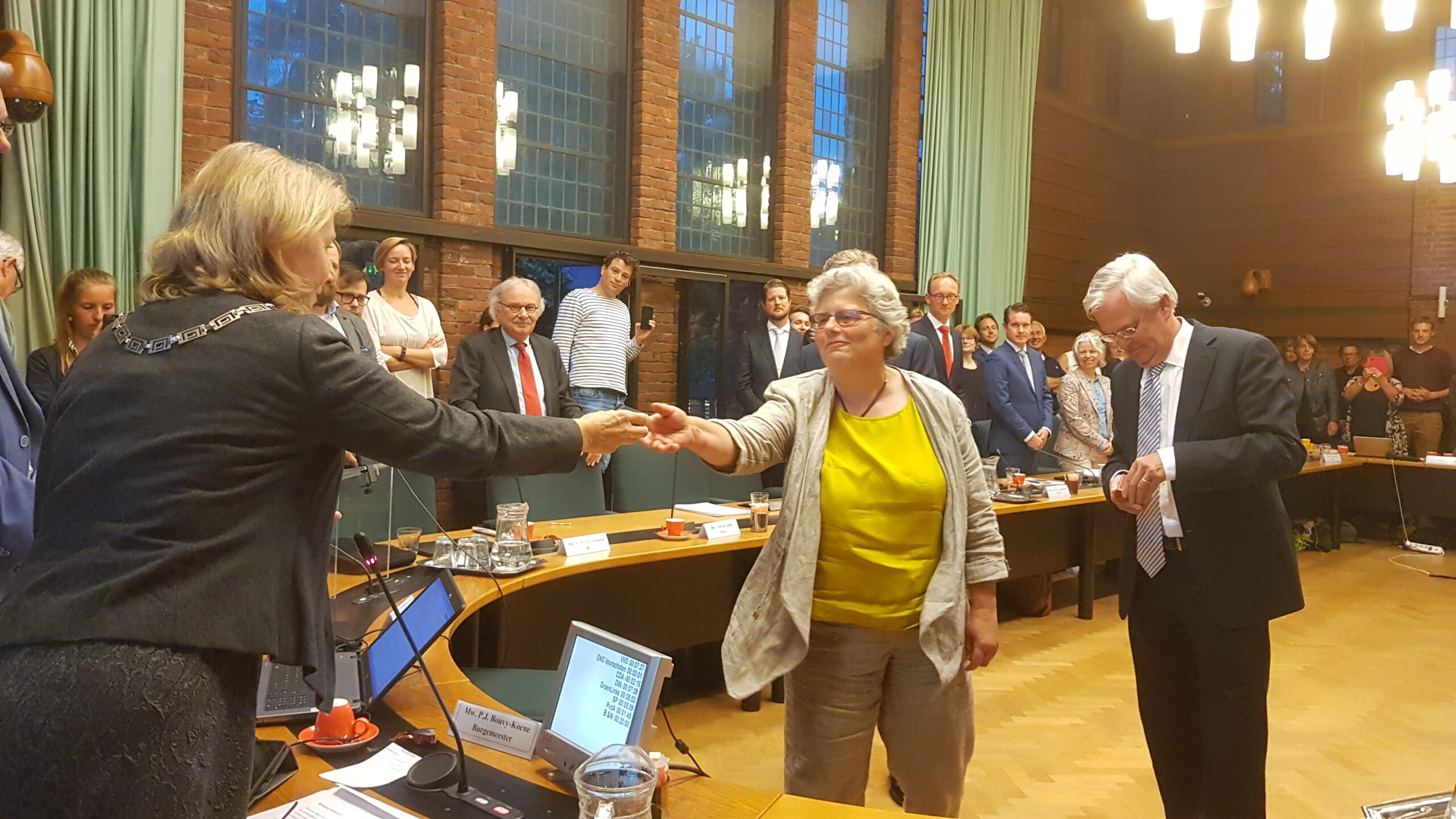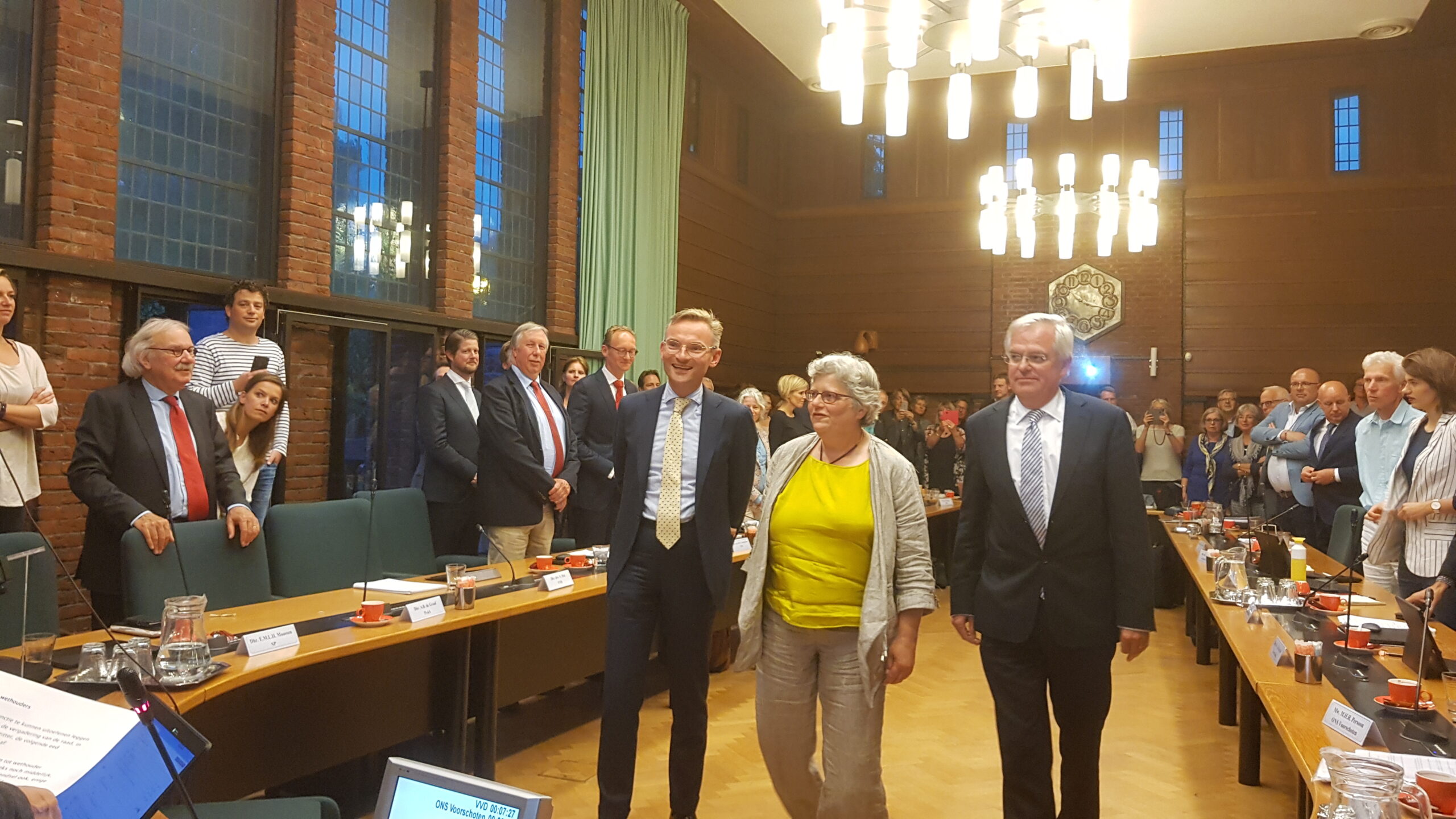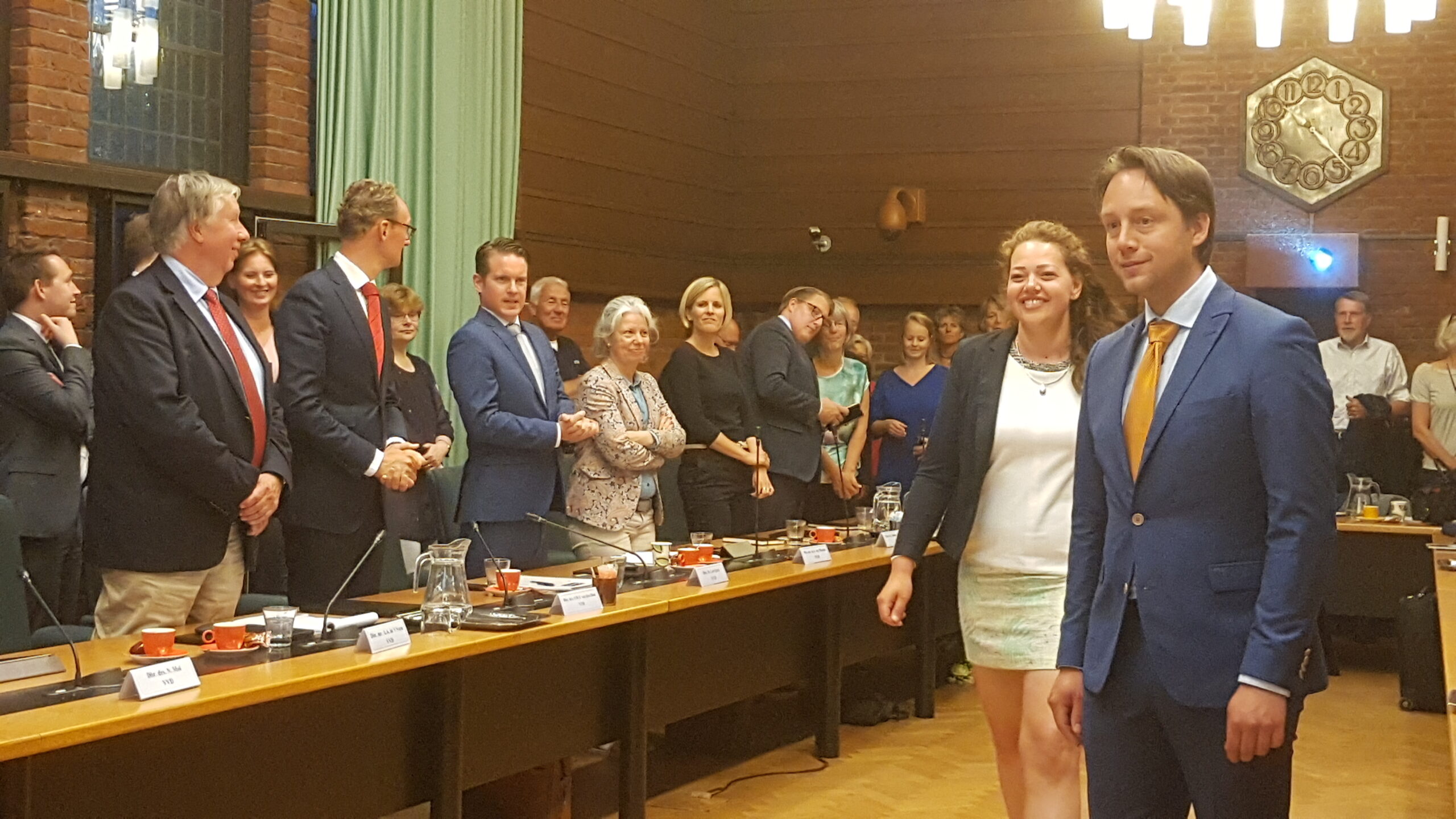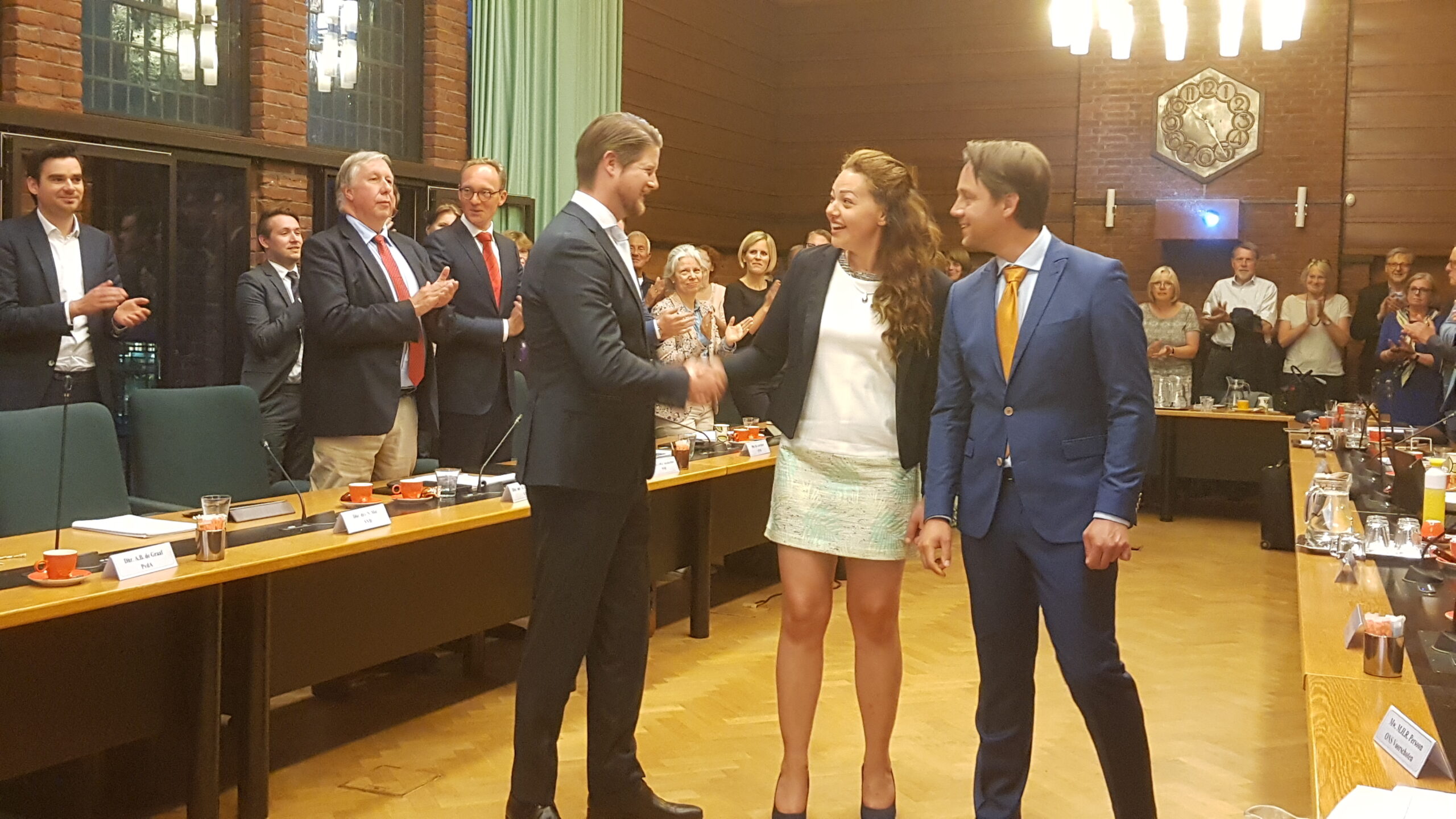 Het nieuwe college bestaat uit Nanning Mol namens de VVD, Monique Lamers namens GroenLinks en Marcel Cramwinckel namens D66.