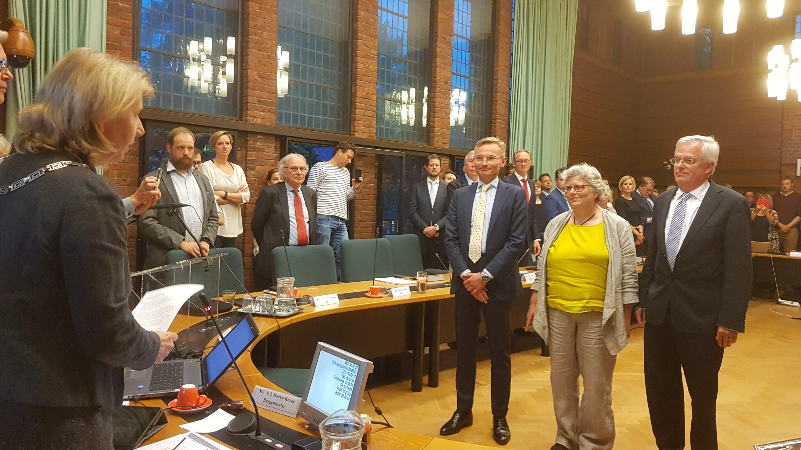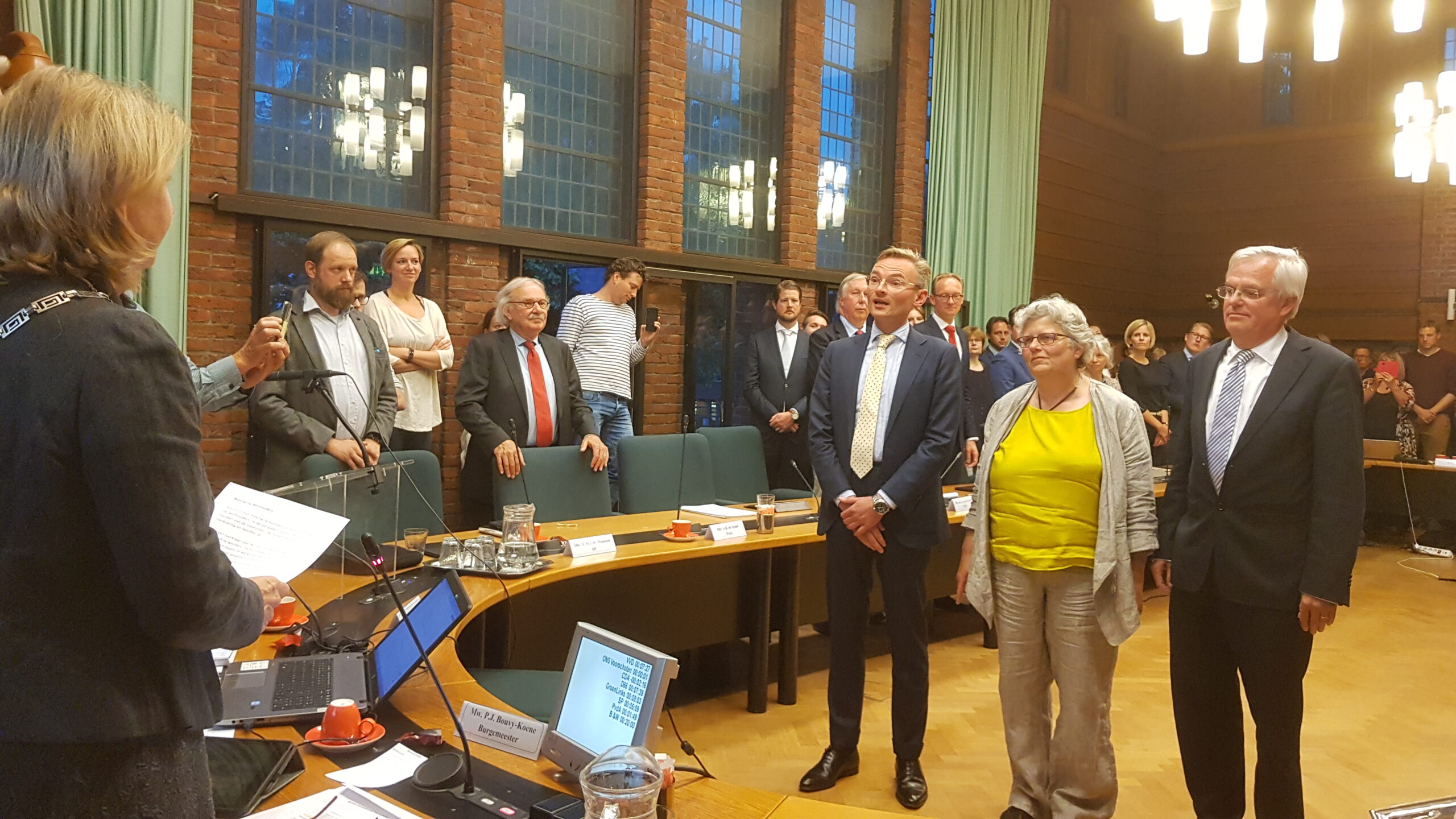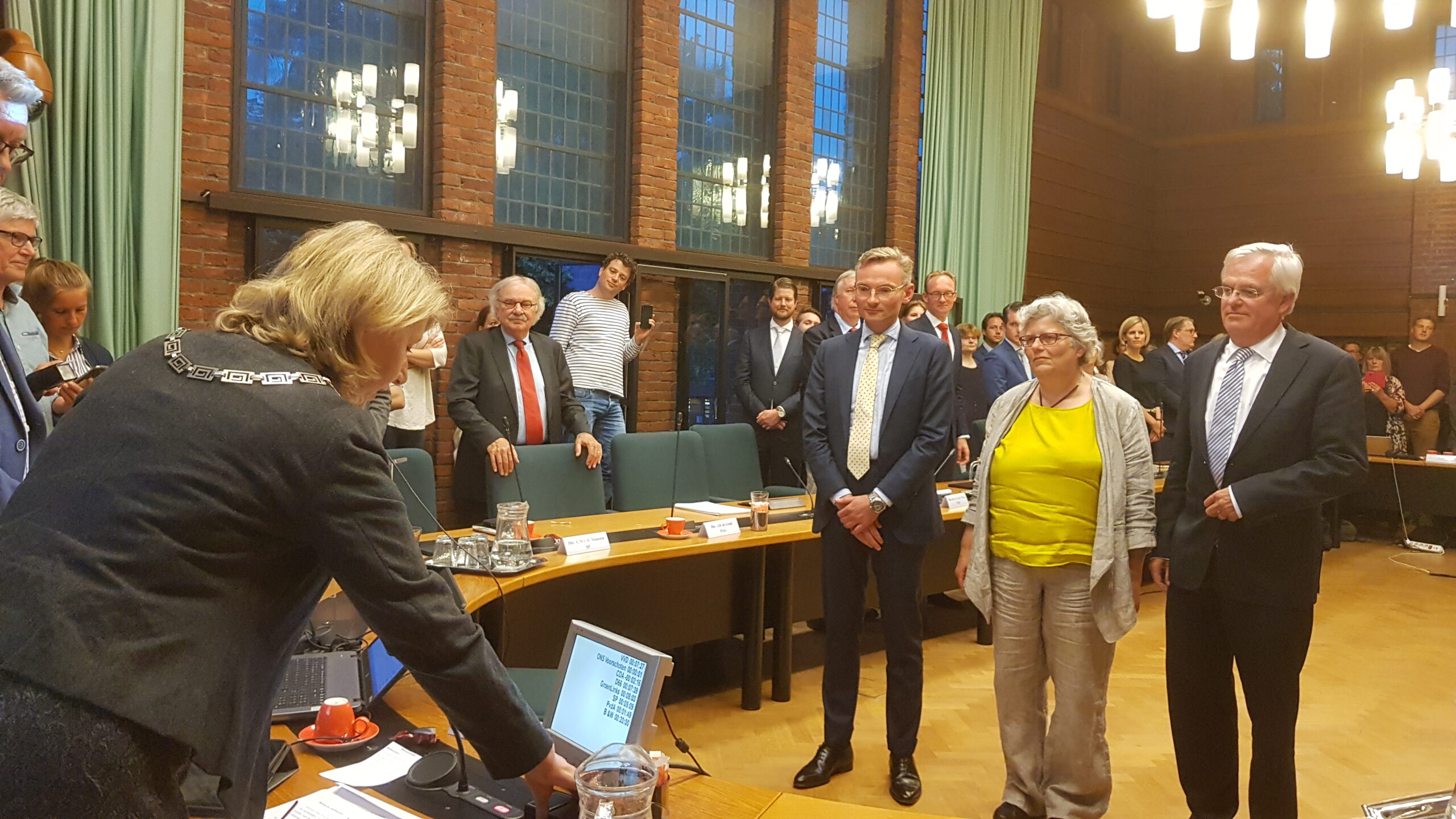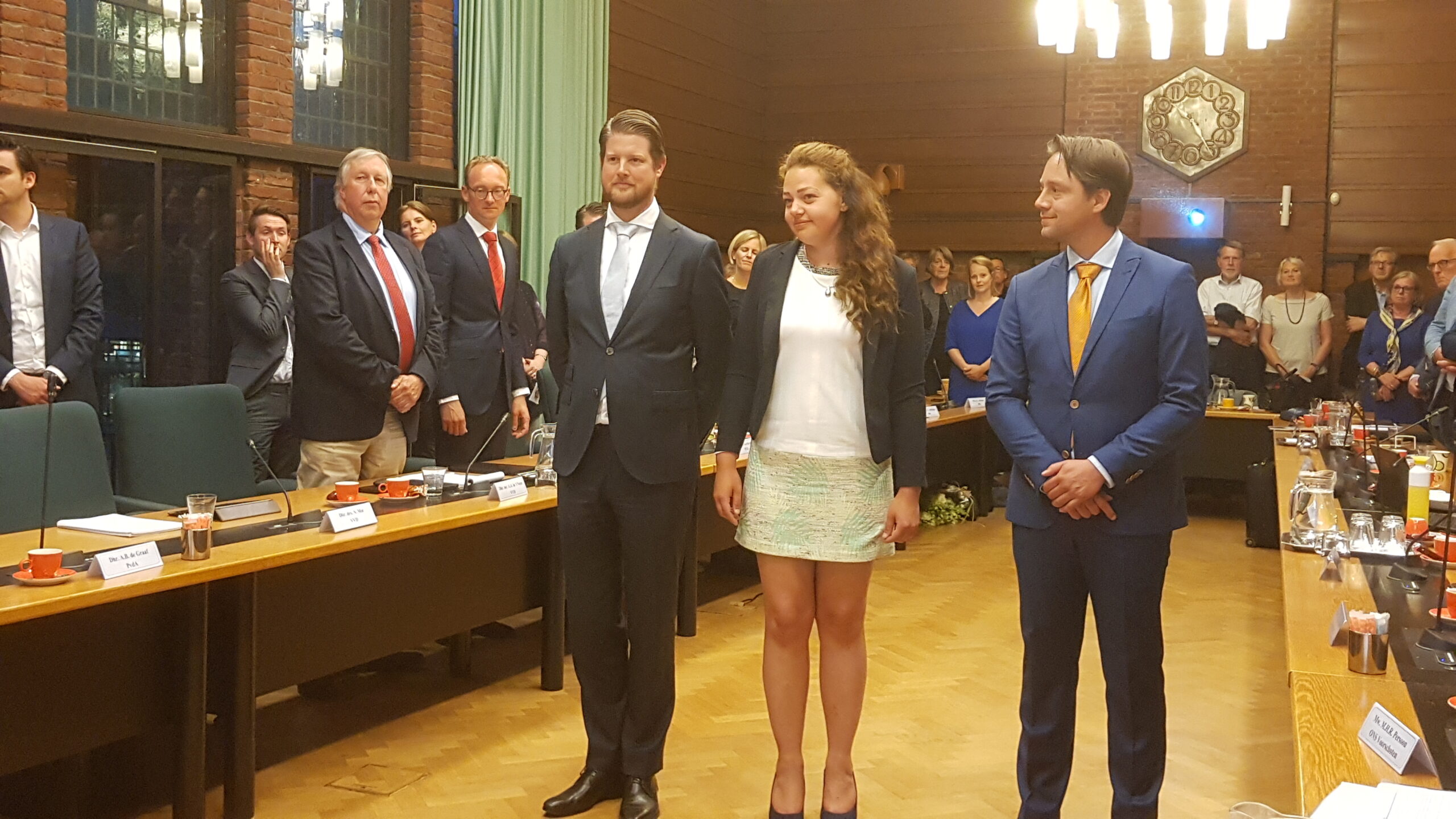 Het nieuwe college bestaat uit Nanning Mol namens de VVD, Monique Lamers namens GroenLinks en Marcel Cramwinckel namens D66.