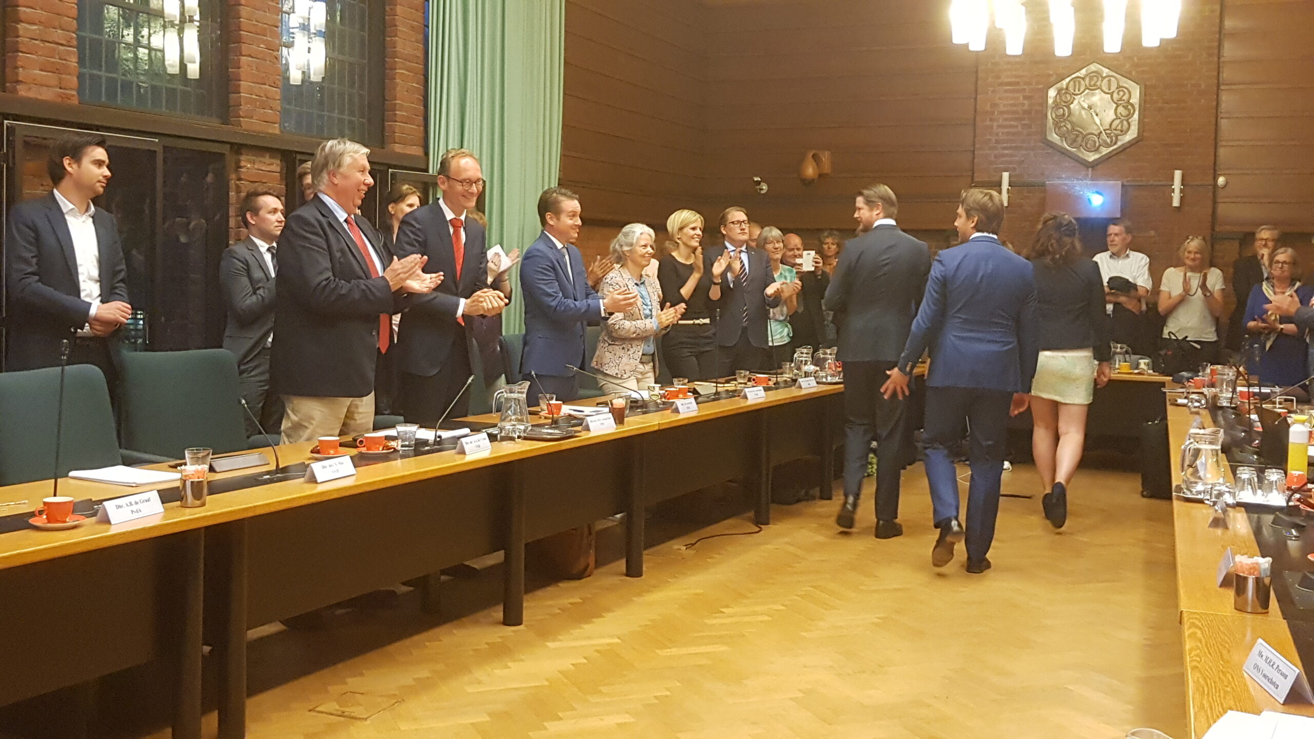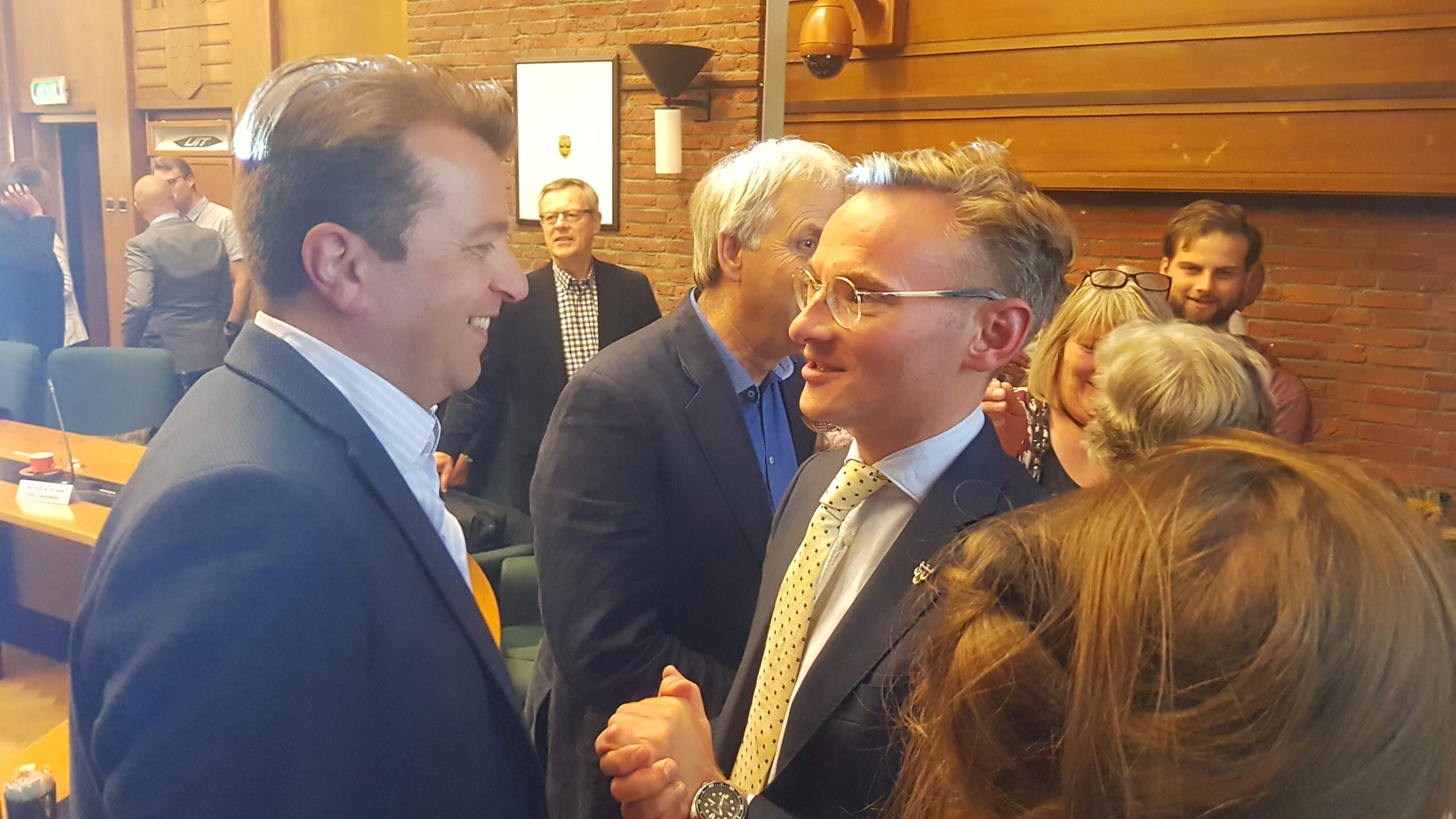 Daan Binnendijk (CDA Voorschoten) en Hans Rasch (ONS Voorschoten) zijn vanavond afgezwaaid als wethouder in Voorschoten. Hun partijen maken geen deel uit van de nieuwe coalitie die bestaat uit VVD, GroenLinks en D66. Voor die drie partijen zijn vanavond ook de voorgedragen wethouders officieel benoemd. Ze kregen de unanieme steun van de raad.