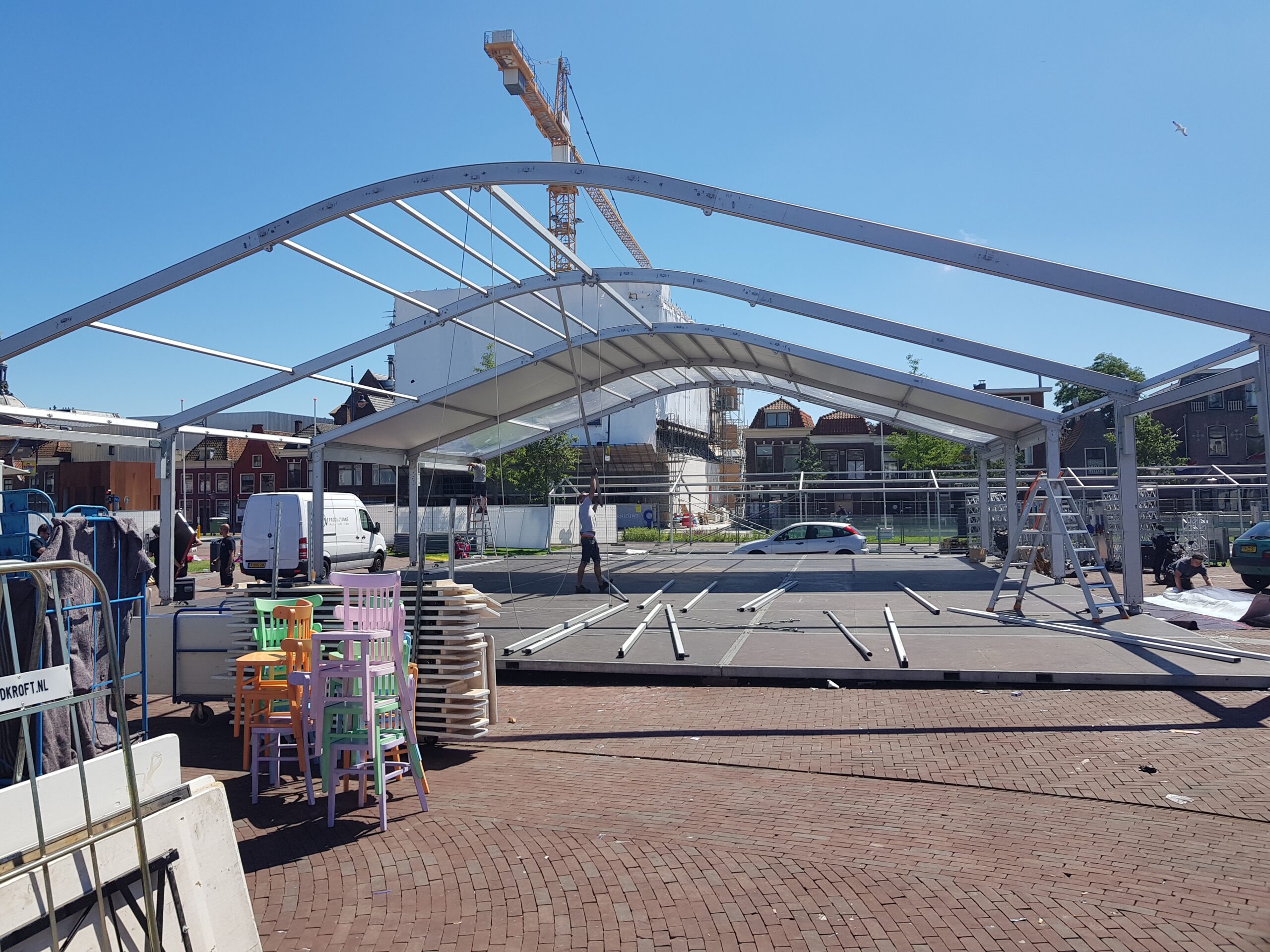 Leiden Culinair op het nieuwe Cultuurplein Lammermarkt is goed bevallen. Dat zegt voorzitter Rob van Marwijk vanmiddag terwijl overal op het plein druk wordt gewerkt om alle bouwwerken weer uit elkaar te halen. “Eigenlijk was het enige minpuntje het weer, het was soms een beetje te koud”, blijkt Van Marwijk tevreden terug.