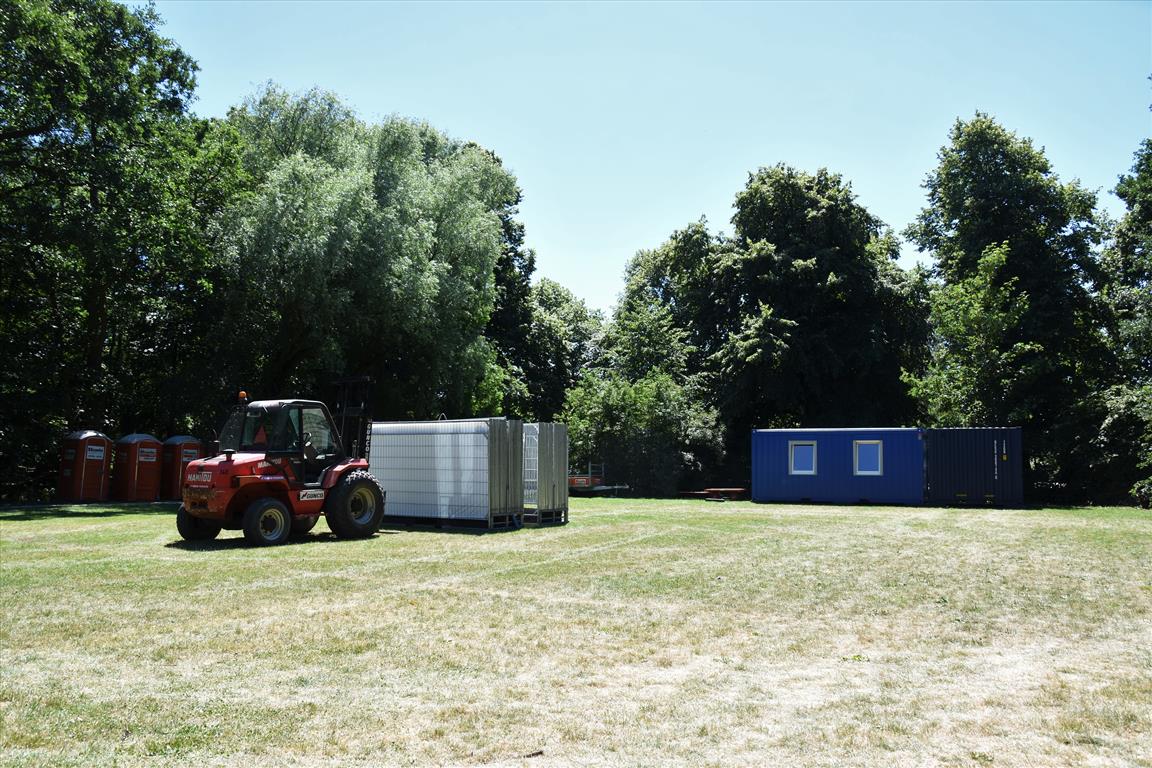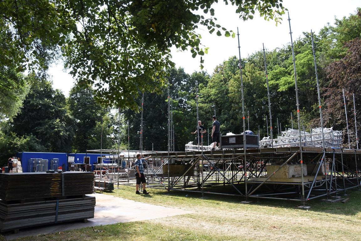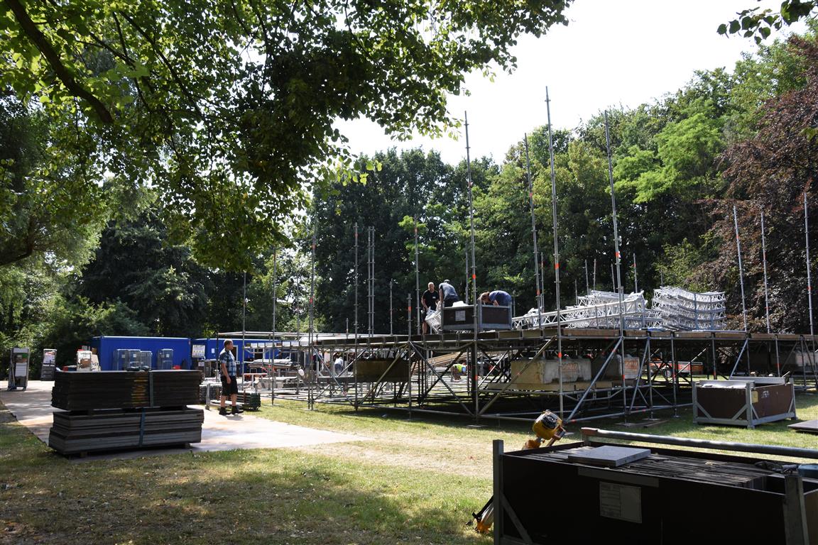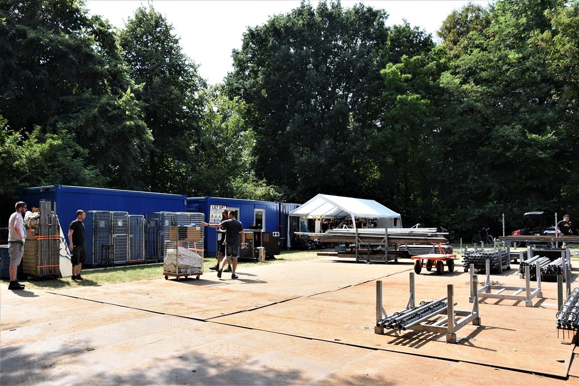 Vanaf dinsdag wordt er hard gewerkt aan de opbouw van het 37e Werfpop festival dat dit weekend plaats vindt in De Leidse Hout. Voor de vrijwilligers een zwaar klusje bij deze temperaturen. Werfpop is met 20-tot 25.000 bezoekers een van de grootste gratis festivals in Nederland. De weersverwachting voor het festival is goed, een lekker zonnetje en niet te heet, kortom een perfect festival weertje.