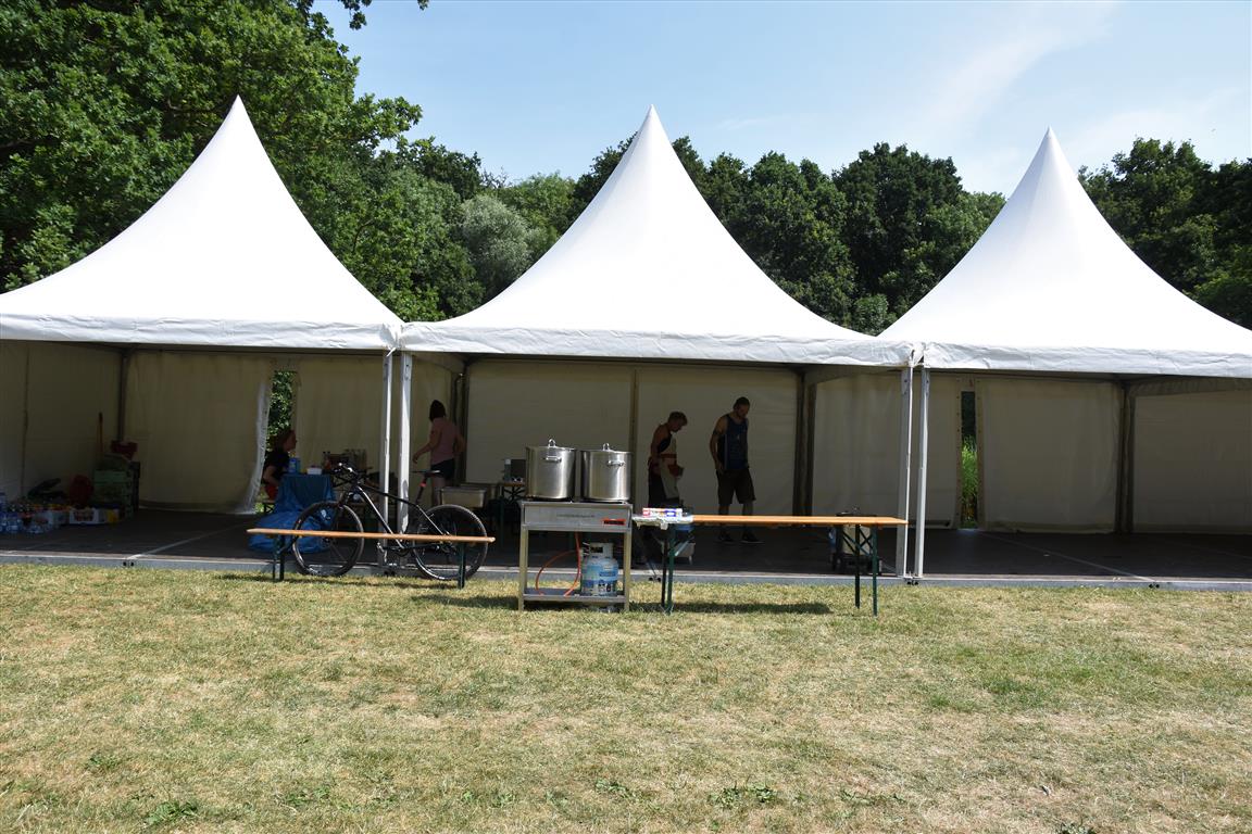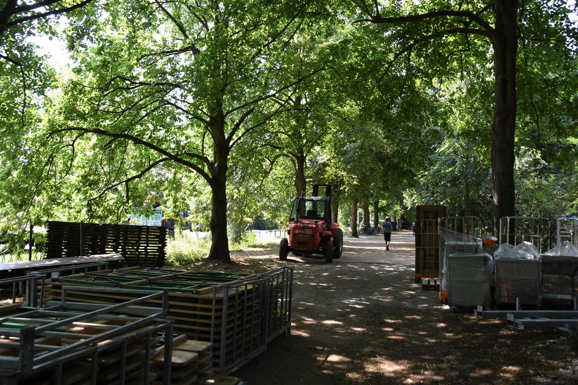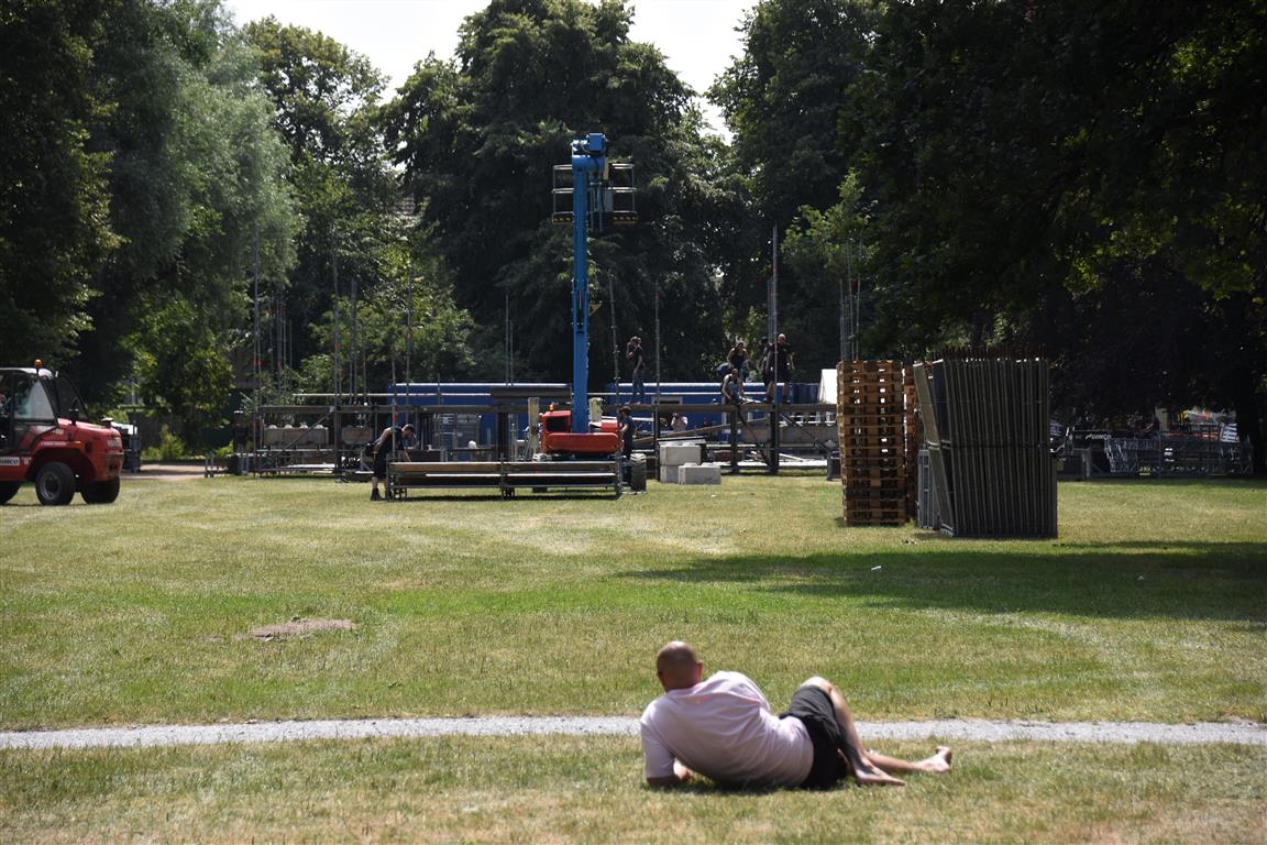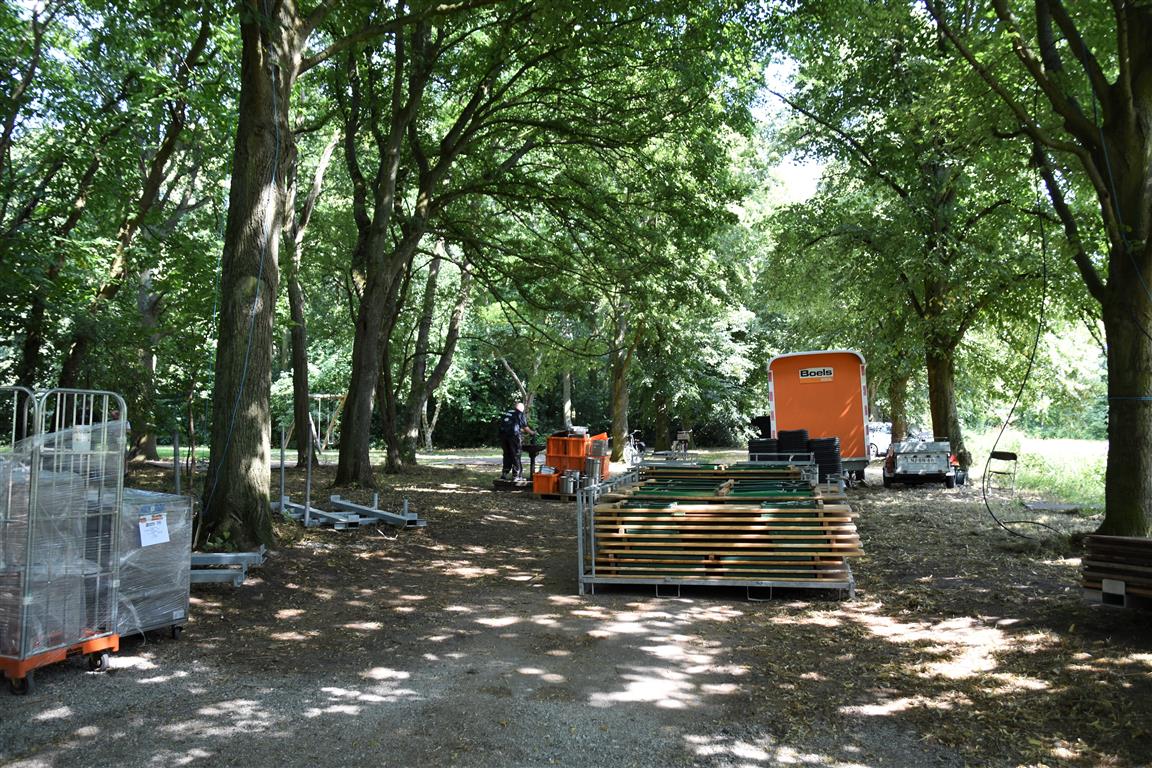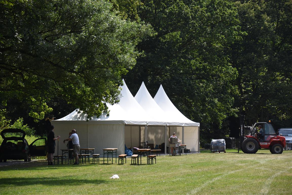 Vanaf dinsdag wordt er hard gewerkt aan de opbouw van het 37e Werfpop festival dat dit weekend plaats vindt in De Leidse Hout. Voor de vrijwilligers een zwaar klusje bij deze temperaturen. Werfpop is met 20-tot 25.000 bezoekers een van de grootste gratis festivals in Nederland. De weersverwachting voor het festival is goed, een lekker zonnetje en niet te heet, kortom een perfect festival weertje.