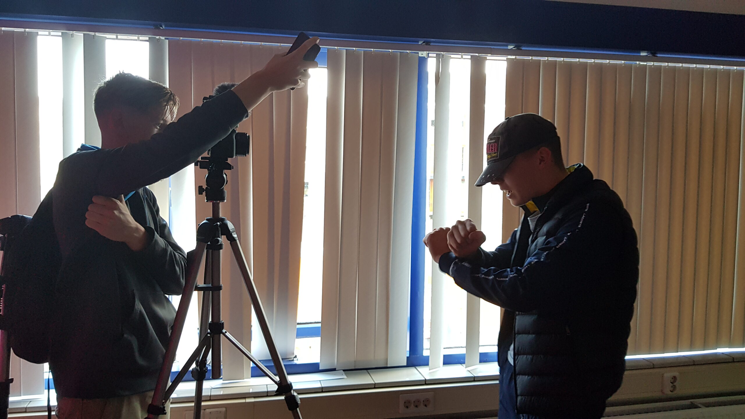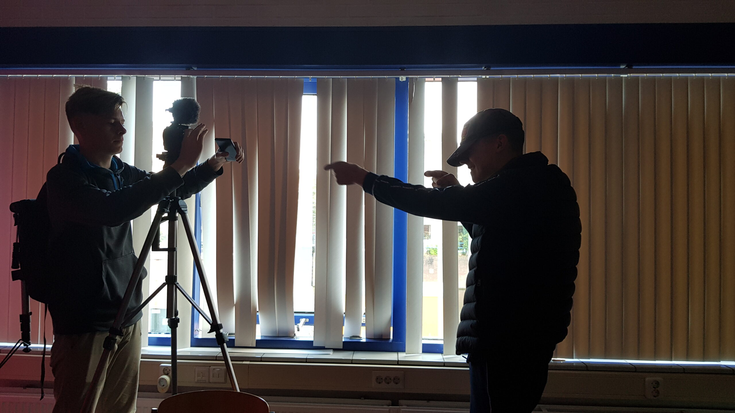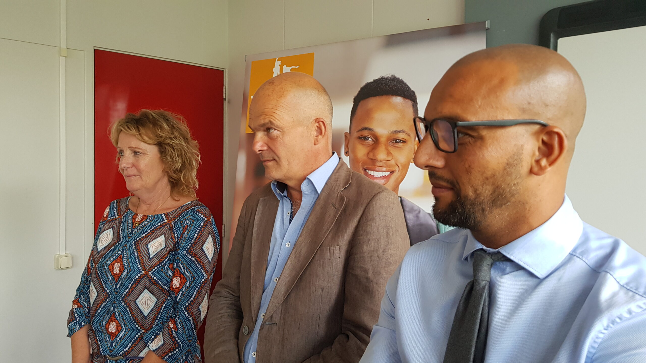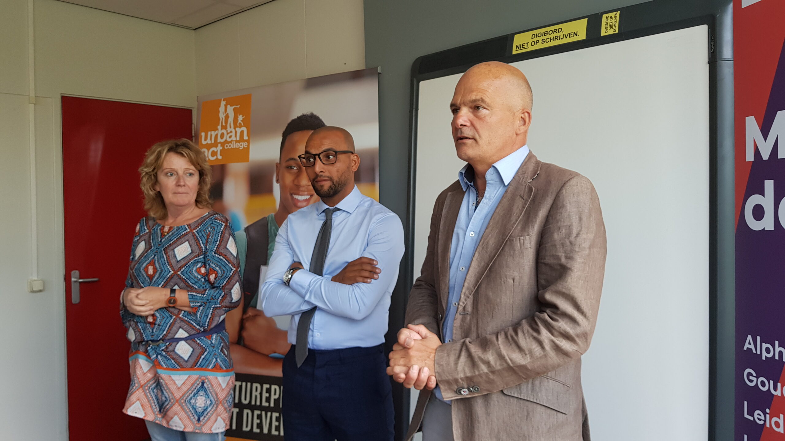 Chris de Waard in gesprek met Daniël en Mohsin die naar het Urban Act College gaan.