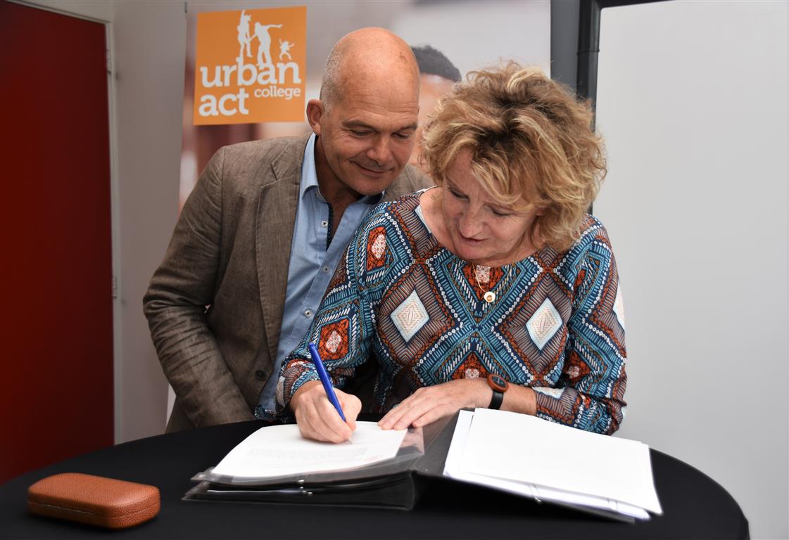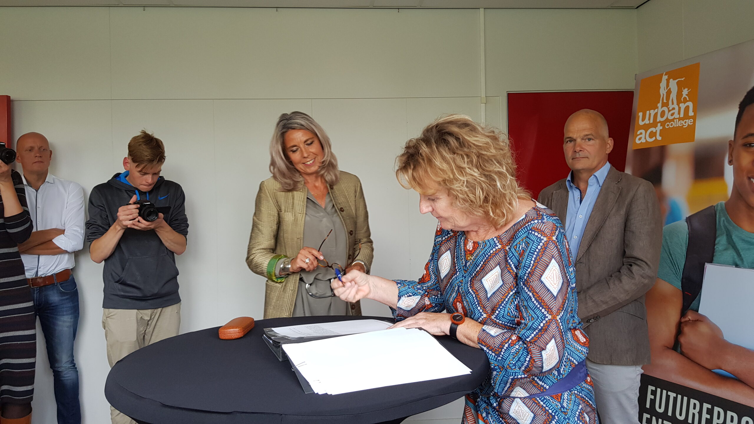 Jongeren die langere tijd van de radar zijn verdwenen en zich niet thuisvoelen in het reguliere onderwijs krijgen bij het Urban Act College de kans om hun verkopersdiploma te halen. Het Urban Act College in Leiden is een samenwerking tussen mboRijnland en Urban Act. Gisteren werd onder toeziend oog van de notaris de samenwerking bekrachtigd met het ondertekenen van de benodigde documenten. De doelstelling is om jaarlijks zo’n veertig jongeren de mbo-opleiding Entree of niveau 2 te laten volgen.