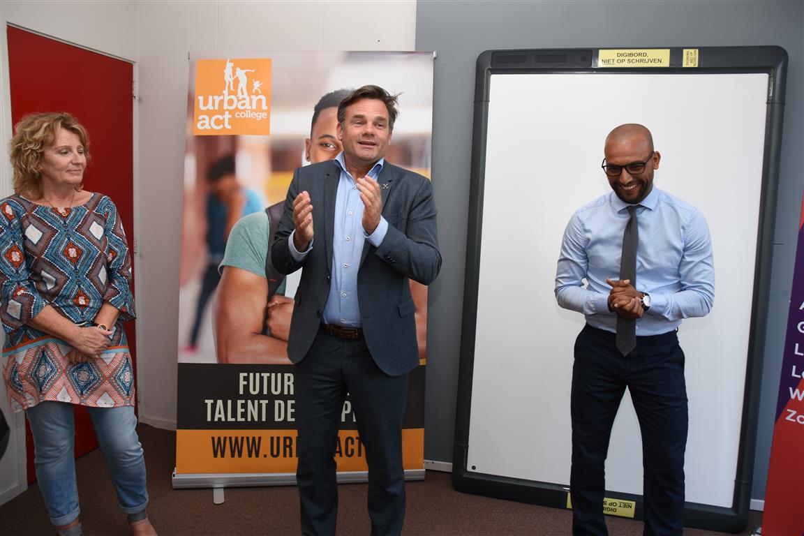 Chris de Waard in gesprek met operationeel directeur Houssin Bezzai over het Urban Act College.