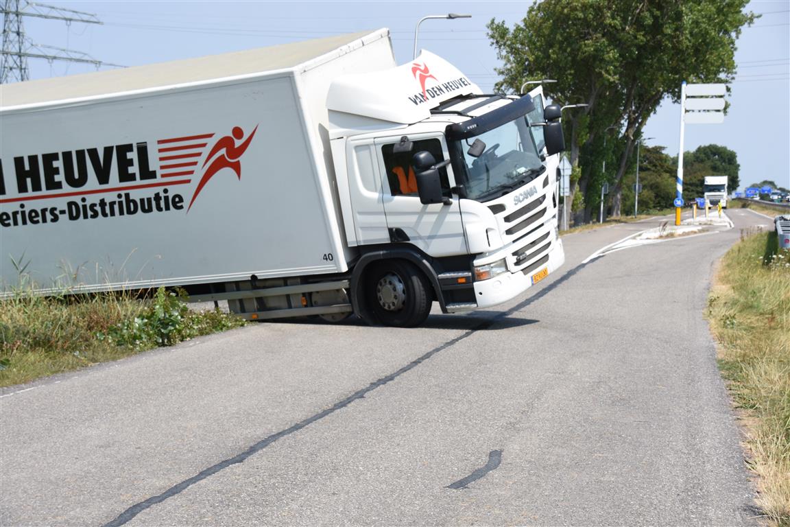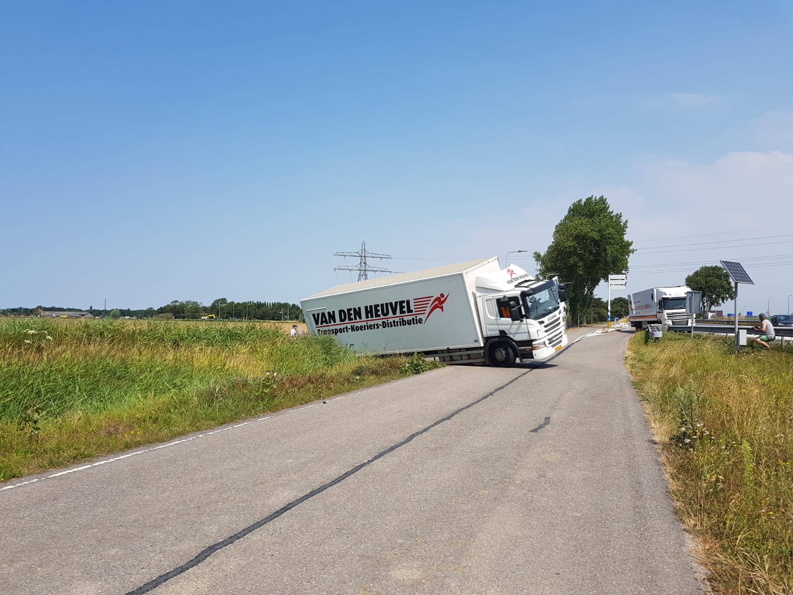 Een vrachtwagen is vanmiddag rond 14.30 vast komen te zitten in een greppel op de Verlengde Vinkweg tussen Oegstgeest en Rijnsburg. Bij het oprijden van ventweg naast de A44 om richting Rijnsburg te gaan, werd de bocht te kort genomen. De bestuurder wacht op een takelwagen om zijn voertuig te bevrijden. Tijdens het takelen is de ventweg enige tijd afgesloten geweest.