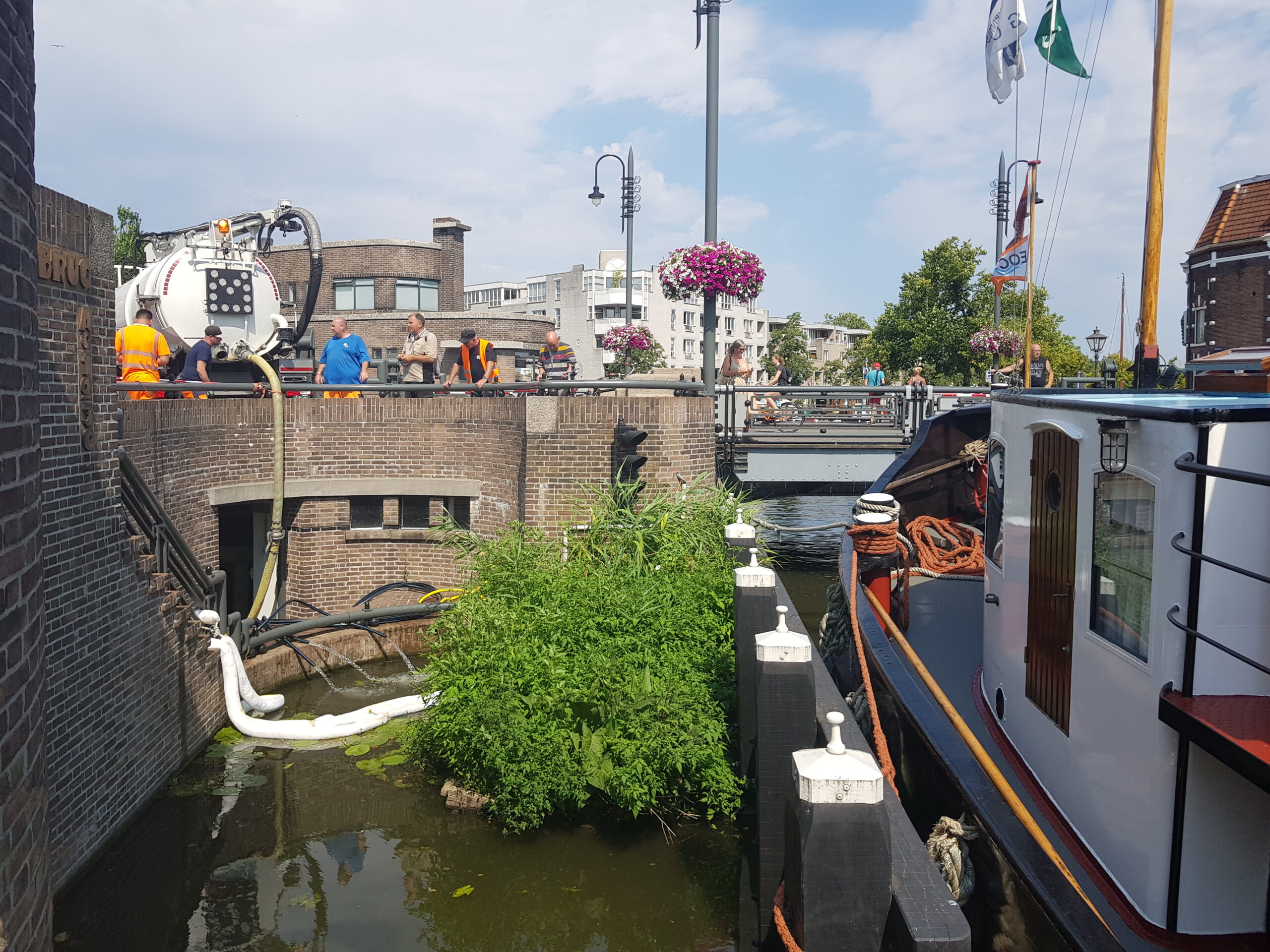 De brug wordt niet vaak bediend, maar toevallig vanmiddag wel om deelnemers aan Sail Leiden door te laten. Of de bediening van de brug nog wel werkt, wordt duidelijk als het water is weggepompt. Medewerkers van de gemeente Leiden zijn momenteel bezig om het water uit de kelder te zuigen. In geval van nood kan de brug overigens ook met de hand bediend worden.