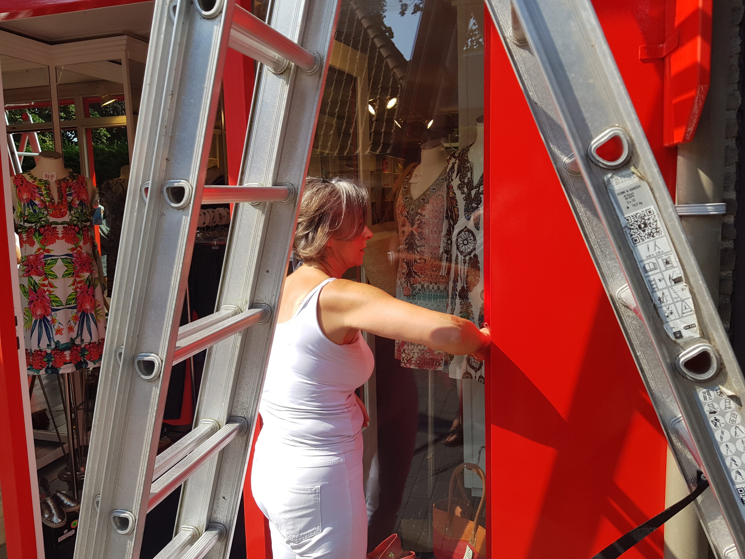 Chris de Waard sprak mede-eigenaresse José Cox over de schilderbeurt die de pui deze dagen krijgt. Rood wordt weer wit.