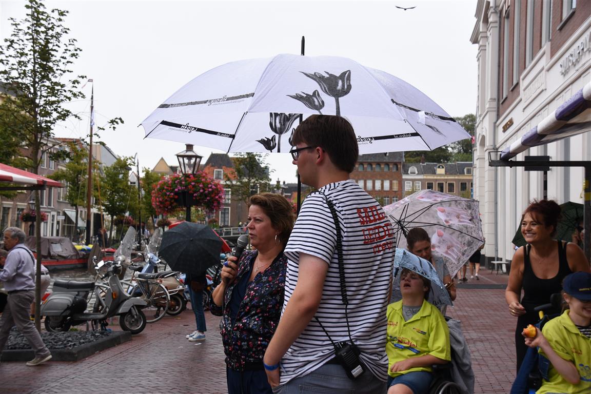 Plastic Soup Surfer Merijn Tinga was de tweede veilingmeester van de dag en de VVD-raadslid Juliette Gilissen had de zware taak om in de regen de laatste kratten leeg te krijgen. Dat lukte met veel enthousiaste van alle betrokkenen heel aardig. Toen de cheque werd overhandigd, kon het feest voor de kinderen van Stichting Nadja beginnen.