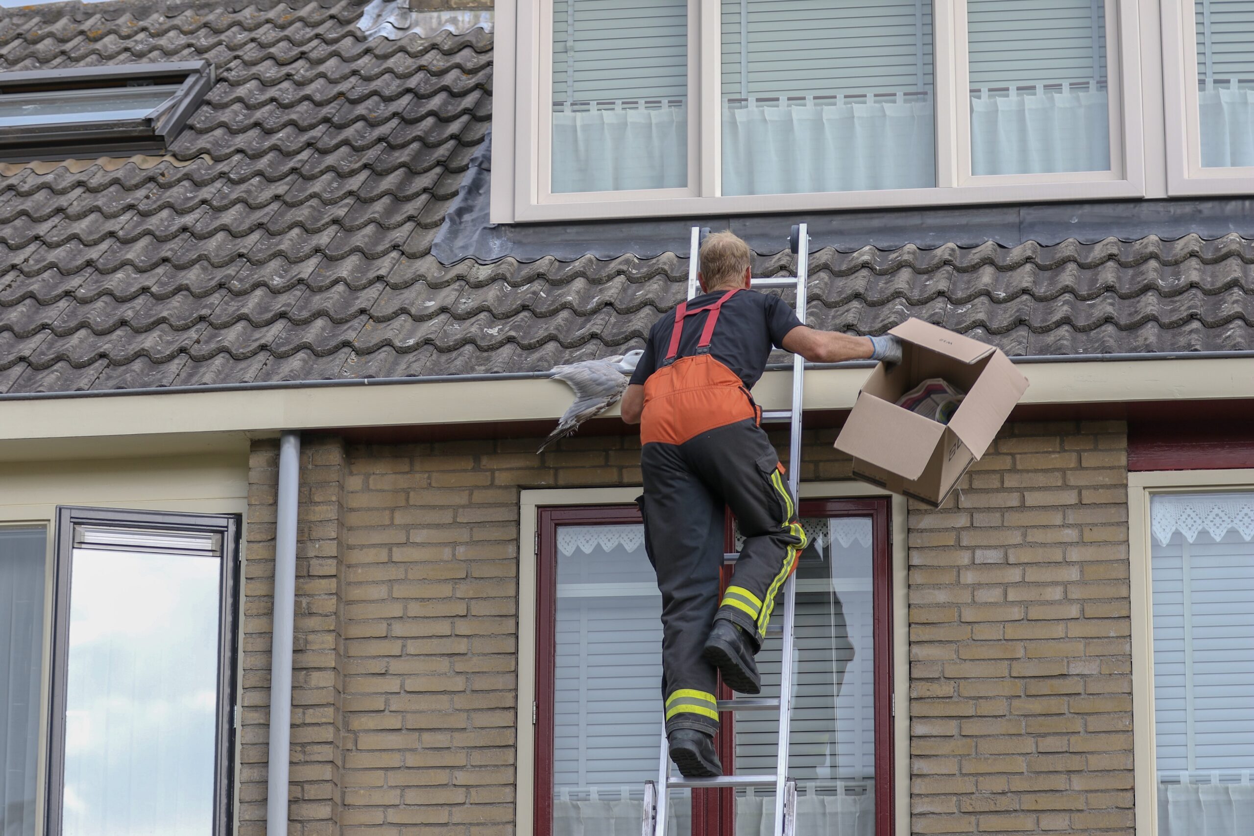Een gewonde meeuw is vanmorgen door de brandweer uit de dakgoot gehaald van een woning in de Servatiusstraat in Zoeterwoude. Volgens de bewoner is het dier waarschijnlijk gewond geraakt aan de vleugel tijdens een gevecht met eksters. De bewoner heeft zich over de meeuw ontfermd in afwachting van de dierenambulance.