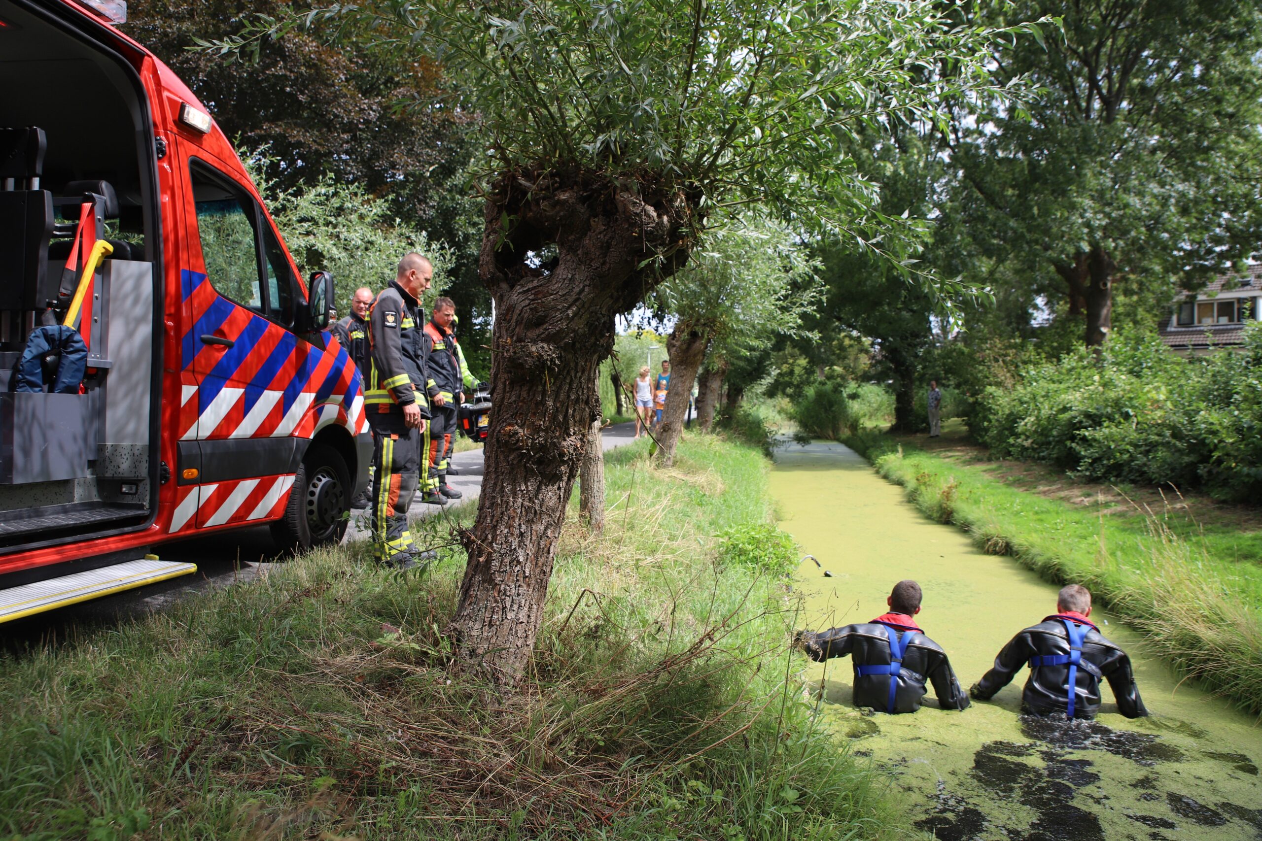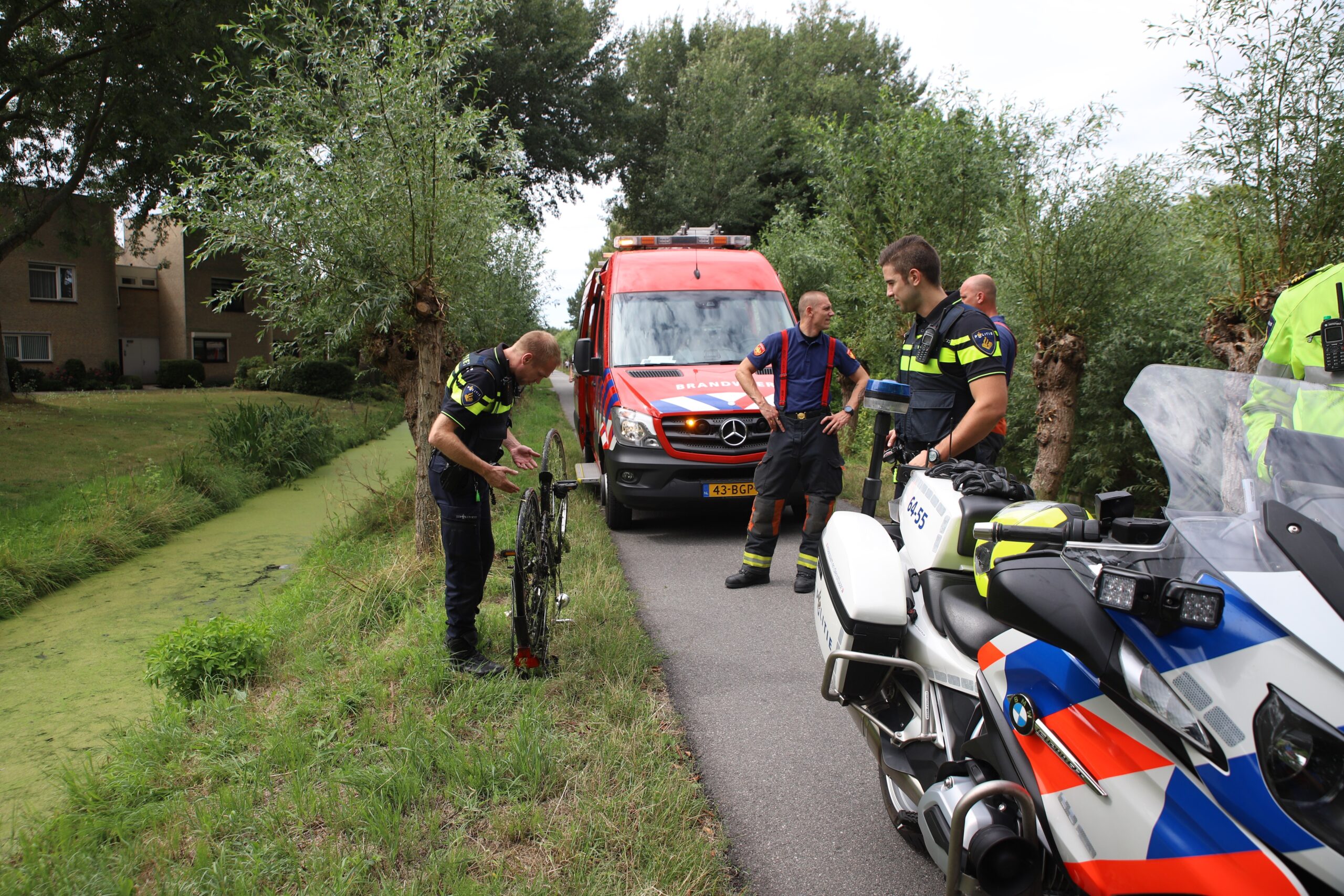 Duikers van de brandweer in Leiden hebben gistermiddag de sloot langs de Broekweg in de Merenwijk doorzocht. Tussen de middag zagen voorbijgangers daar een fiets in het water liggen en belden dat door. Voor de zekerheid werd door de politie de brandweer ingeschakeld om uit te sluiten dat er iemand in het water lag. Er is niets gevonden. Van wie de fiets is, is nog niet bekend.