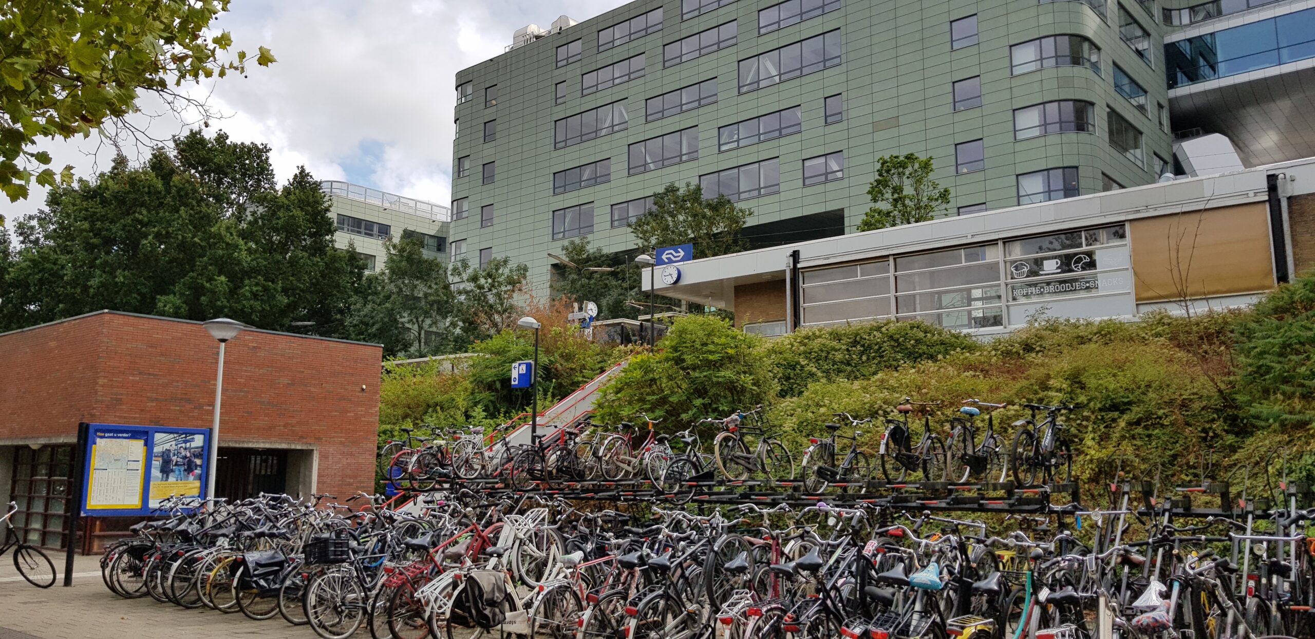 Aan de hoeveelheid fietsen bij station Leiden Lammenschans zou je het niet zeggen, maar er rijden toch echt geen treinen tussen Leiden en Alphen aan den Rijn. Het station is dicht en reizigers worden met bussen vervoerd. Tot en met donderdag werkt Prorail tussen Leiden en Alphen aan de Rijn aan het spoor. Er wordt een hogesneldheidswissel vervangen en ook enkele sporen worden vernieuwd.
