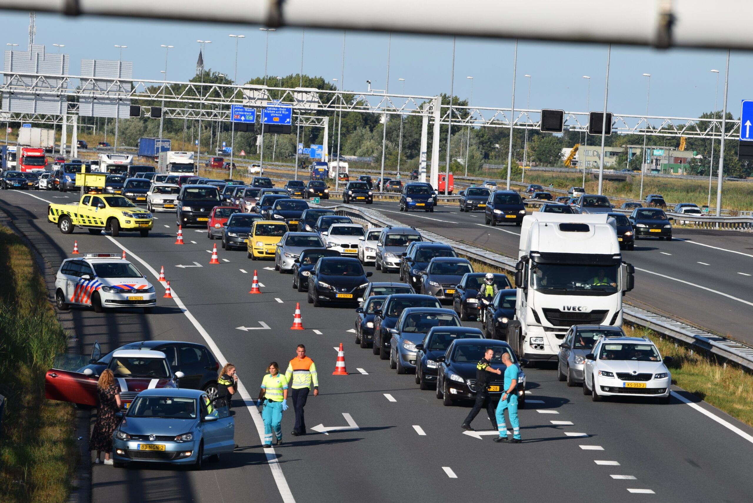 Op het moment dat de twee auto’s op de vluchtstrook stonden om de aanrijding af te handelen, deden zich op de parallelbaan kort na elkaar nog twee aanrijdingen voor. Daarbij ontstond alleen materiële schade.
