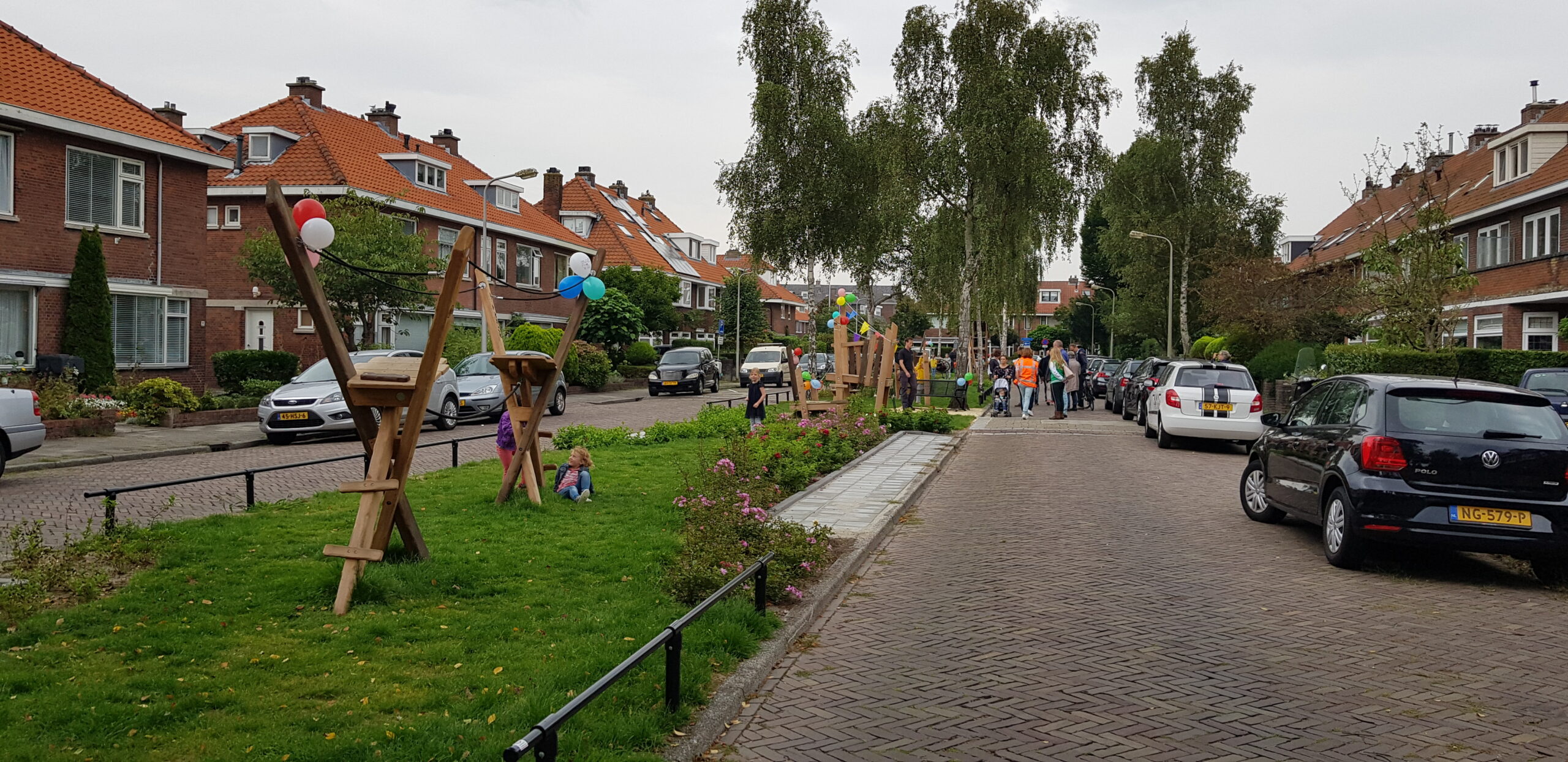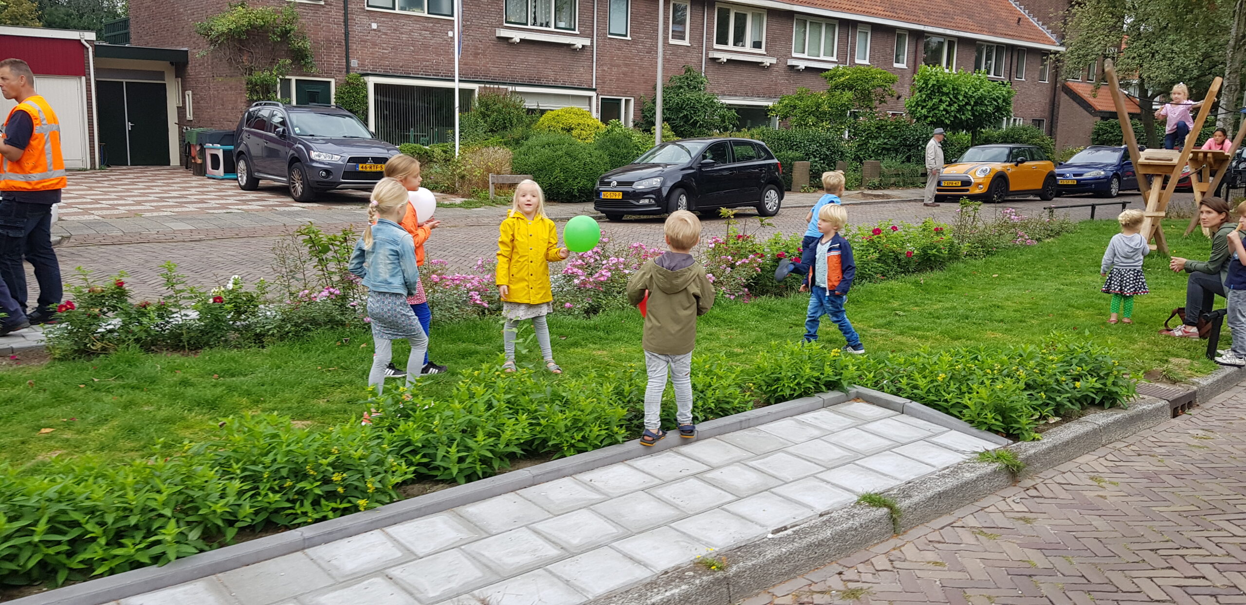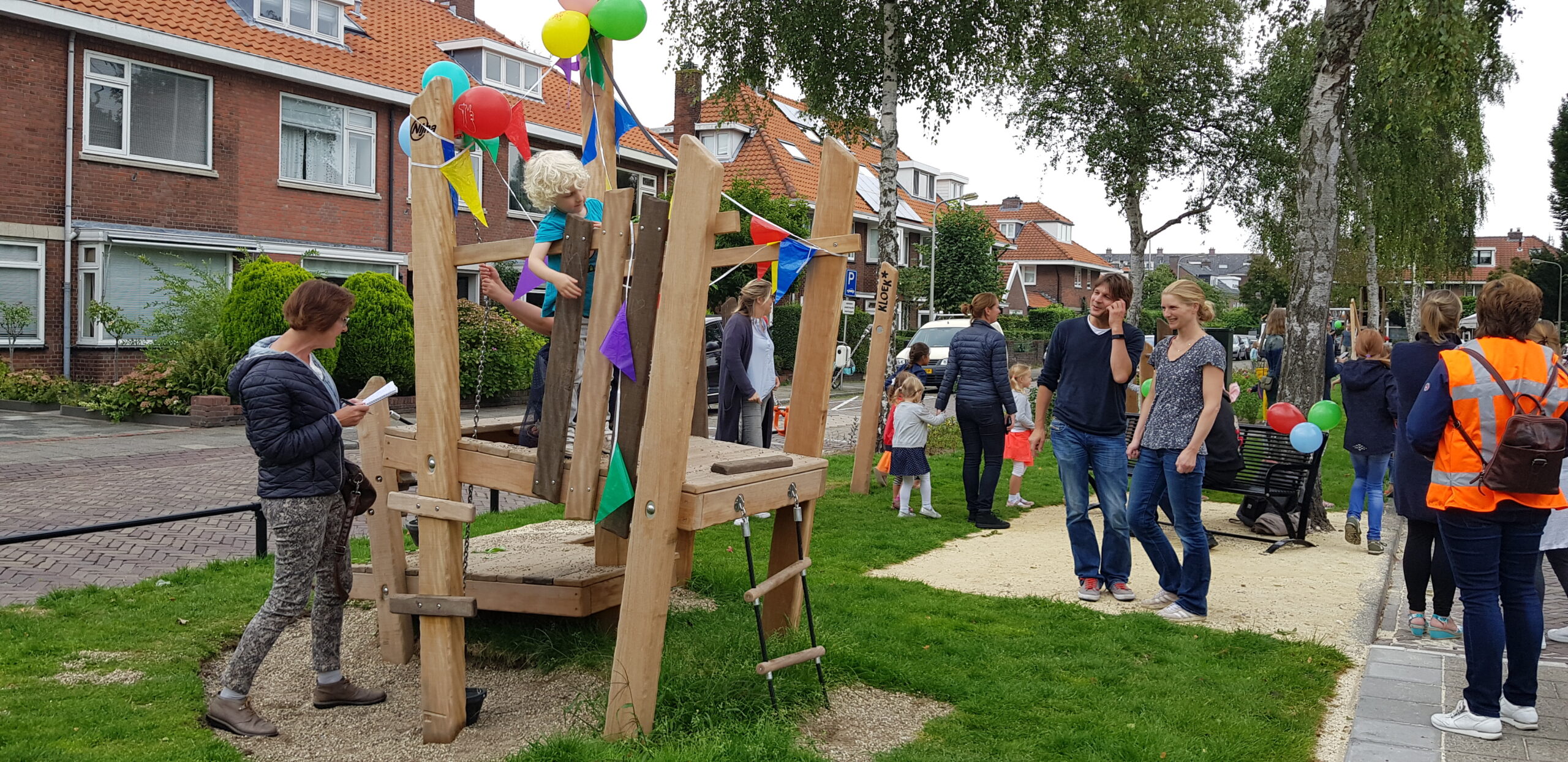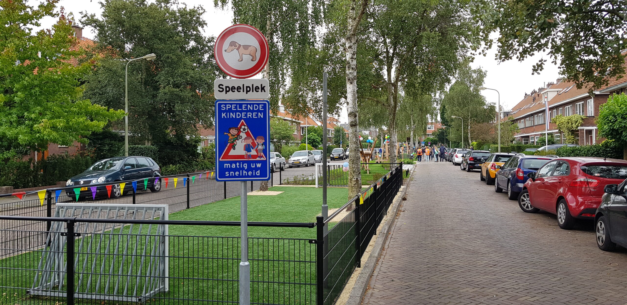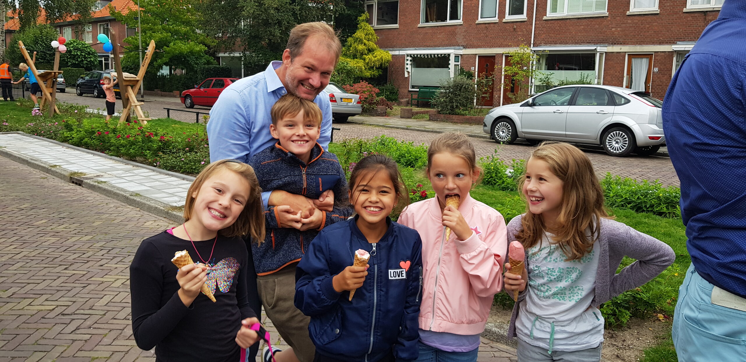 De wat oudere kinderen zijn vooral blij dat er nu niet meer alleen speeltoestellen zijn voor de allerkleinsten. Een familieschommel stond hoog op hun verlanglijstje en die is er nu ook. Aan weerszijden van de bespeelbare groenstrook zijn nu veldjes aangelegd voor voetbal en hockey. Met een hek er omheen, zodat kinderen niet meer zomaar de straat op kunnen lopen als er een bal van het veldje wordt getrapt. Een zorg minder voor de ouders die in de oude situatie nog weleens met de zenuwen in het lijf zaten.