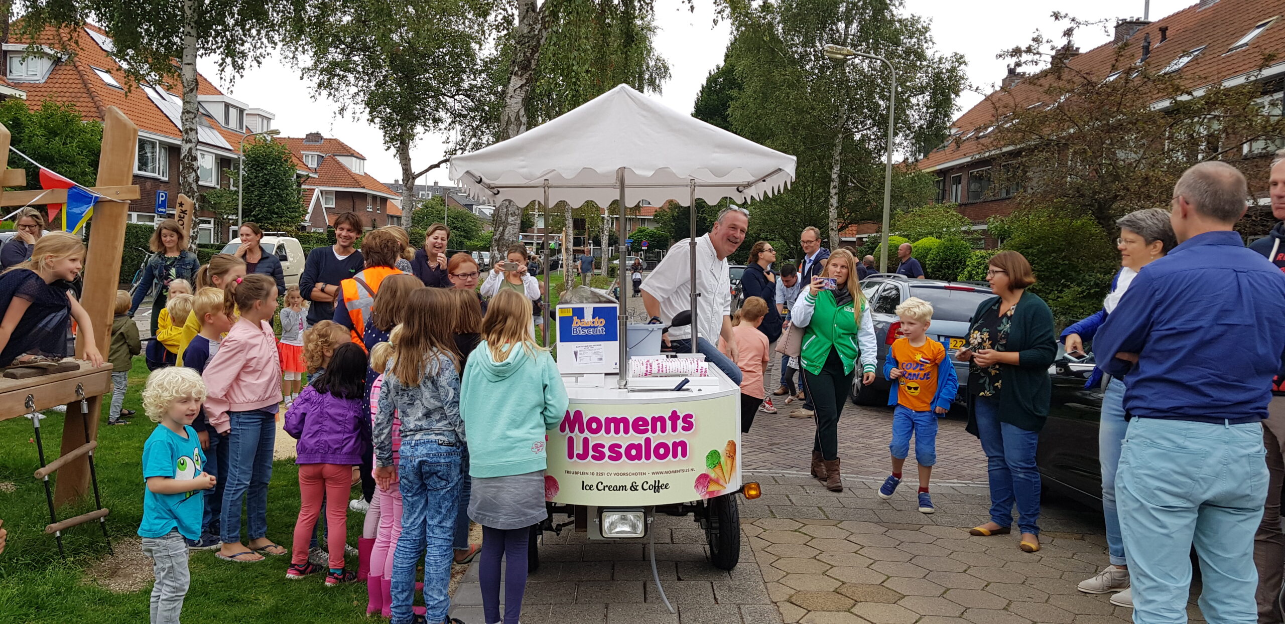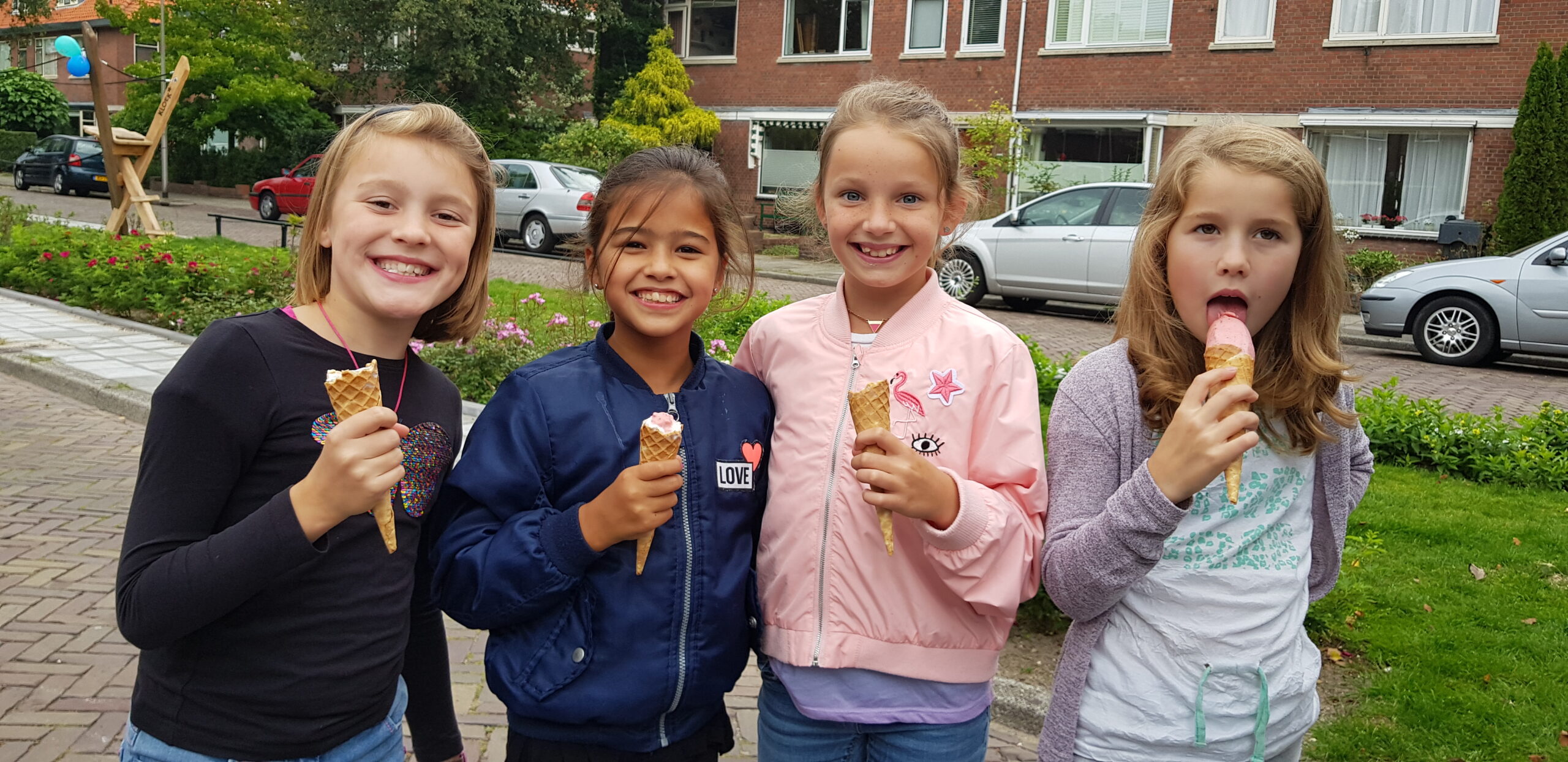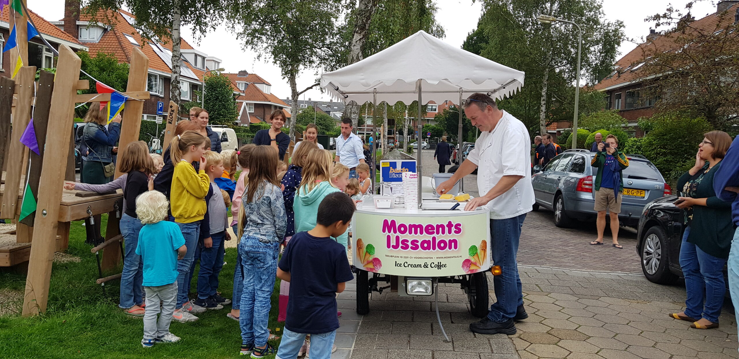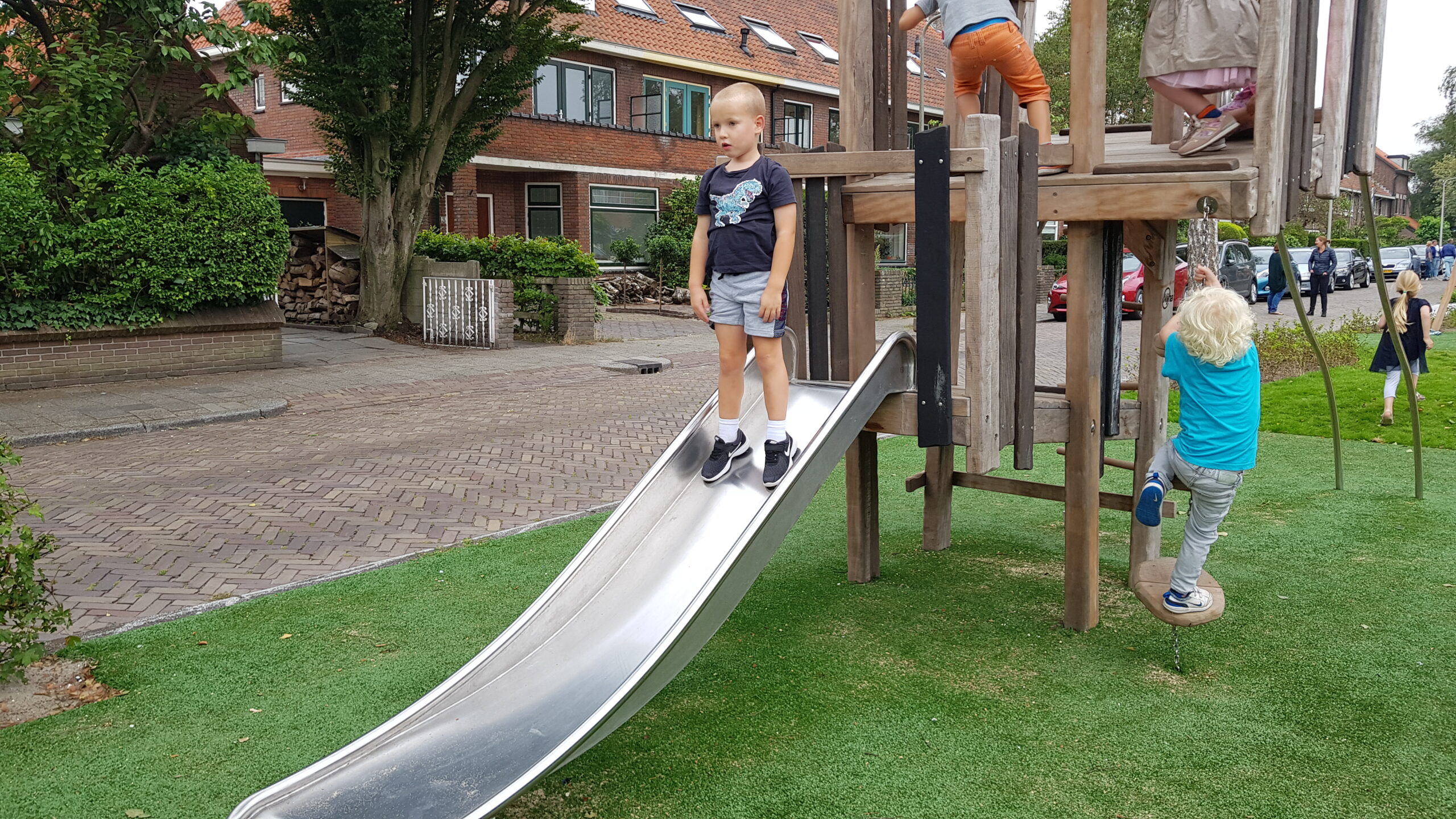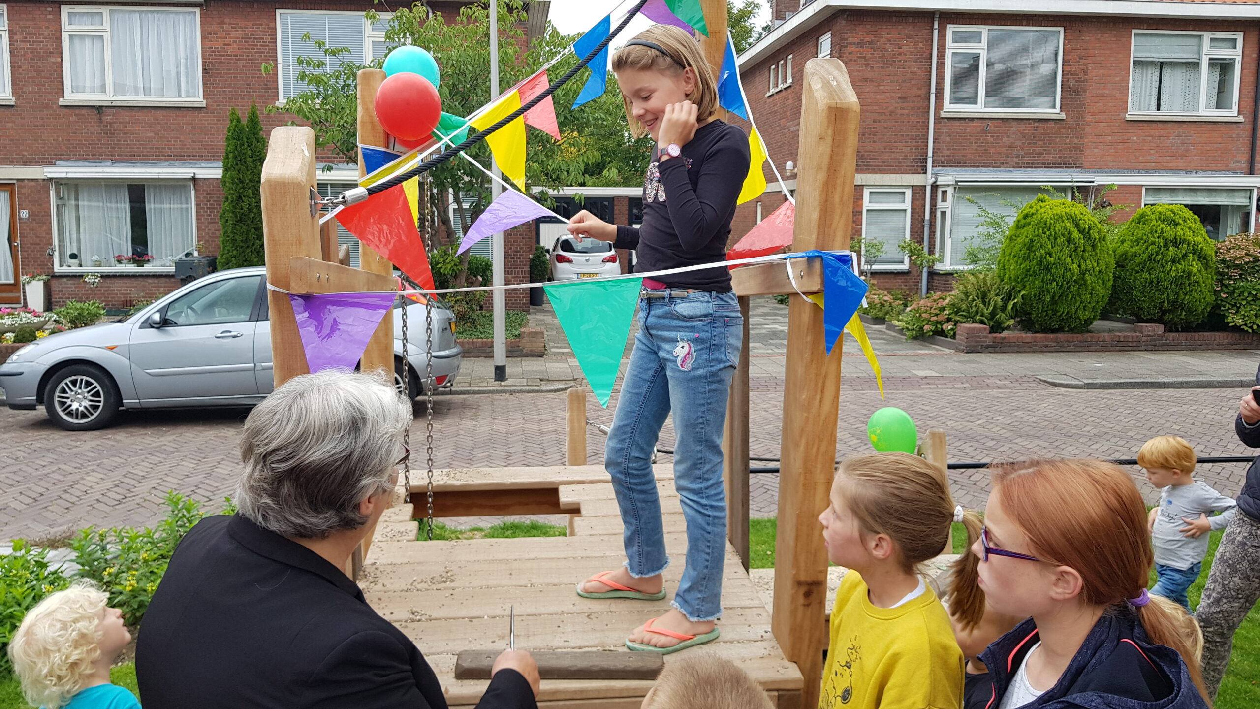 De wat oudere kinderen zijn vooral blij dat er nu niet meer alleen speeltoestellen zijn voor de allerkleinsten. Een familieschommel stond hoog op hun verlanglijstje en die is er nu ook. Aan weerszijden van de bespeelbare groenstrook zijn nu veldjes aangelegd voor voetbal en hockey. Met een hek er omheen, zodat kinderen niet meer zomaar de straat op kunnen lopen als er een bal van het veldje wordt getrapt. Een zorg minder voor de ouders die in de oude situatie nog weleens met de zenuwen in het lijf zaten.