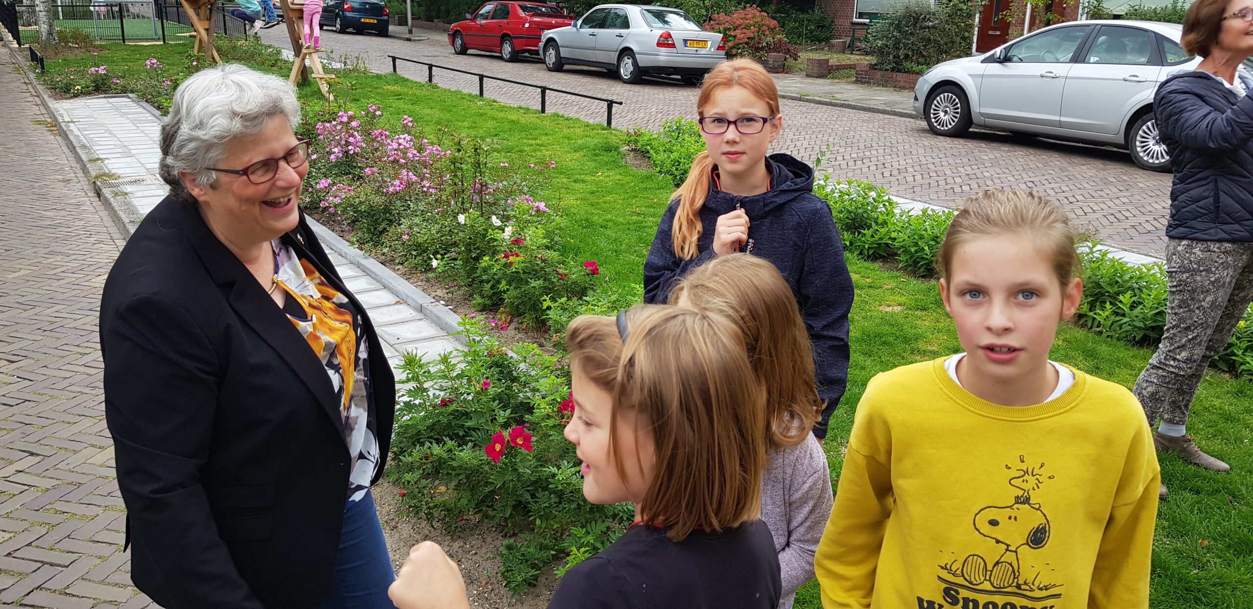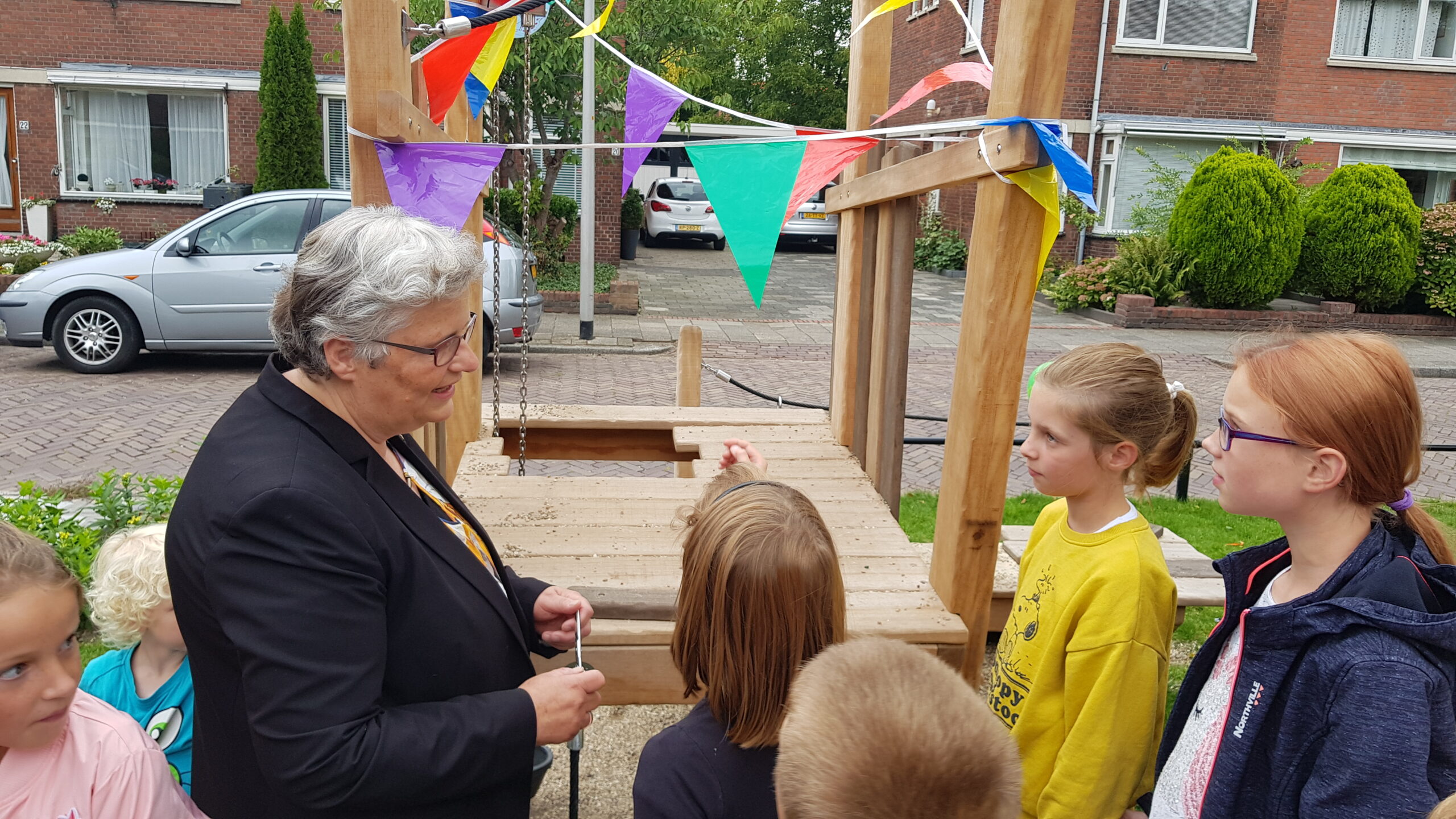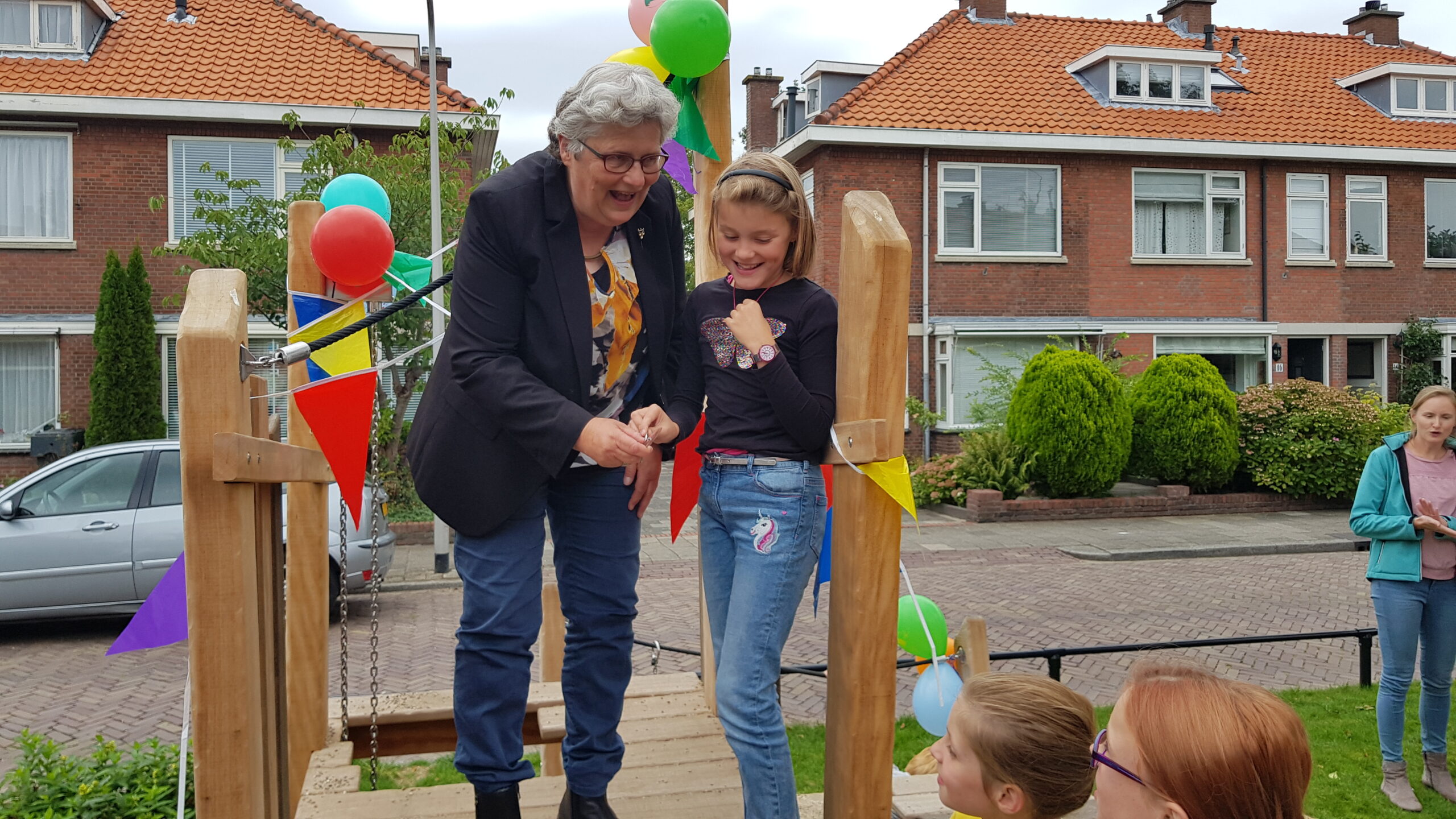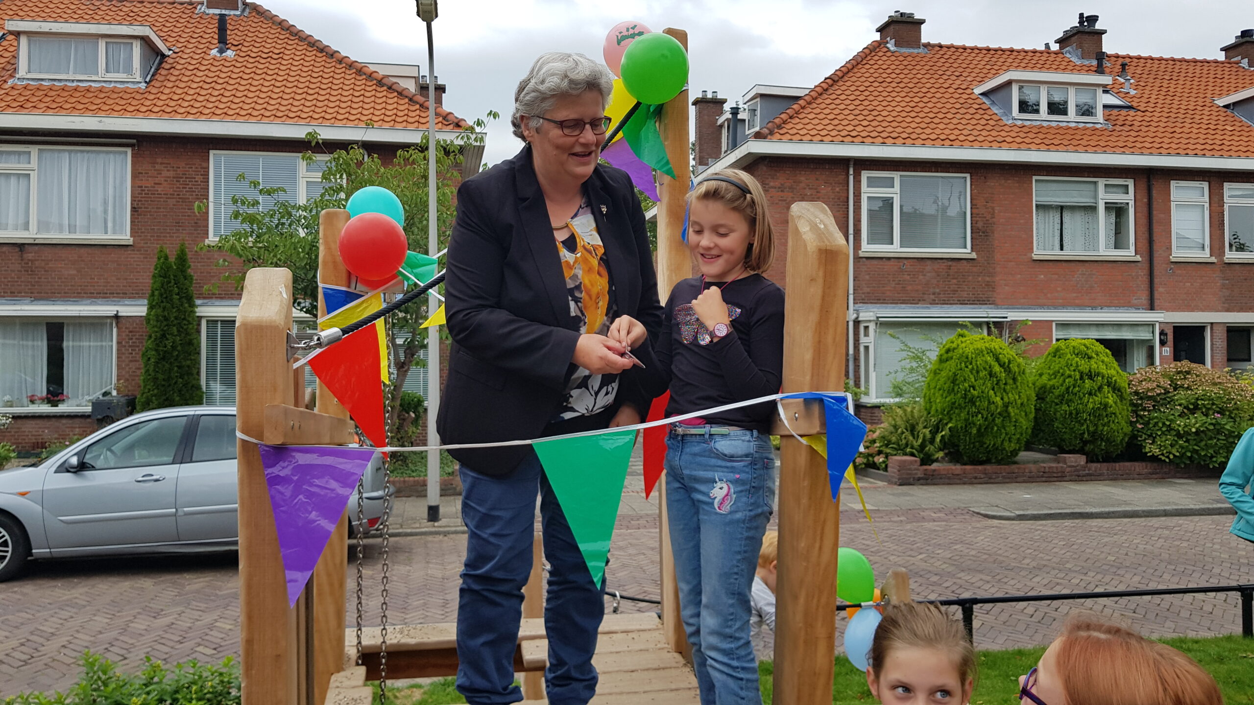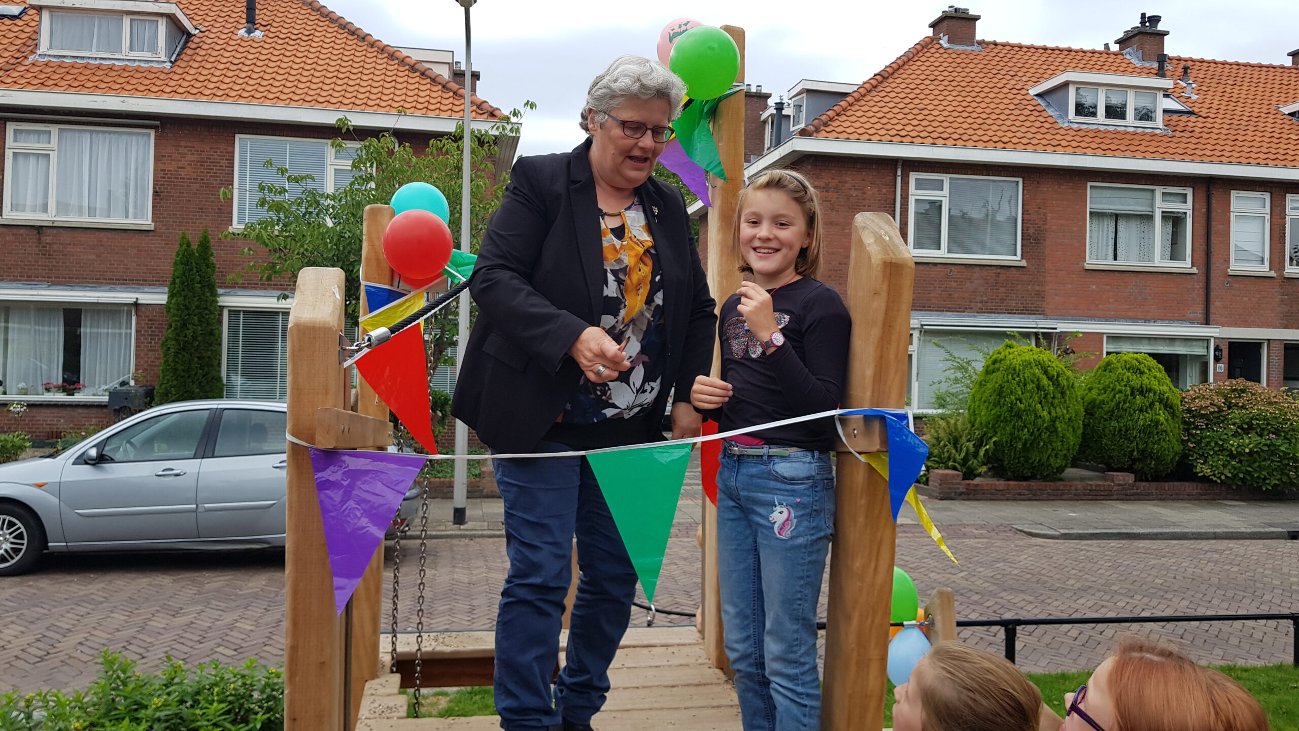 De compleet vernieuwde speelplek in het midden van de Willem de Zwijgerlaan in Voorschoten is vanmiddag officieel in gebruik genomen. Wethouder Monique Lamers sprak de kinderen en hun ouders toe. Die hebben volop mee kunnen praten over het vervangen van het verouderde speeltuintje tussen de rijbanen.