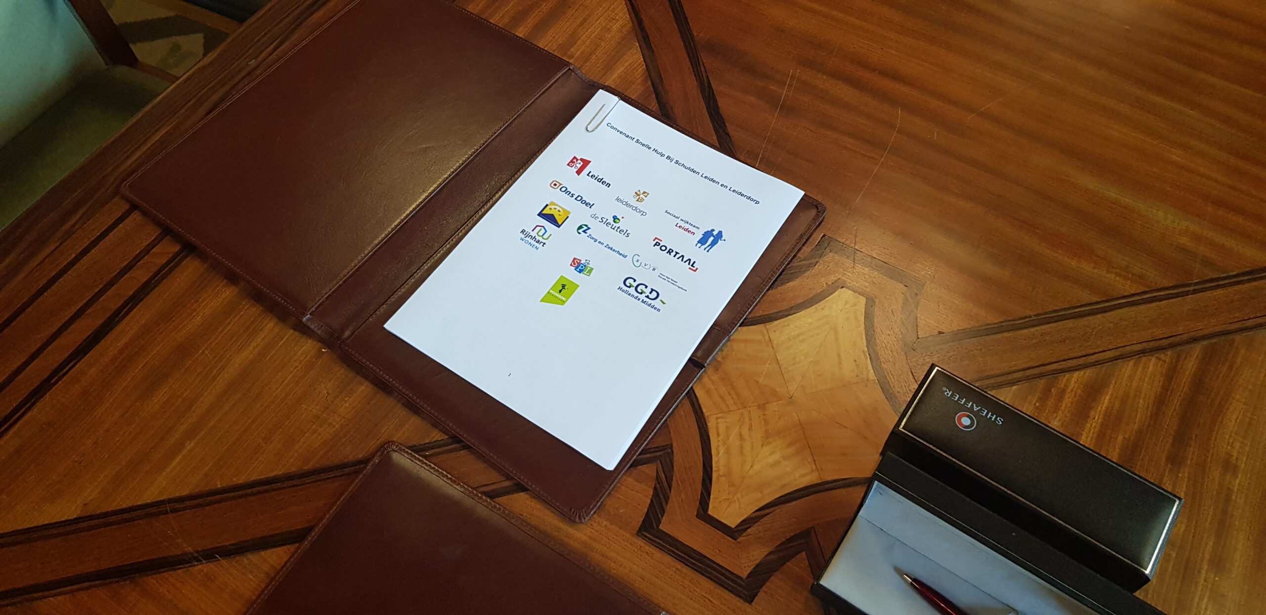 Vanmiddag is in het Leidse stadhuis een convenant getekend door een hele trits partijen, waaronder de gemeenten Leiden en Leiderdorp, om sneller in actie te komen als wordt gesignaleerd dat mensen in de financiële problemen raken.