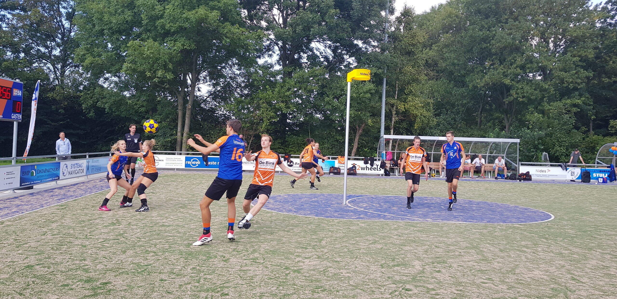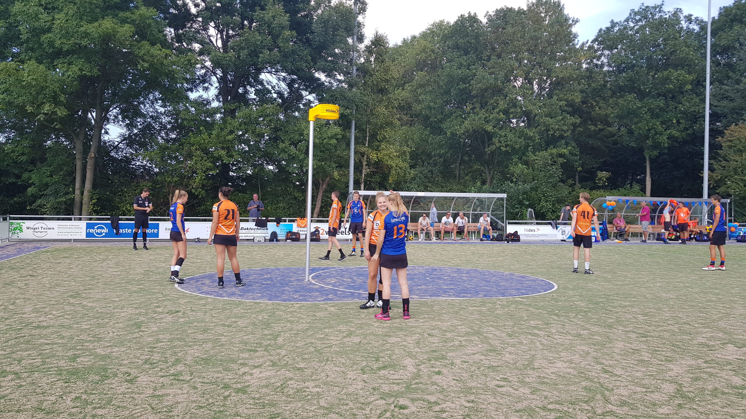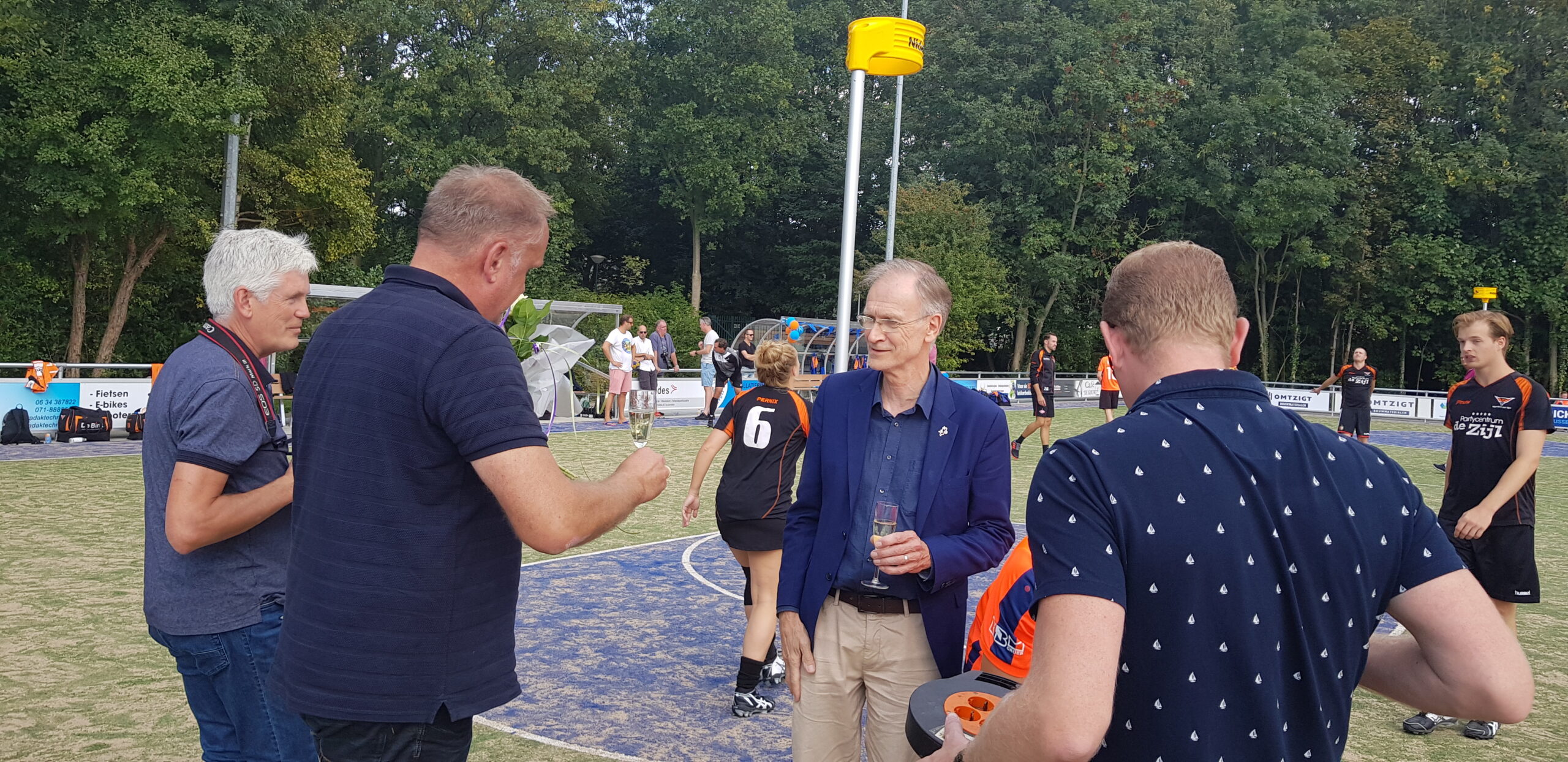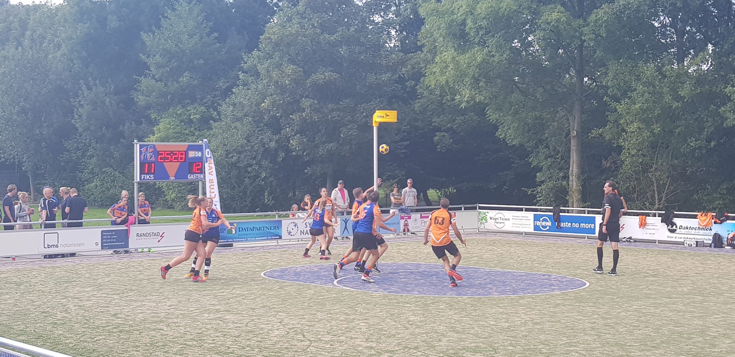 Met een vriendschappelijke wedstrijd tegen het Leidse Pernix heeft de Christelijke Korfbalvereniging Fiks afgelopen zaterdagmiddag de nieuwe kunstgrasvelden op Sportpark de Voscuyl in gebruik genomen. Met het rechtop zetten van de korf en het heffen van de glazen met bubbels werd het moment door voorzitter Sven de Ruijter en sportwethouder Jan Nieuwenhuis gemarkeerd. De oefenwedstrijd werd overigens nipt gewonnen door de gastploeg: 22-24.
