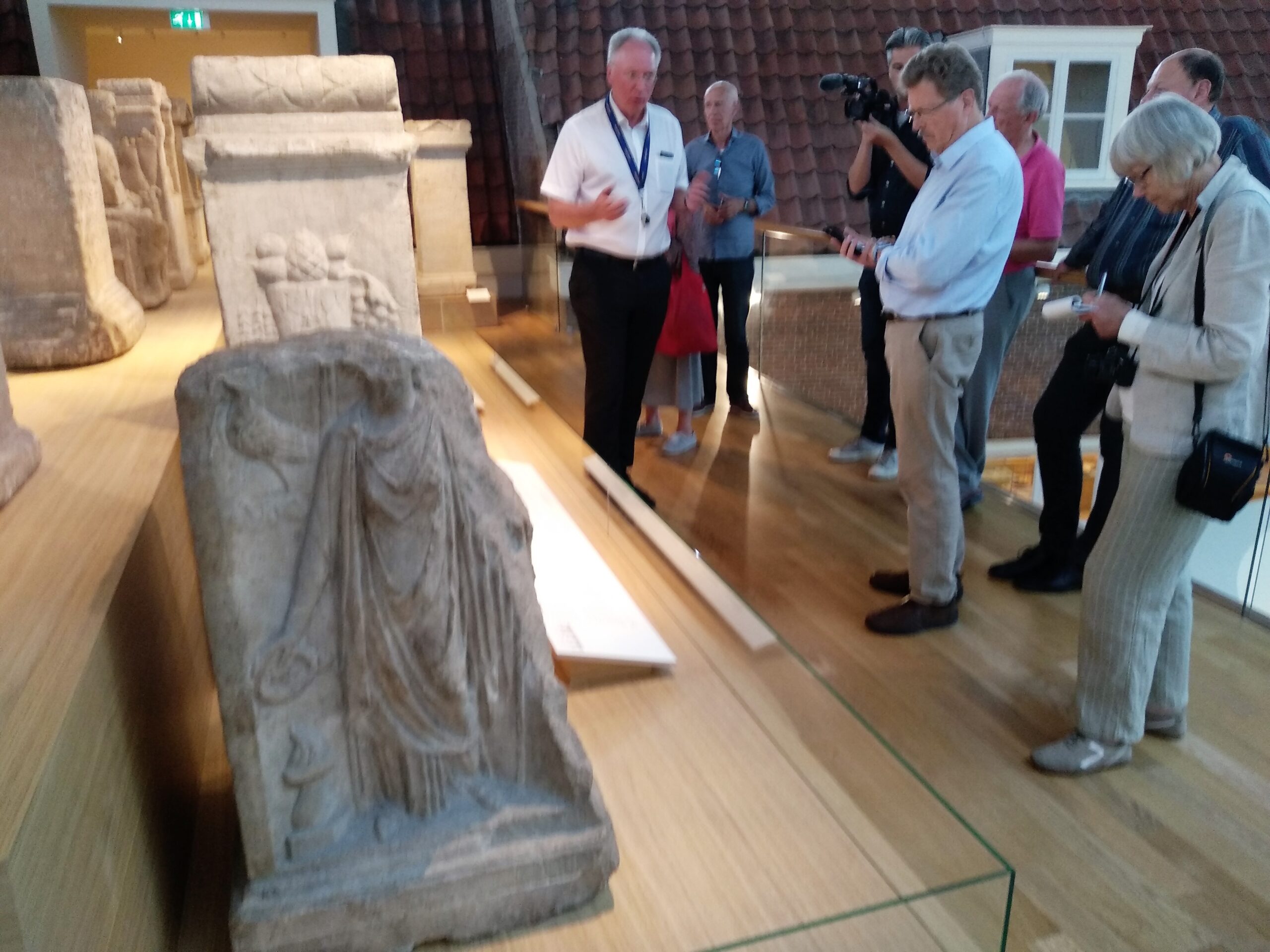 Er was een grens, de Limes. Daar stonden forten en waren legerplaatsen die het wegennetwerk beheersten. Maar zoals RMO terecht met vraagtekens opmerkt: wat dat een ‘ijzeren gordijn’? Nee. want je ziet de bewijzen liggen. Stenen altaren van schippers die via Friesland – dus over de grens heen – voeren, Friezen die cultuur-elementen van de Romeinen overnamen, Romeins geld dat in het ‘buitenland’ is gevonden. De Romeinen bezetten niet klakkeloos, maar namen aan gebruiken ook over wat ze konden gebruiken. De Romeinse mijlpaal – met daarop ‘nog zeven mijl naar Voorburg’- betekent vooral dat de wereld letterlijk in kaart werd gebracht, niet afgesloten.