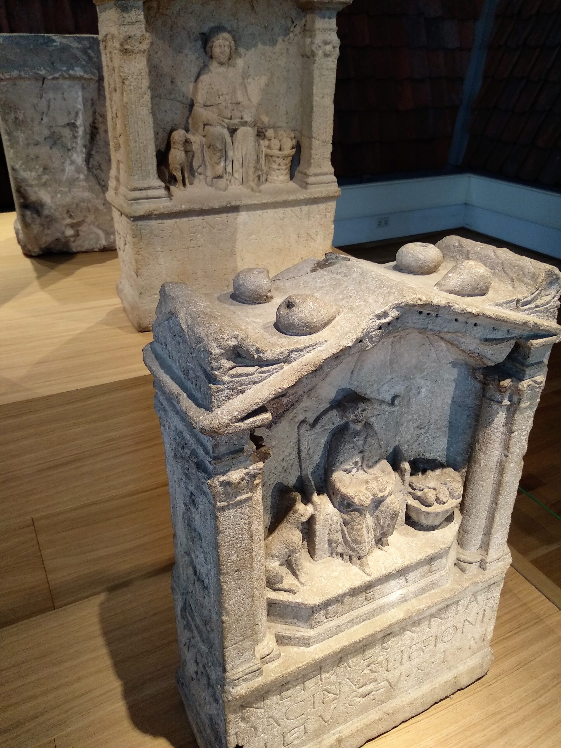 Je proberen voor te stellen hoe het was. Dat er een aantal stenen altaren staat voor goden en godinnen die heel lokaal werden aanbeden en waarvan naast dat ene altaar nergens anders, oog niet op schrift, gewag wordt gemaakt. Zundert blijkt dan een eigen ‘godheid’ te hebben gehad en in Zeeland werd Nehalennia vereerd. En die laatste heeft dan ook nog meerdere altaren met meerdere schrijfwijzen. En wat te denken van een altaartje even verderop met drie godinnen en een ‘verkeerde’ tekst? Hoe of waarom is dat zo gekomen?