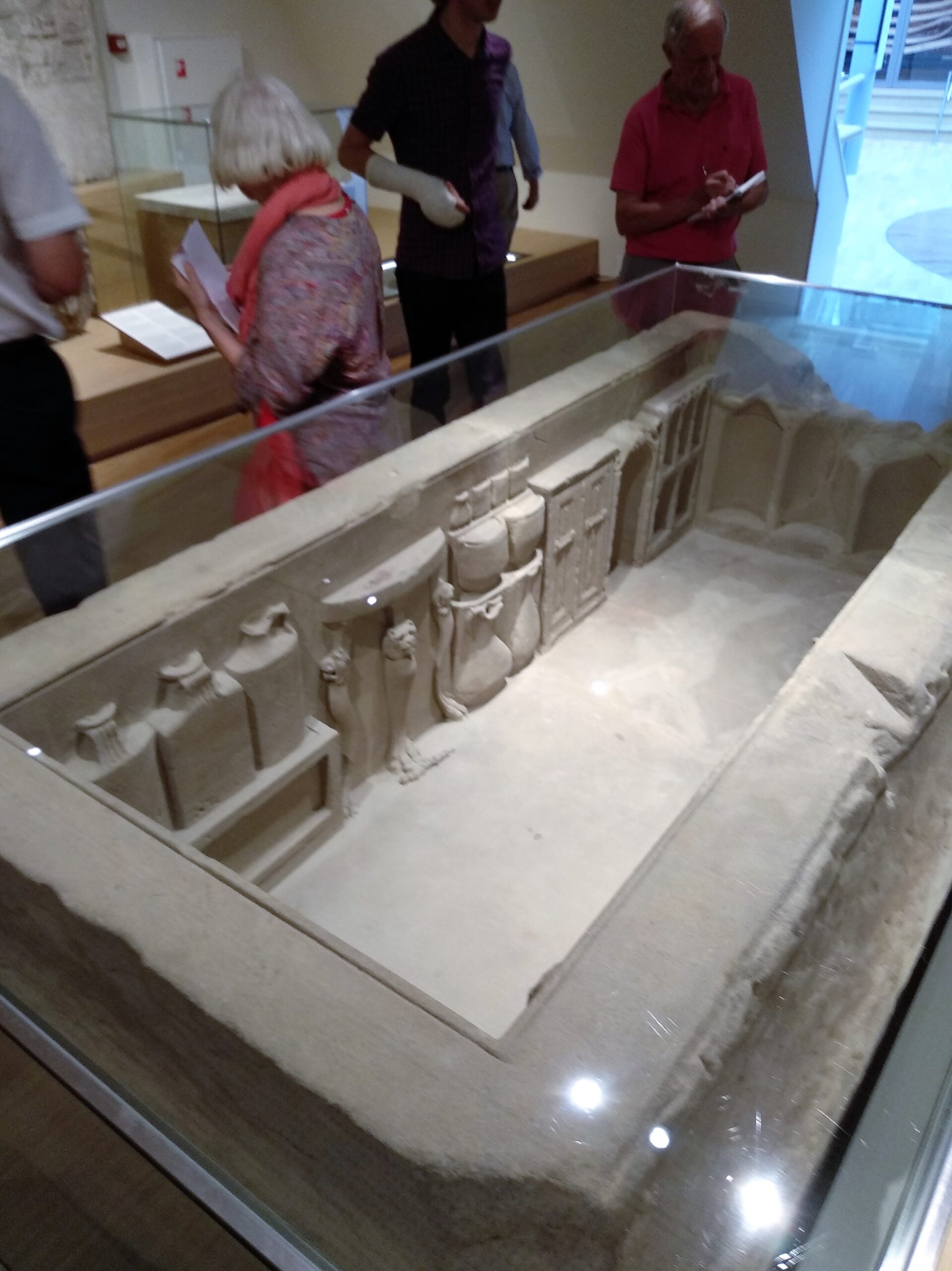 Of deze. Een potscherf met een ingekraste tekst. Een tekst die blijkbaar in Pompeï – een stad waar heel veel ‘graffiti op de muren is gevonden – veel werd gebruikt, omdat-i dubbelzinnig was? Grappig? Erotisch? Zegt u het maar: “allen zwegen stil en keken gespannen toe” staat er. Twintig jaar na de laatste verbouwing is te zien wat de effecten van nieuwe inzichten zijn: nuance en verhalen presenterend, aandacht voor het sámengaan van verschillende (bezetters)culturen, vragen vragen laten. Het eist wat voorstellingsvermogen (ideaal voor de scholen die langs gaan komen: opstellen over antwoorden op vragen als deze). Maar als je je die even gunt, wordt zo’n unieke Vogelschaal plots veel meer dan ‘een uniek stuk’.