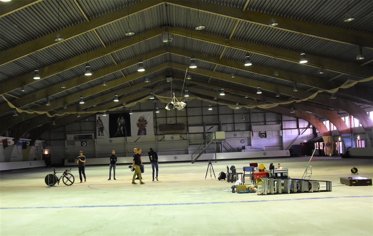Schaatshal Leiden is de afgelopen twee weken omgebouwd tot een onderzoeksruimte voor TU Delft en Sunweb. Onderzoekers van de technische universiteit doen daar samen met wielrenners van de profploeg van Sunweb onderzoek naar de houding en luchtweerstand van wielrenners. De Leidse schaatshal wordt in de maanden dat er geen ijs ligt wel vaker gebruikt voor andere activiteiten dan schaatsen. Het is de bedoeling dat het onderzoek op den duur wordt uitgebreid naar schaatsbewegingen.