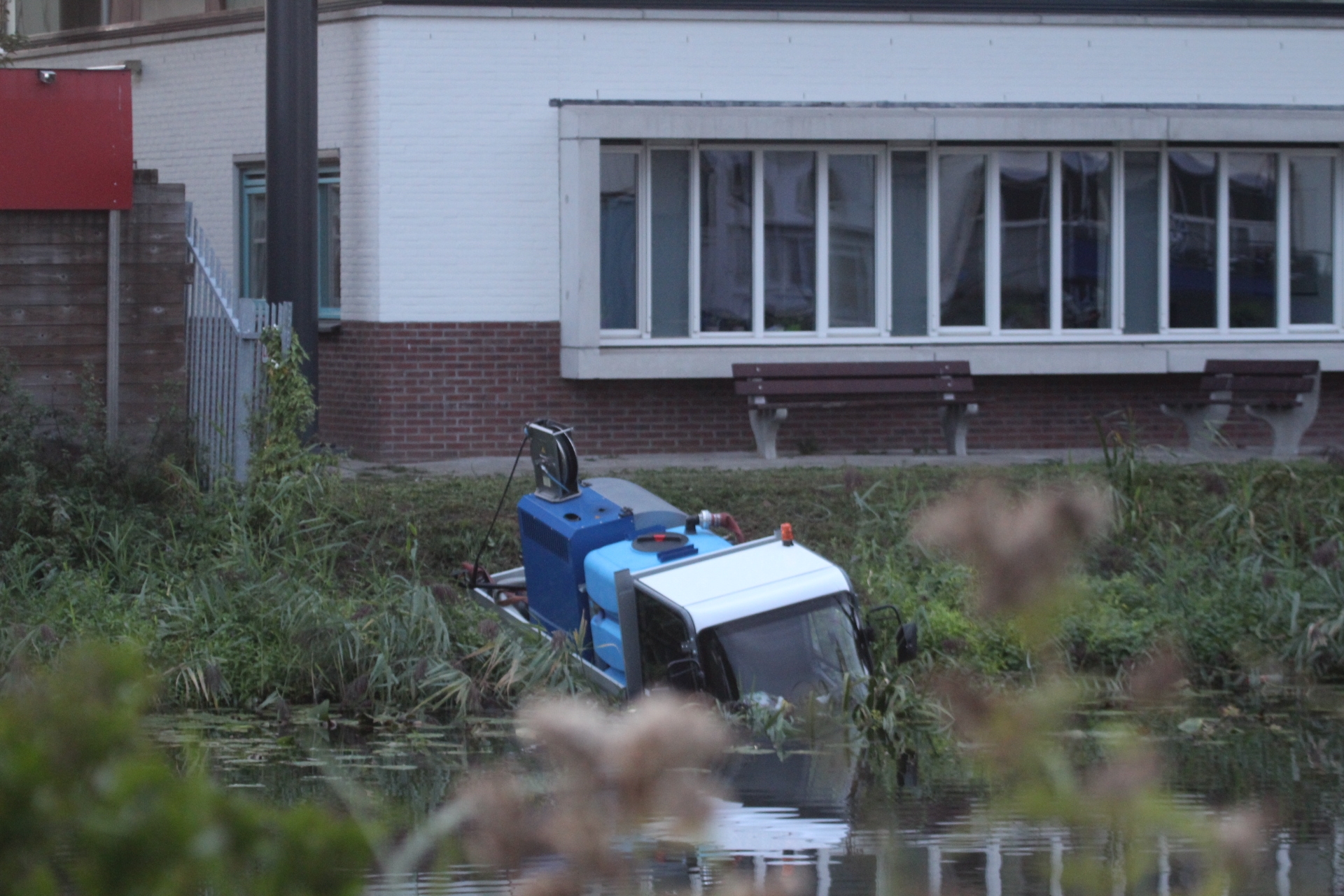 Een voertuig dat onkruid weghaalt is donderdagmiddag in het water aan de Zoeterwoudse weg in Leiden beland. Het is niet bekend waardoor de onkruidverdelger te water is geraakt. De bestuurder raakte niet gewond.