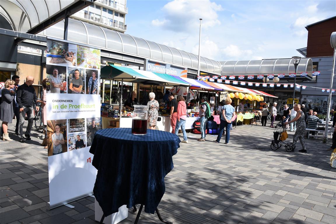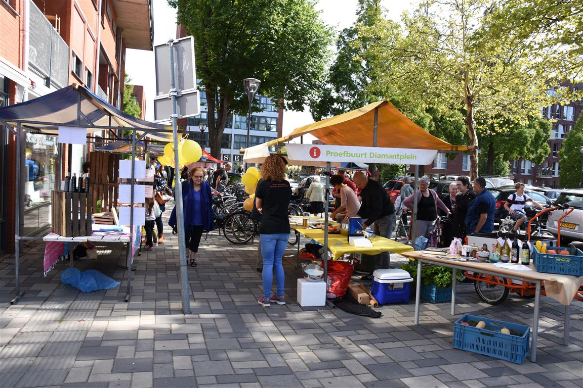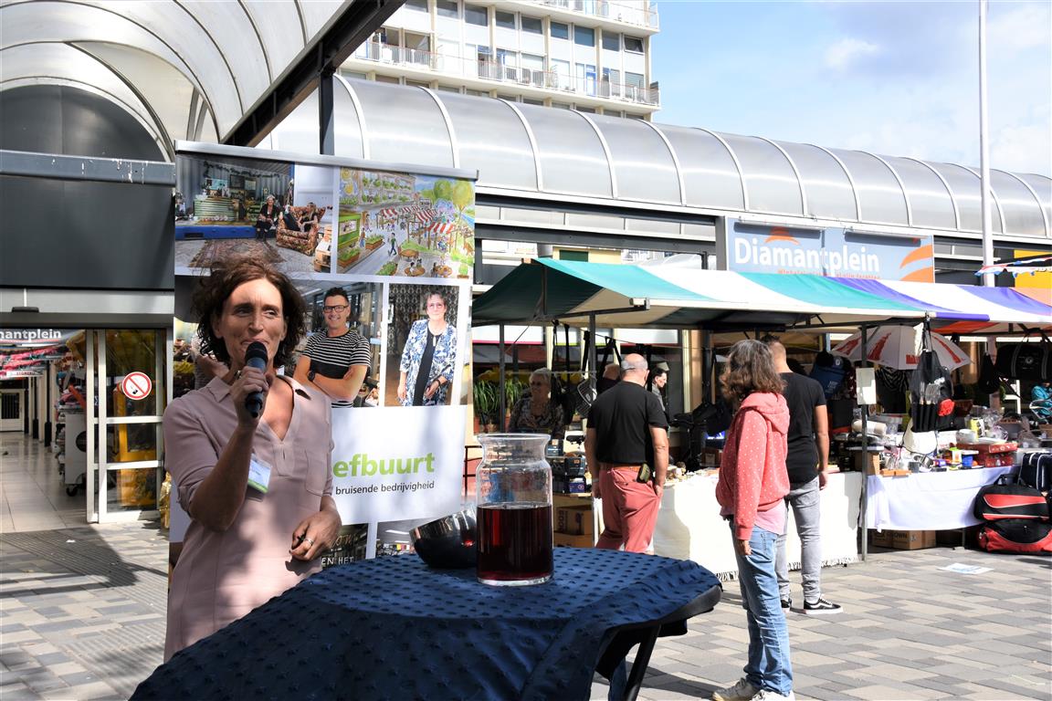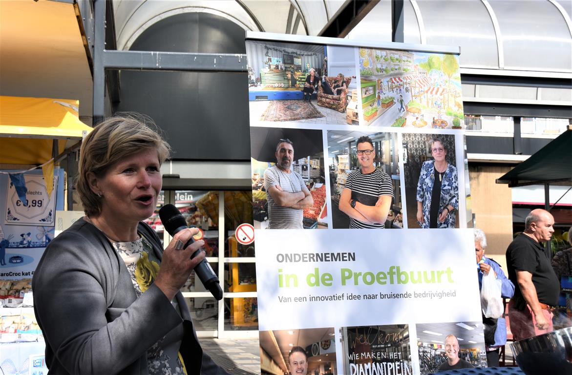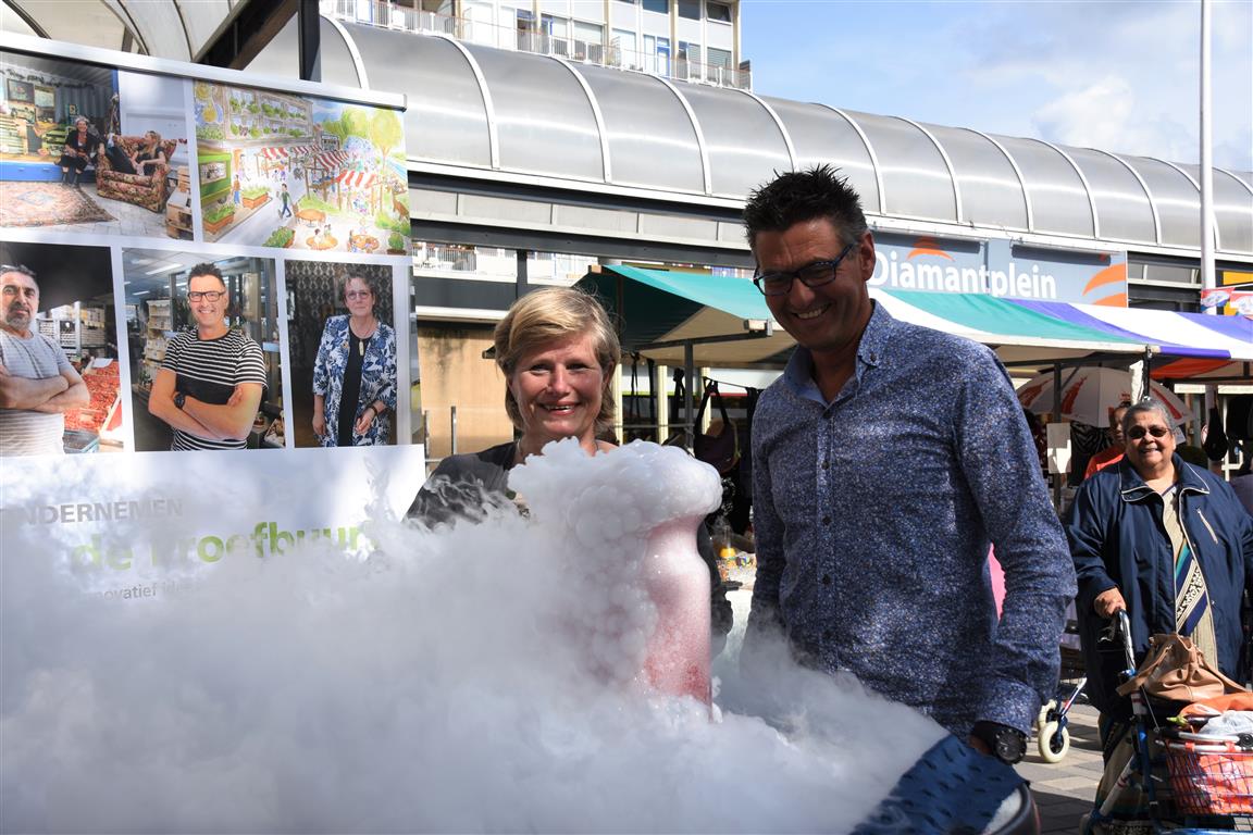 Ondernemers in winkelcentrum Diamantplein gaan de komende tijd aan de slag om het winkelcentrum weer levendig en bruisend te maken. Om veel innovatieve ideeën van ondernemers niet te frustreren door ellenlange procedures en regeltjes gaat de gemeente als proef hier soepel mee om. Tijdens een druk bezochte zomermarkt gaf wethouder Yvonne van Delft samen met ondernemer Jean Lamet op een bruisende manier het startsein voor ‘Ondernemen in de Proefbuurt’.