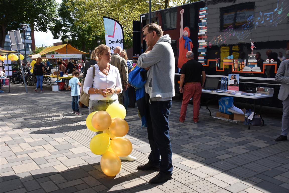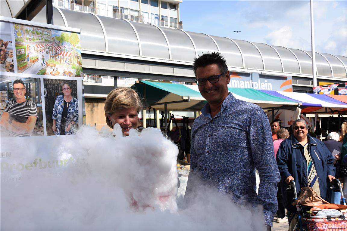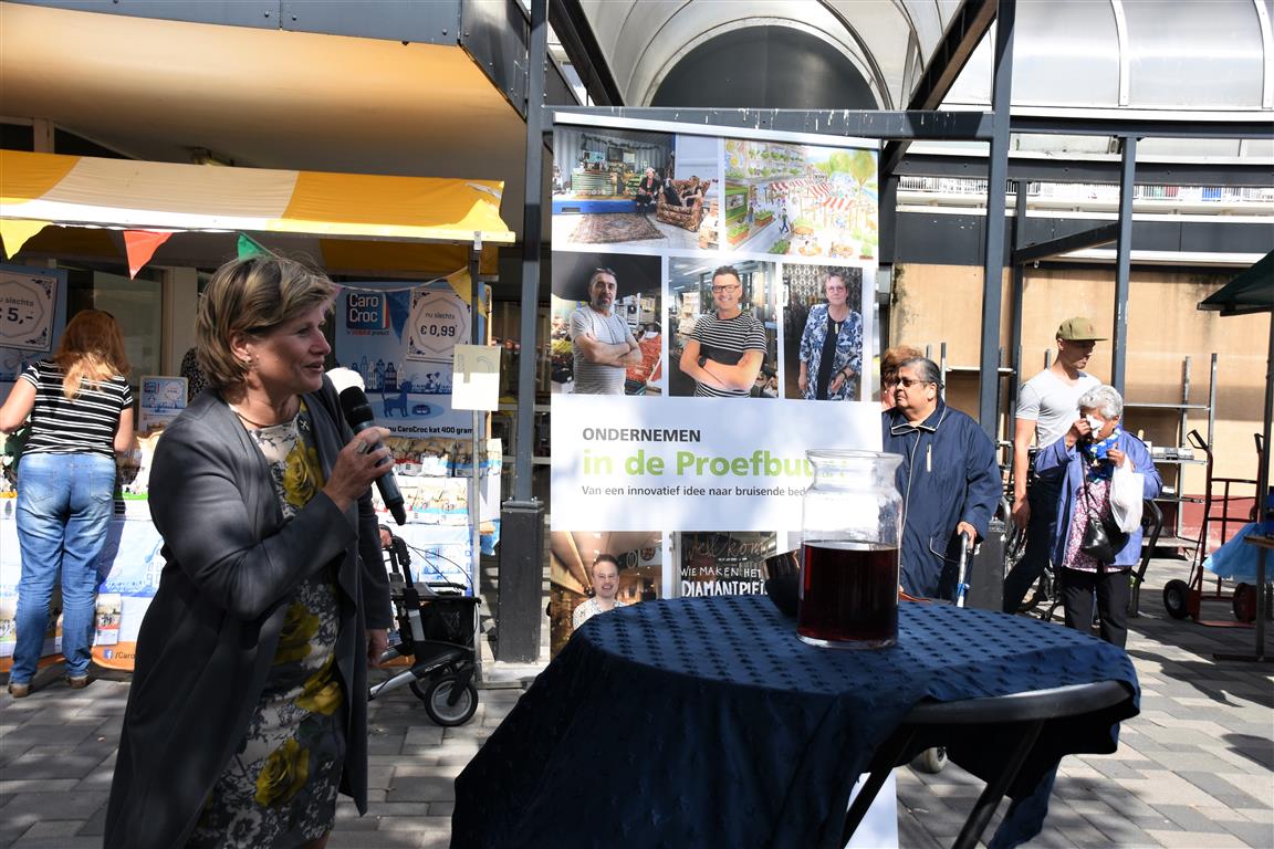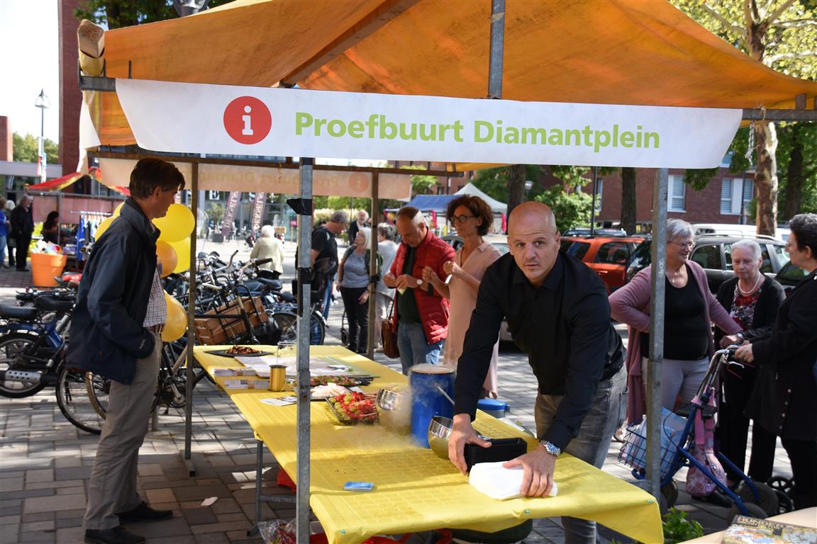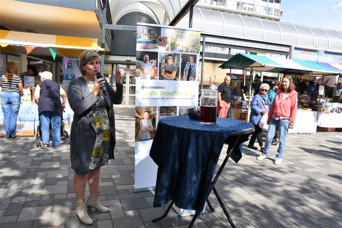 Ondernemers in winkelcentrum Diamantplein gaan de komende tijd aan de slag om het winkelcentrum weer levendig en bruisend te maken. Om veel innovatieve ideeën van ondernemers niet te frustreren door ellenlange procedures en regeltjes gaat de gemeente als proef hier soepel mee om. Tijdens een druk bezochte zomermarkt gaf wethouder Yvonne van Delft samen met ondernemer Jean Lamet op een bruisende manier het startsein voor ‘Ondernemen in de Proefbuurt’.