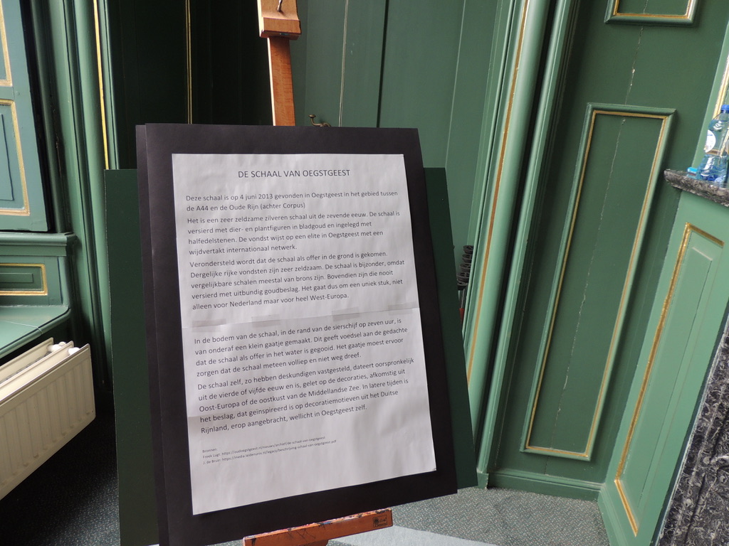 De Schaal van Oegstgeest is normaal te zien in Rijksmuseum van Oudheden, maar was speciaal voor de Open Monumentendagen overgebracht naar Kasteel Endegeest.