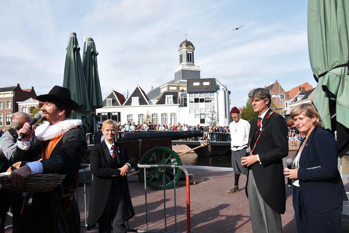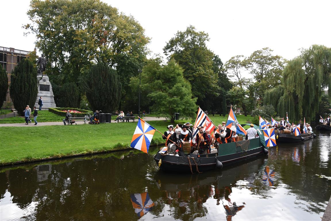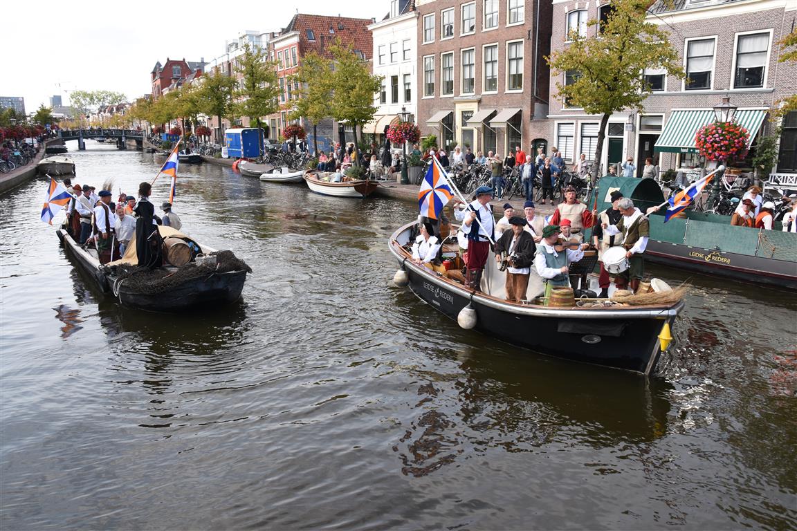Honderden mensen kwamen gistermiddag af op de tweede editie van de Geuzenintocht. Om 16.14 uur stipt (15.74) kwamen de Geuzen onder aanvoering van admiraal Boisot via de Rijn en de Catharinabrug aan op het Waaghoofd en klonken kanonsschoten. Locoburgemeester Yvonne van Delft ontving kaas, haring en wittebrood en Leiden was wederom Ontzet. Daarna ging ook het inschrijven voor hutspot, haring en wittebrood van start en is het ‘3 oktober-programma’ officieel begonnen.