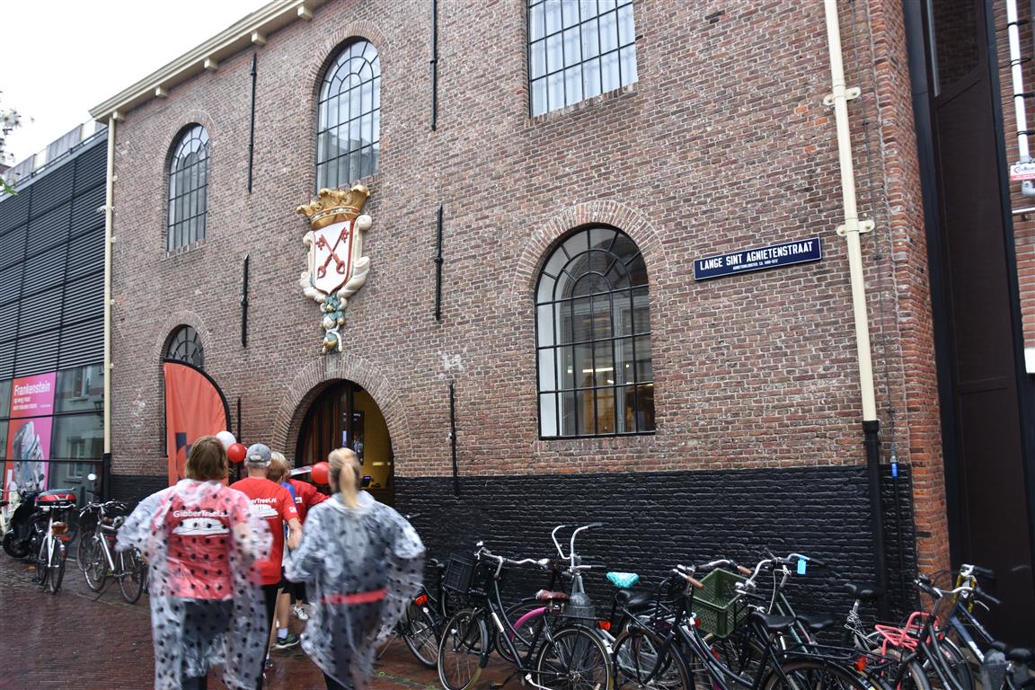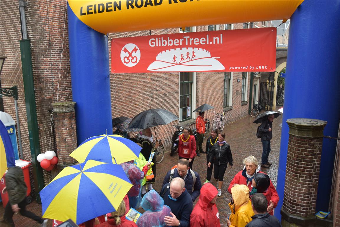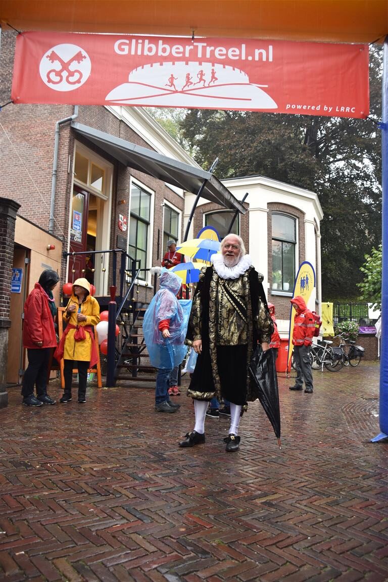 De tweede editie van de GlibberTreel leek even letterlijk in het water te vallen met de aanhoudende regen, maar voor de zeshonderd deelnemers aan de 6,5 kilometer funrun door Leiden was de nattigheid geen enkel probleem. Dit jaar waren er weer meerdere tussenstops, waaronder Rijksmuseum Boerhaave.