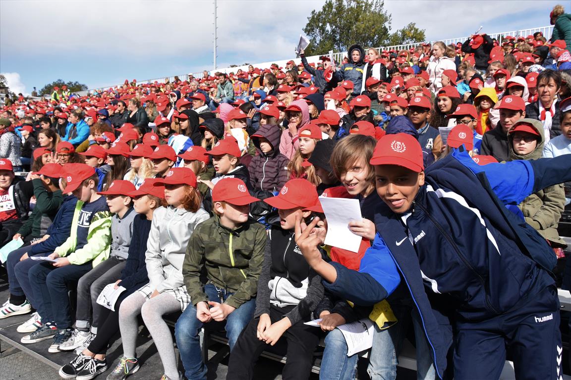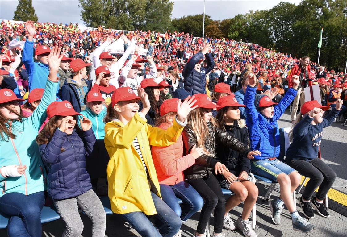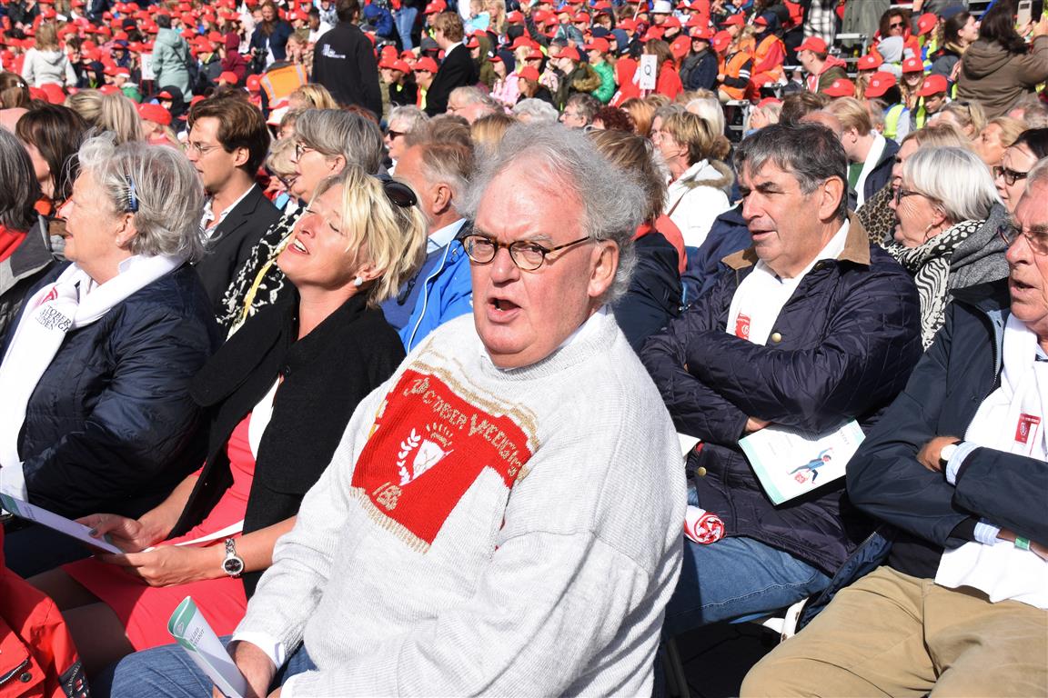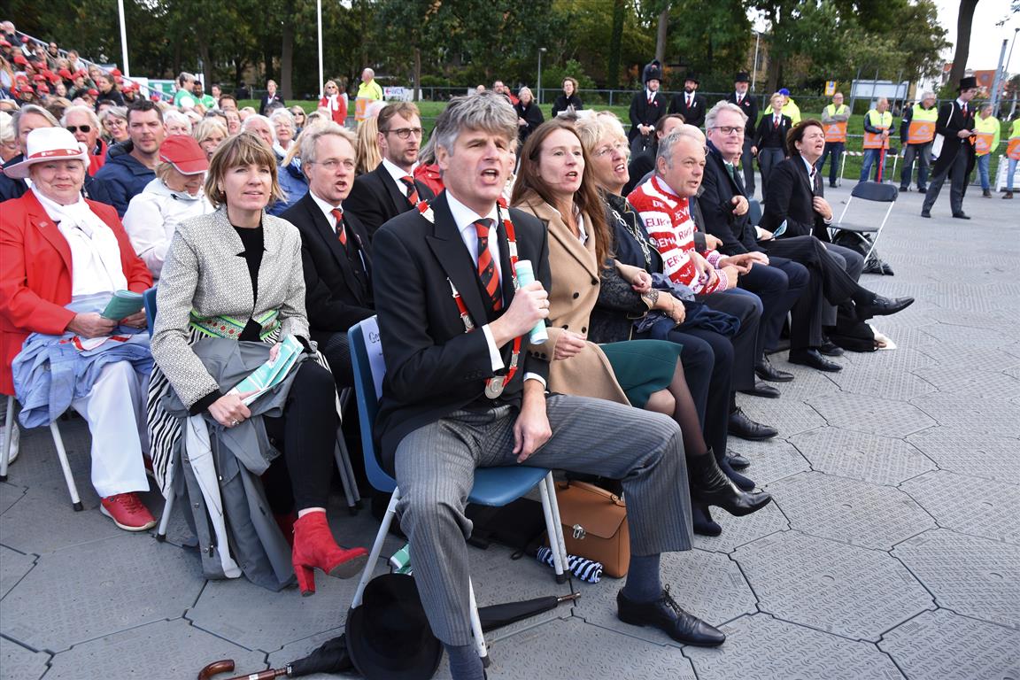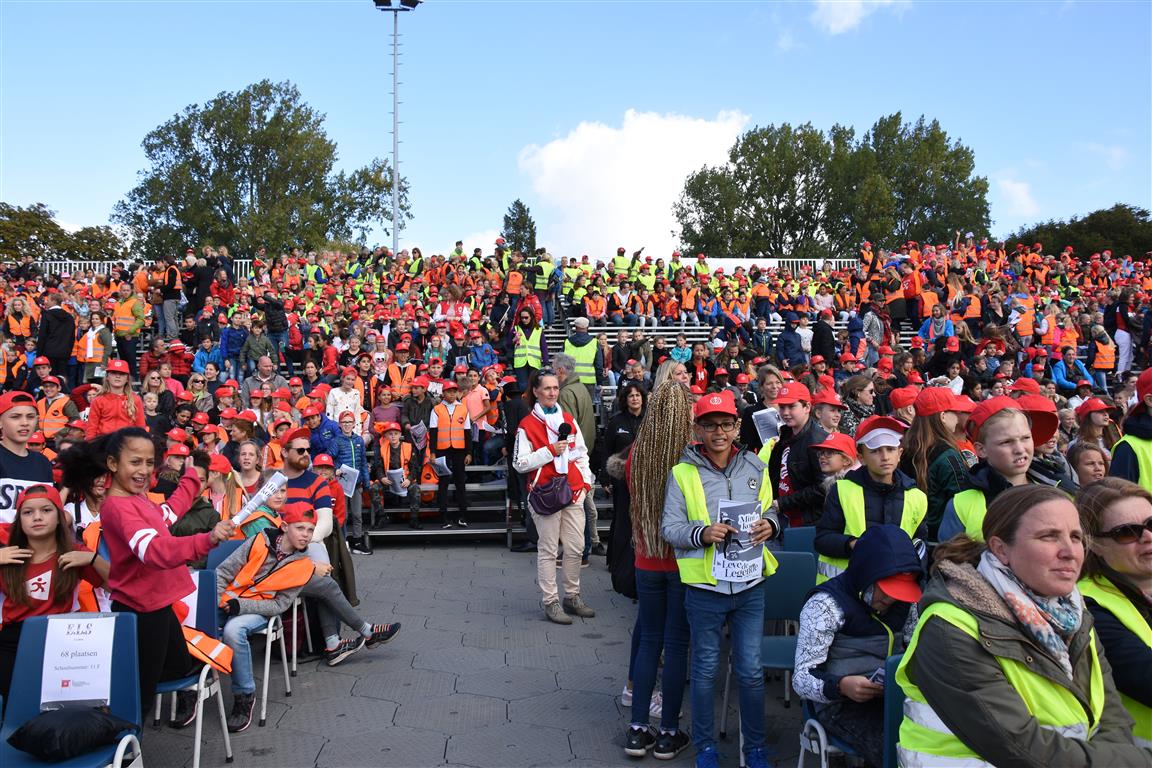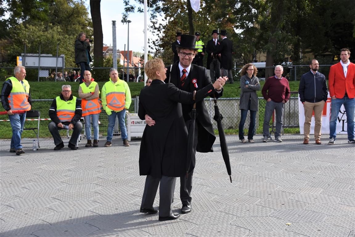 De donkere luchten, de kortstondige buitjes kunnen de pret niet drukken. De Minikoraal is niet meer weg te denken uit de 3 Oktoberviering. Wat vijfentwintig jaar geleden begon met een handjevol Leidse scholen is uitgegroeid tot een fenomenaal evenement waaraan scholen uit alle buurgemeenten meedoen. Begonnen in het groen van het Van der Werfpark, verhuisde de Minikoraal eerst naar de nabijgelegen Garenmarkt. Nu dat een bouwplaats is geworden tot medio 2020 heeft de Minikoraal voorlopig onderdak gevonden op het Trigonterrein aan de Zoeterwoudsesingel, waar helaas geen plaats meer is voor toeschouwers. Maar Sleutelstad zendt elk jaar live uit via Facebook en website, die je hier nog terug kunt kijken.