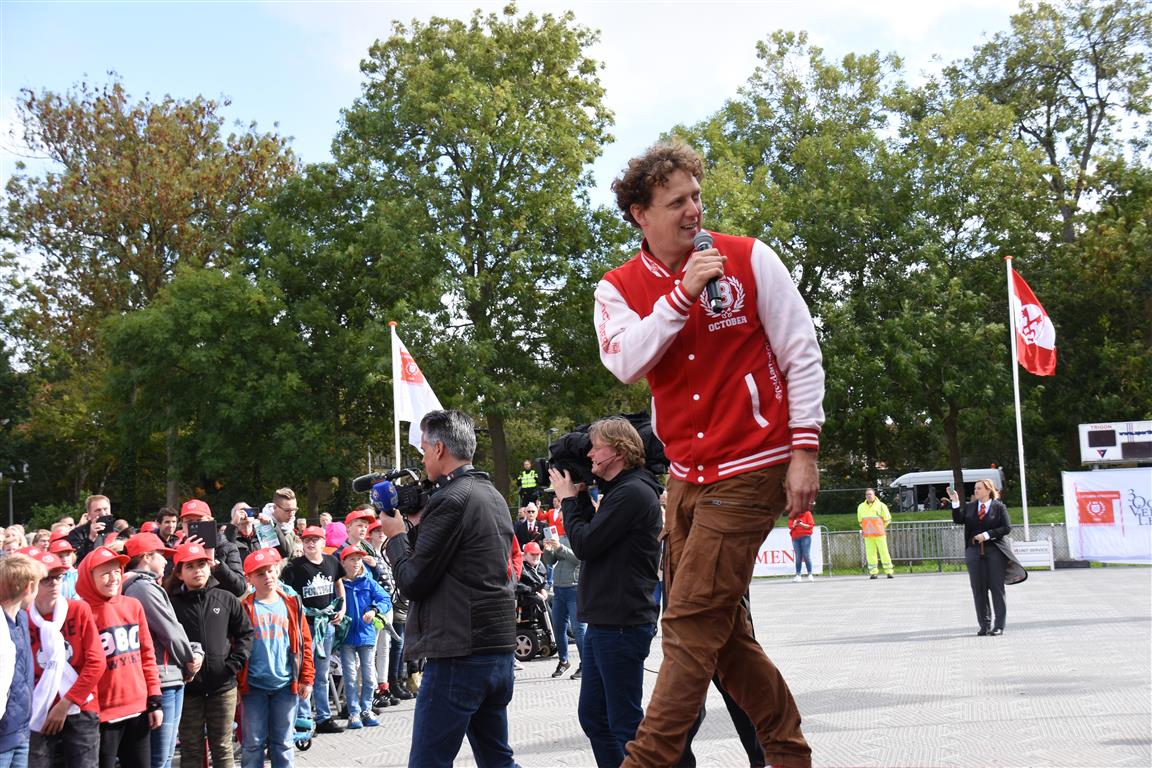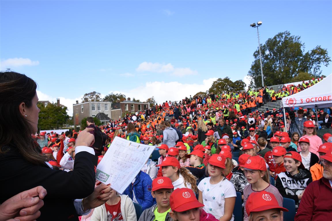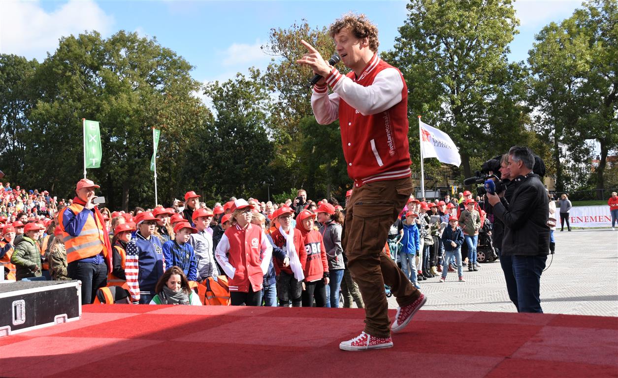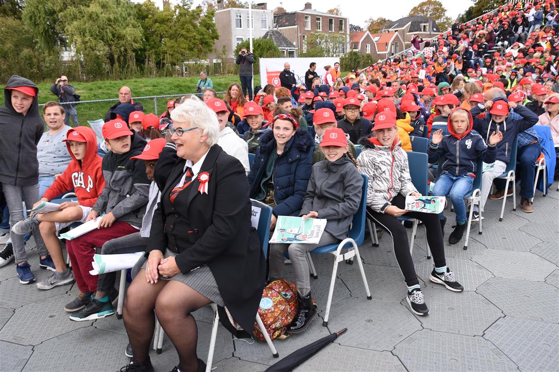 Gerry van Bakel sprak met kinderen, leerkrachten, burgemeester Pieter van der Werf en René Leckie van K&G 3.
