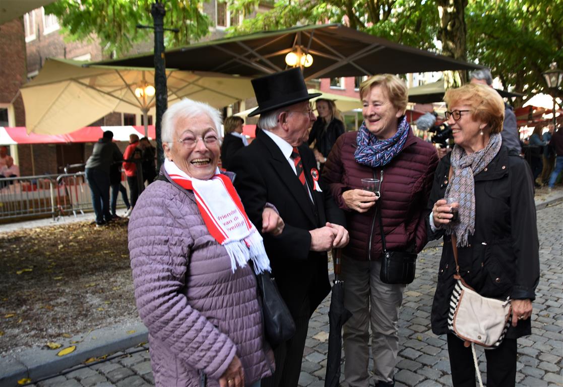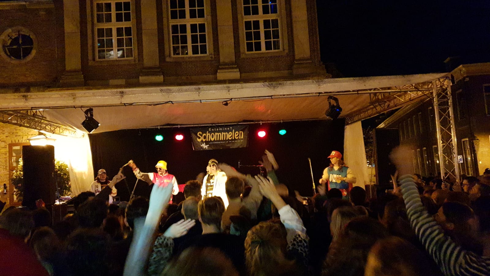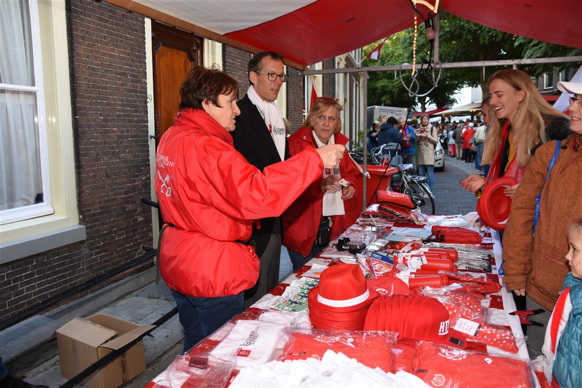 23:08 – Naast de Pieterskerk bij Café Schommelen treden Barry Badpak en Rubberen Henkie op voor het echte 3 October-gevoel.