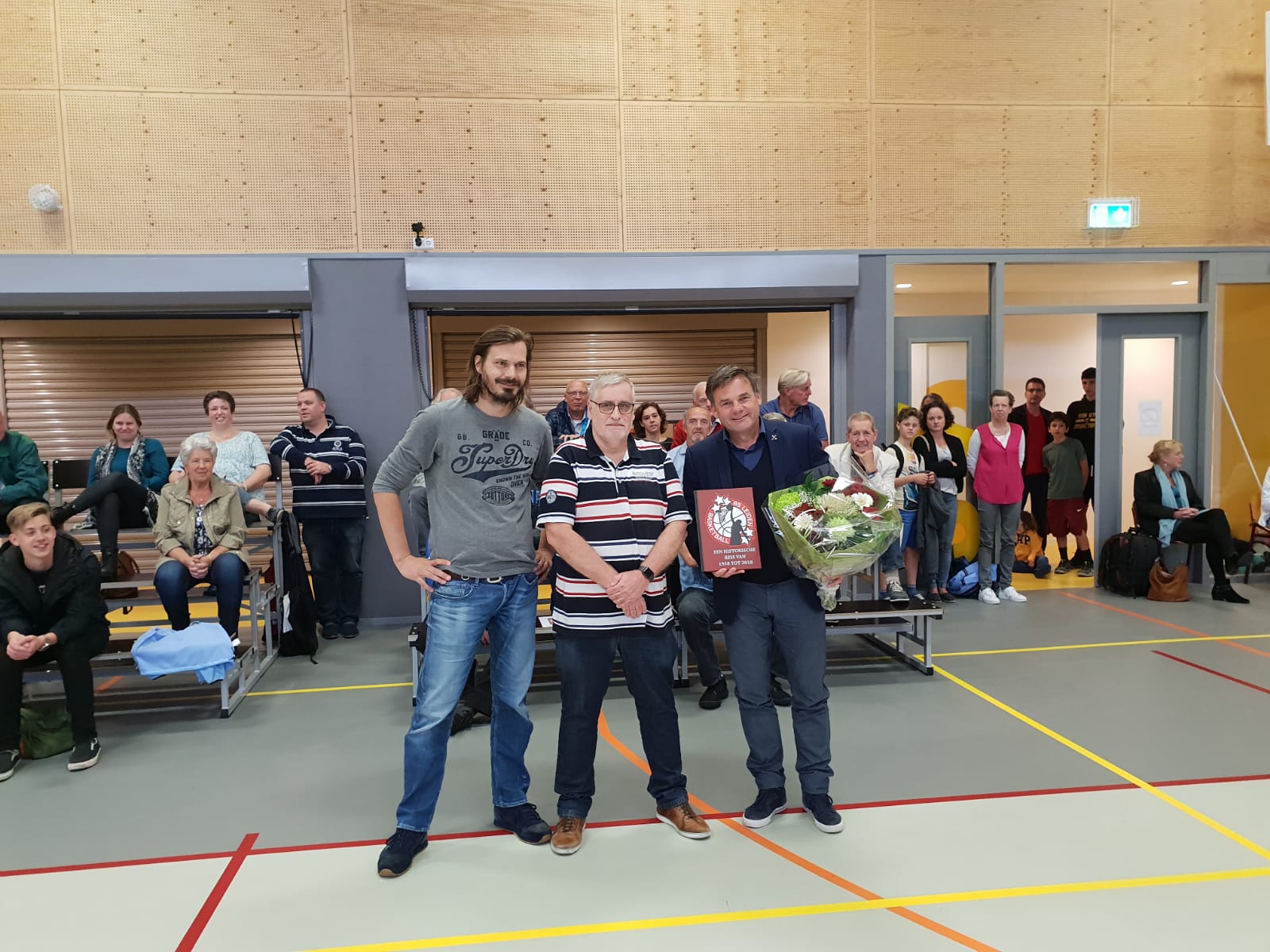 De overhandiging vond plaats in de rust van de wedstrijd BS Leiden U14 – Den Bosch U14. BS Leiden voorzitter Bart Lamet nam het woord en kondigde aan dat de vereniging voor nog eens 60 jaar gaat. Sinds twee jaar is BS Leiden gehuisvest in sporthal Houtkwartier en dat werpt volgens Lamet zijn vruchten af. “Deze locatie is echt te gek. De vereniging wordt niet alleen groter, maar ook gezelliger. Er wordt meer georganiseerd en er is heel veel interactie.”