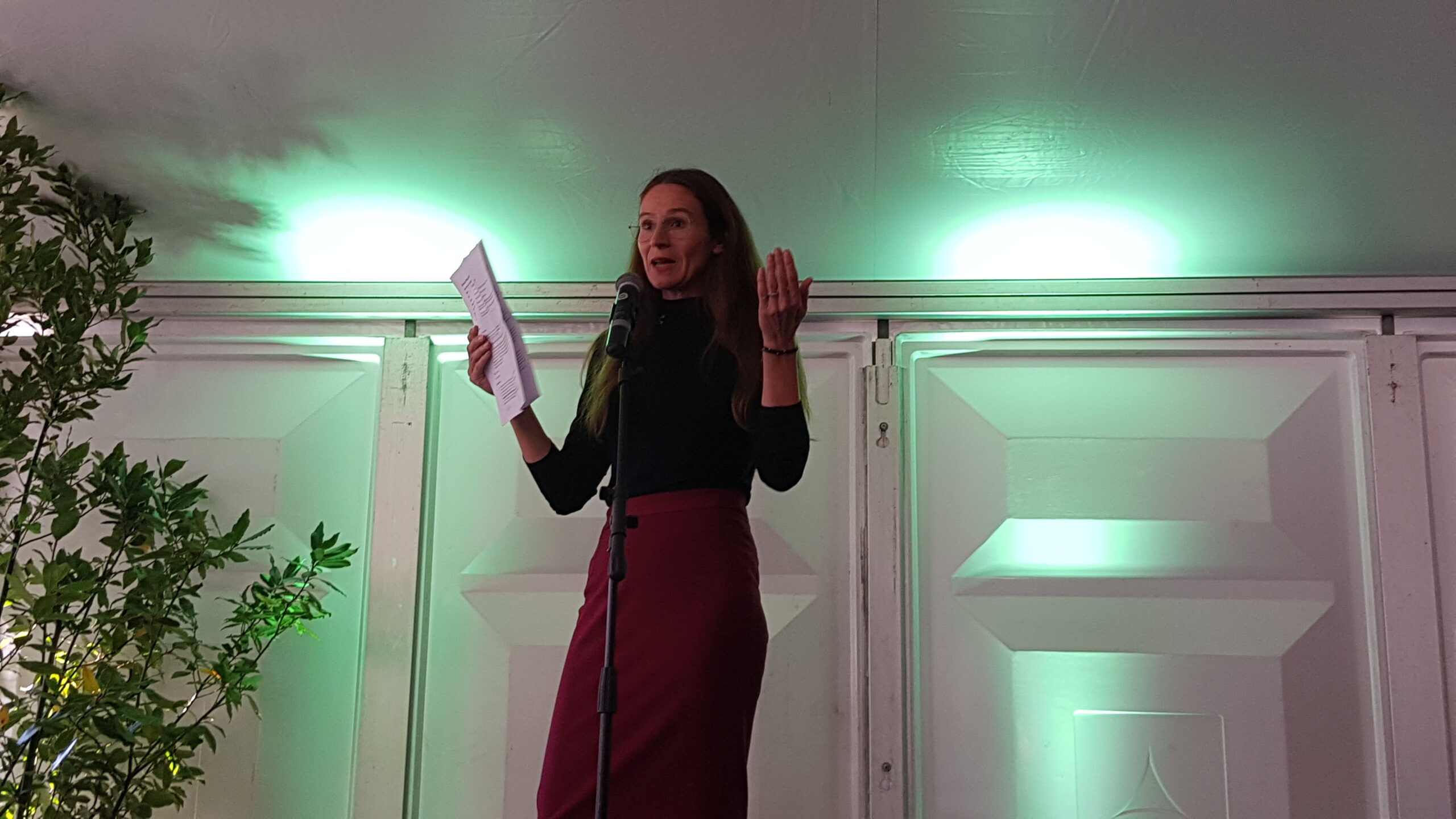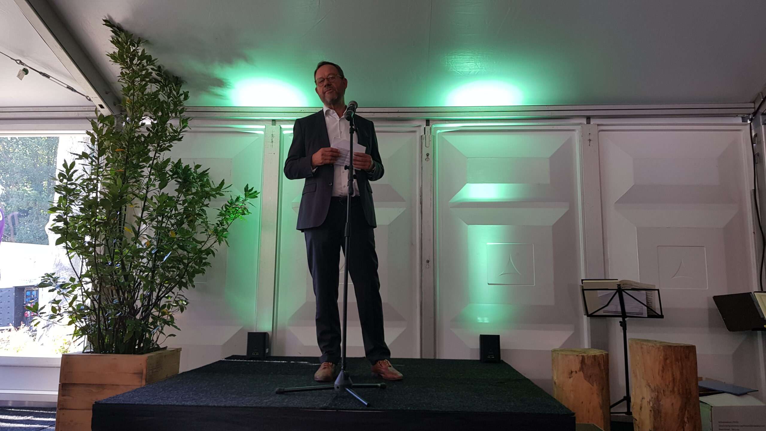 Chris de Waard ging naar de feestelijke bijeenkomst en sprak met bouwwethouder Fleur Spijker en met de heer Visser en met Marijke van Dobben de Bruijn.